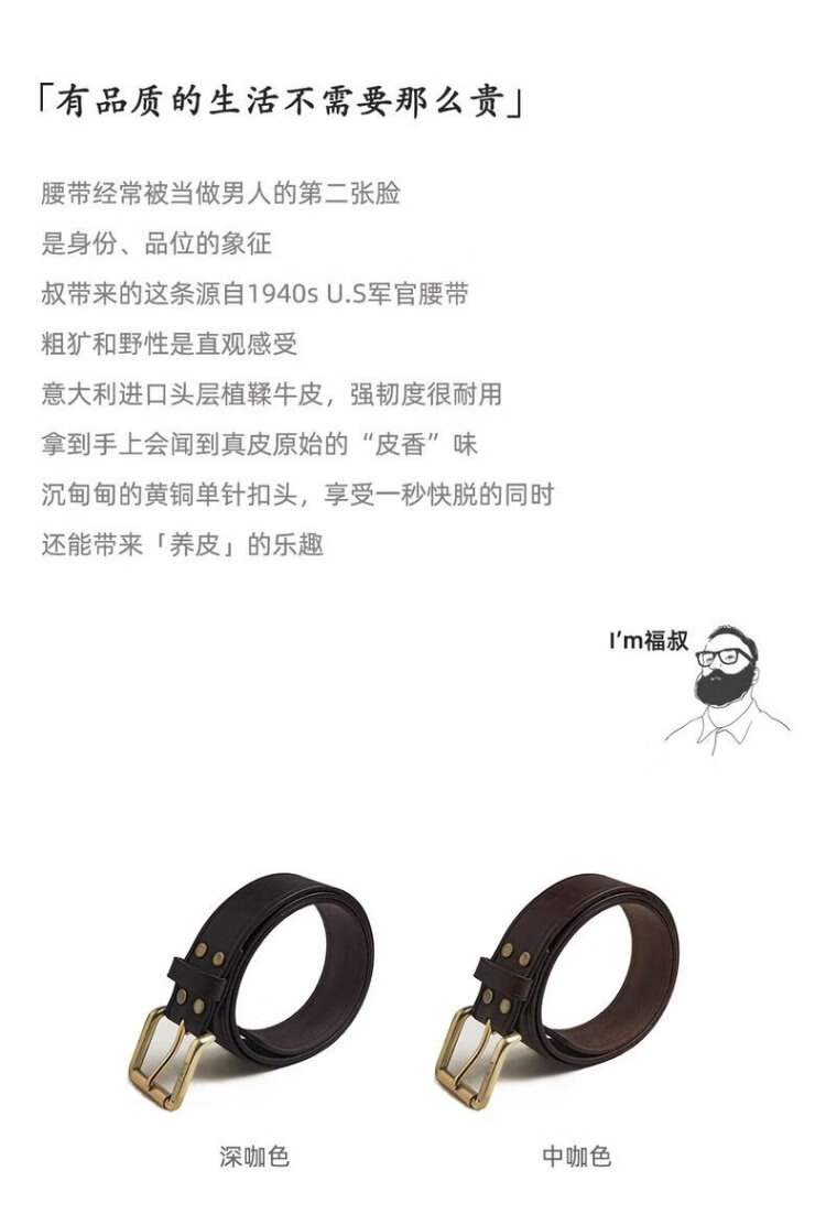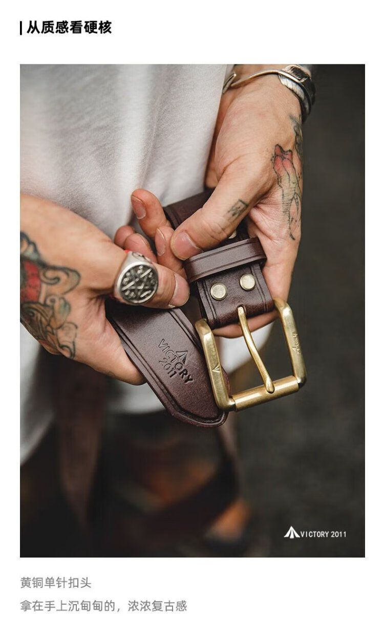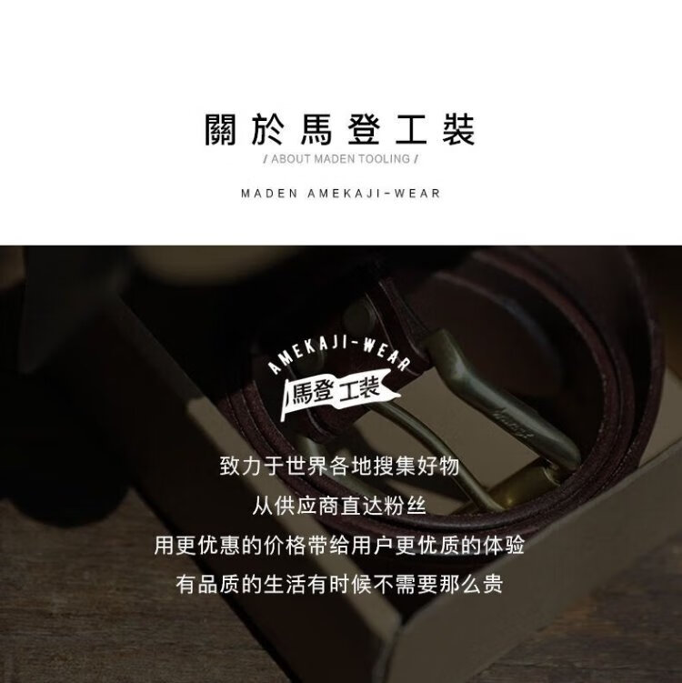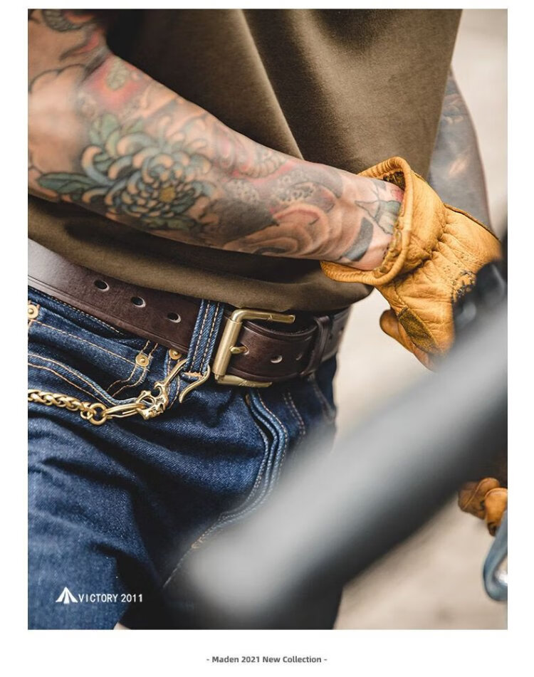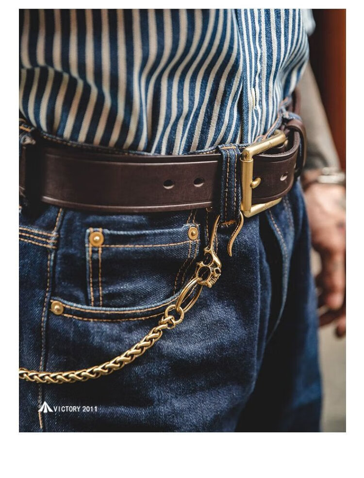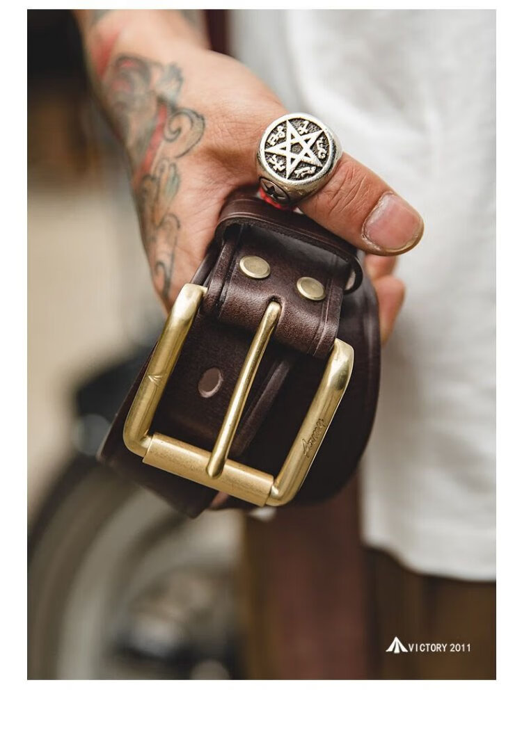 Madden Workwear American Retro Top Layer Vegetable Tanned Cowhide Belt Brass Single Needle Buckle Genuine Leather Belt Tough Guy Pants Belt Men Dark Brown