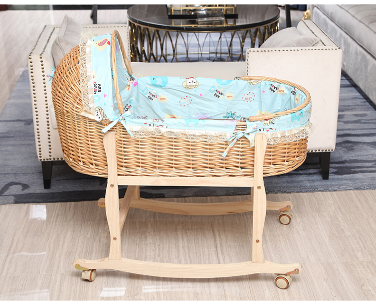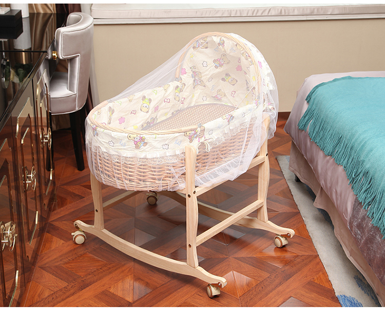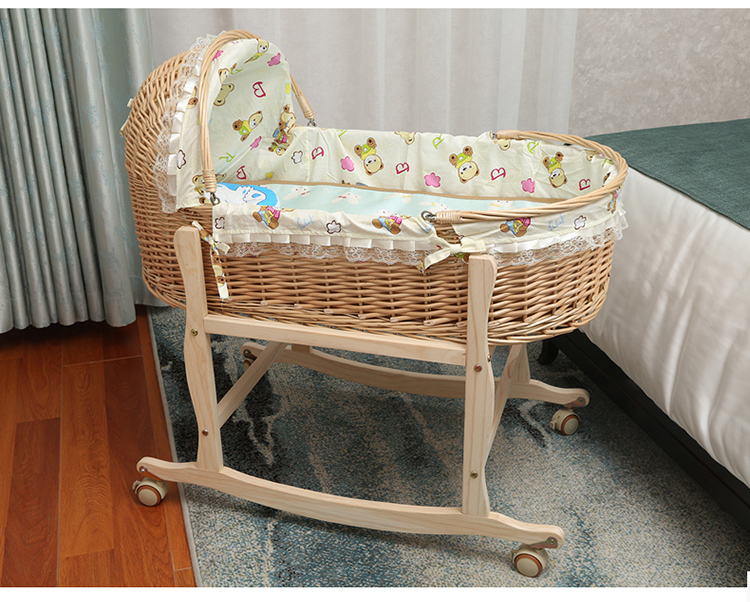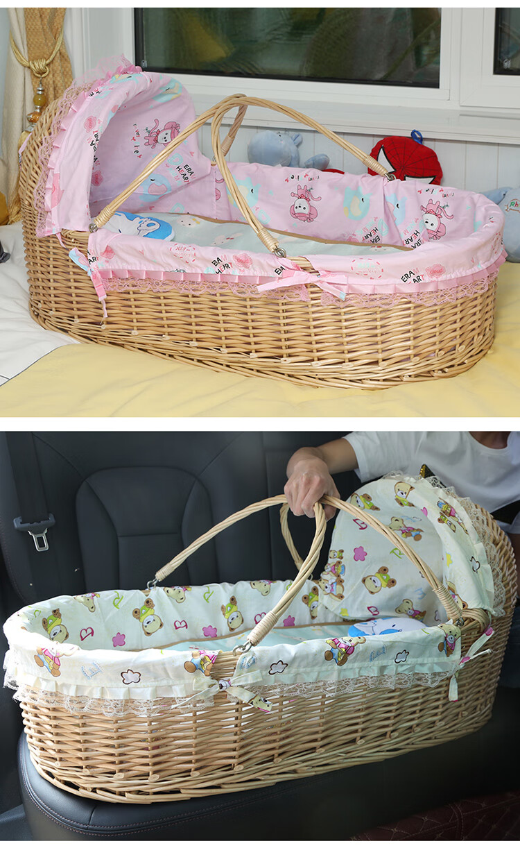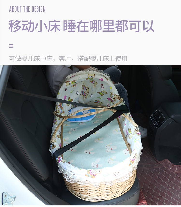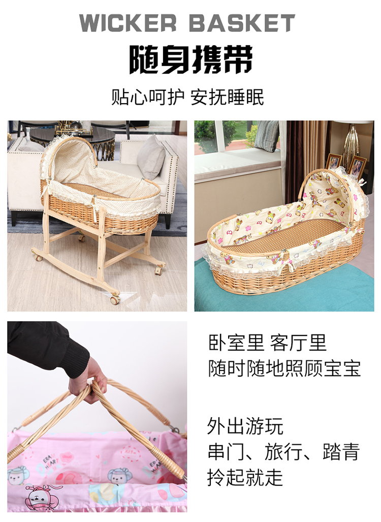 SENBIJU rattan crib newborn cradle portable hand basket car soothing crib baby bed cradle cradle 100 beige + wheel bracket 0-20 months