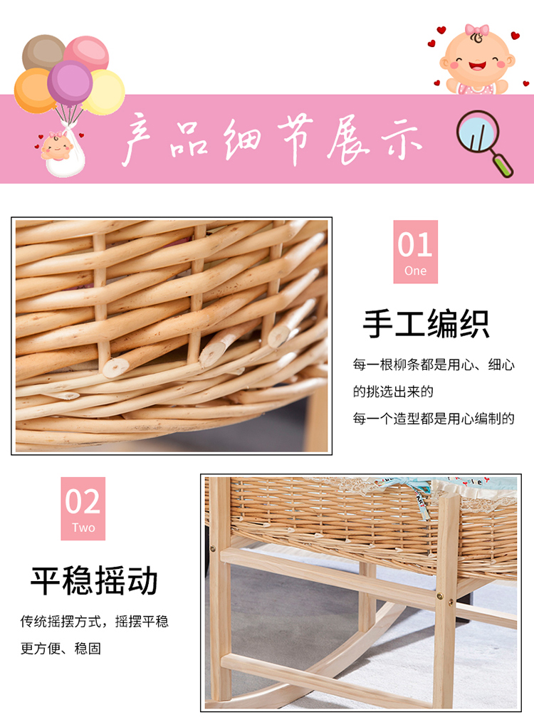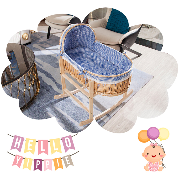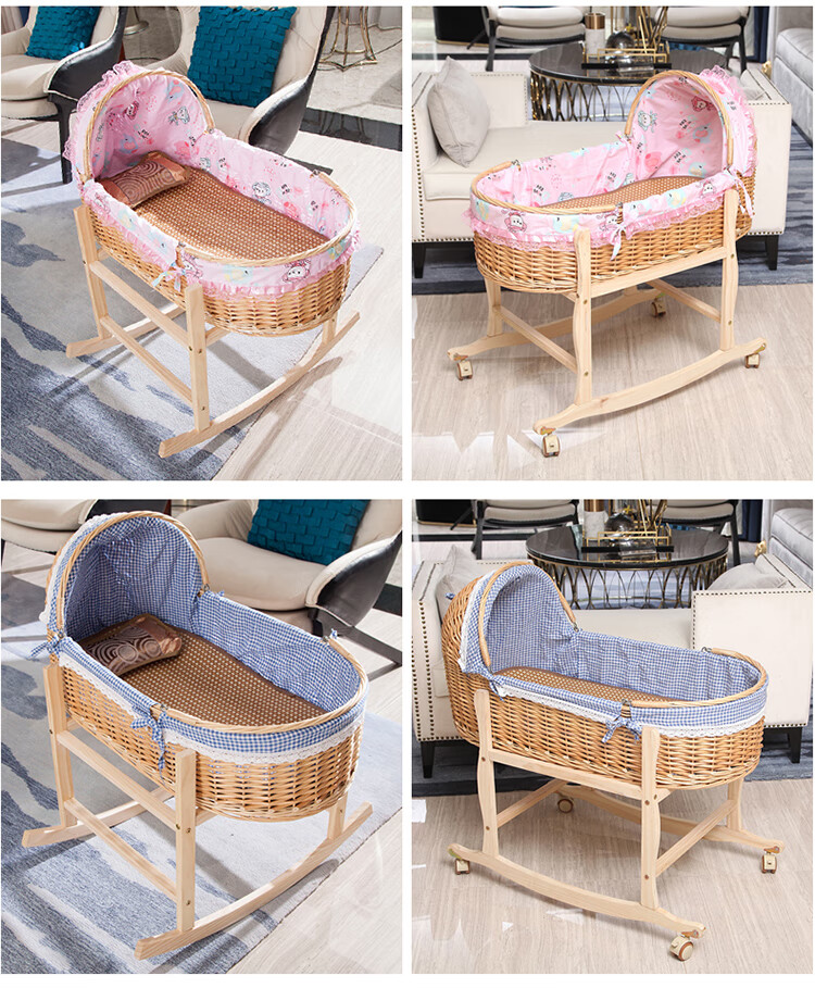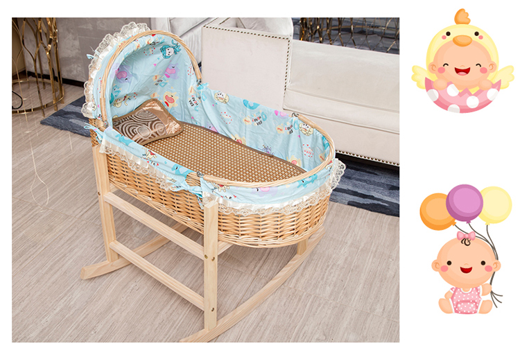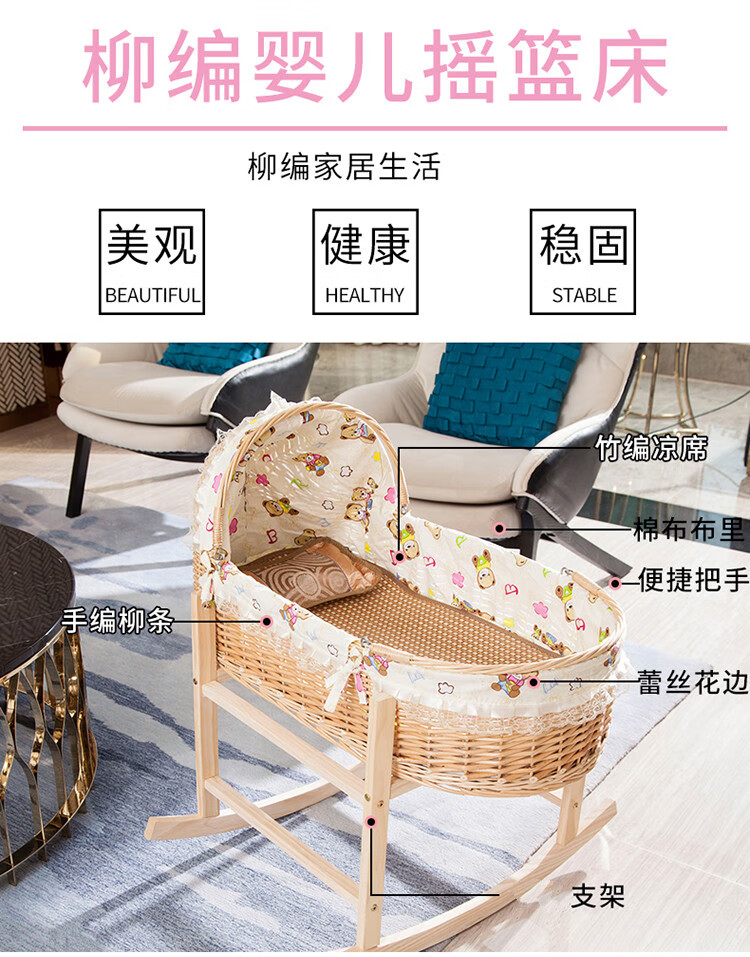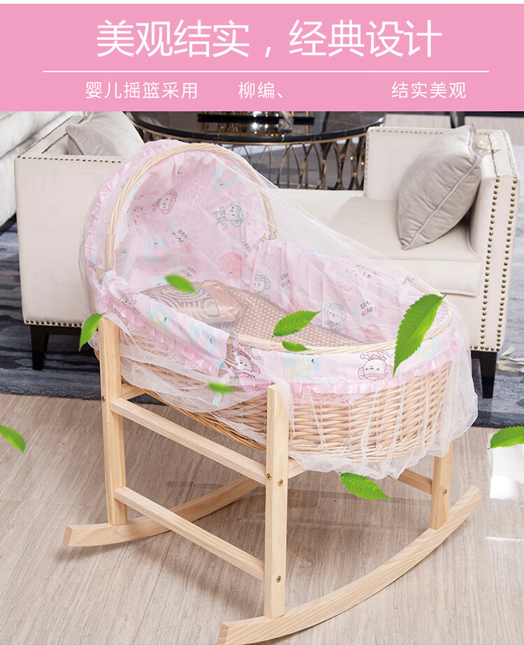 SENBIJU rattan crib newborn cradle portable hand basket car soothing crib baby bed cradle cradle 100 beige + wheel bracket 0-20 months