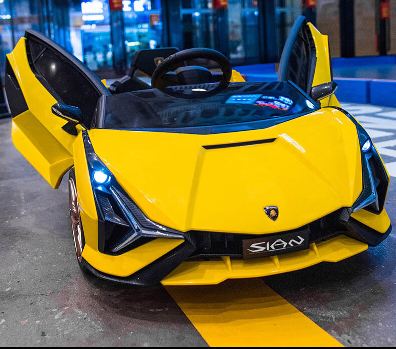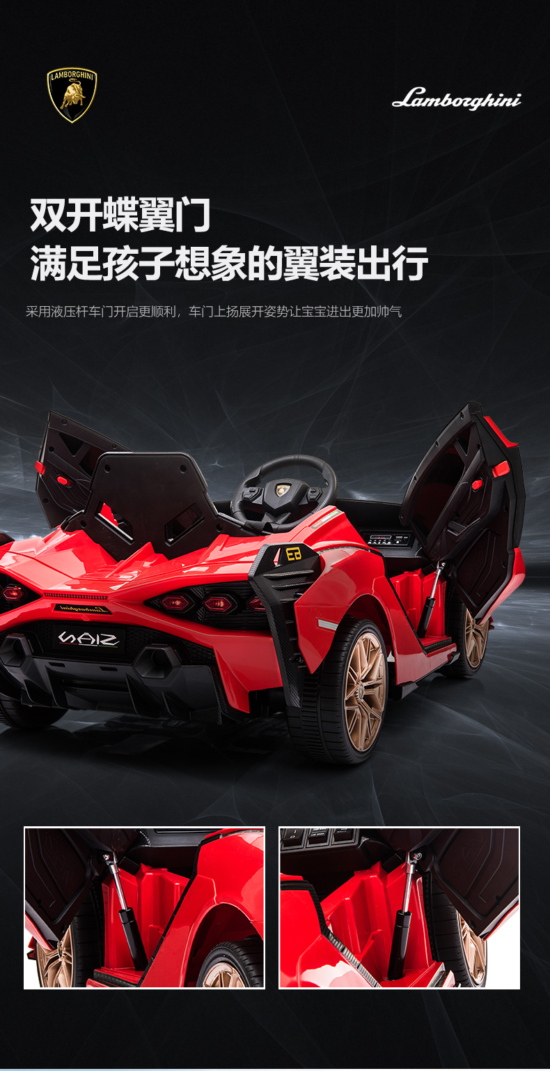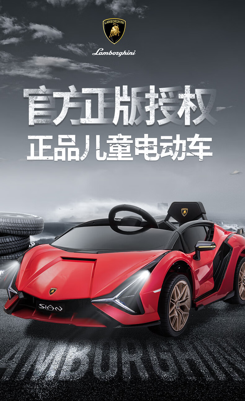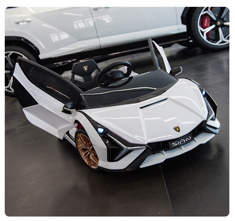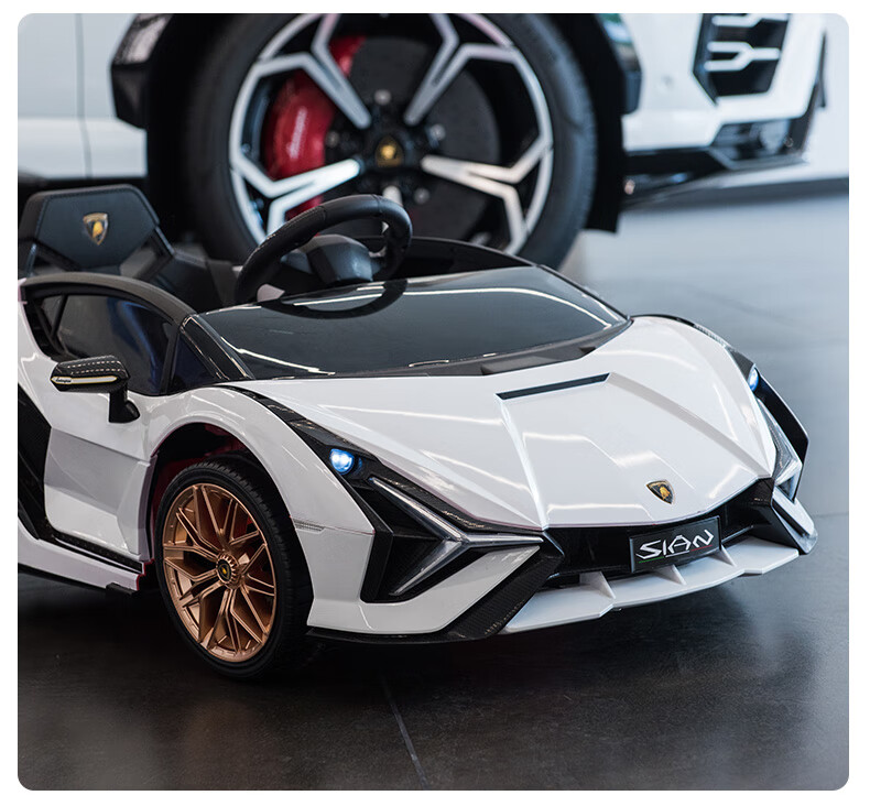 Cute Smiling Gull Lamborghini children's electric car four-wheeled with remote control car for men and women, baby and child can sit on toy car stroller, top with white + full function + leather seat four-wheel drive foam wheel