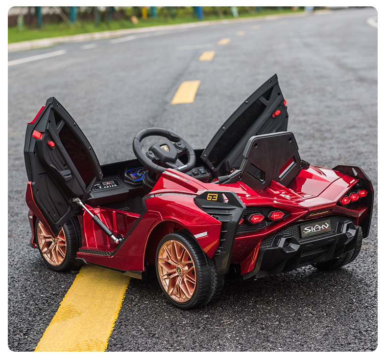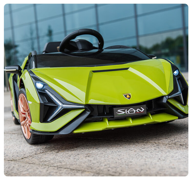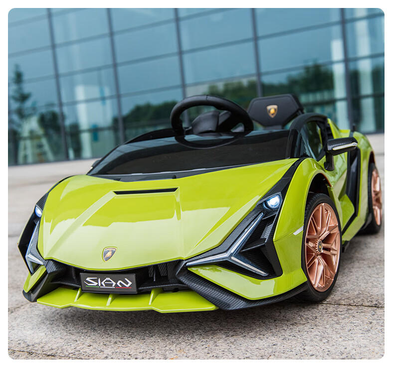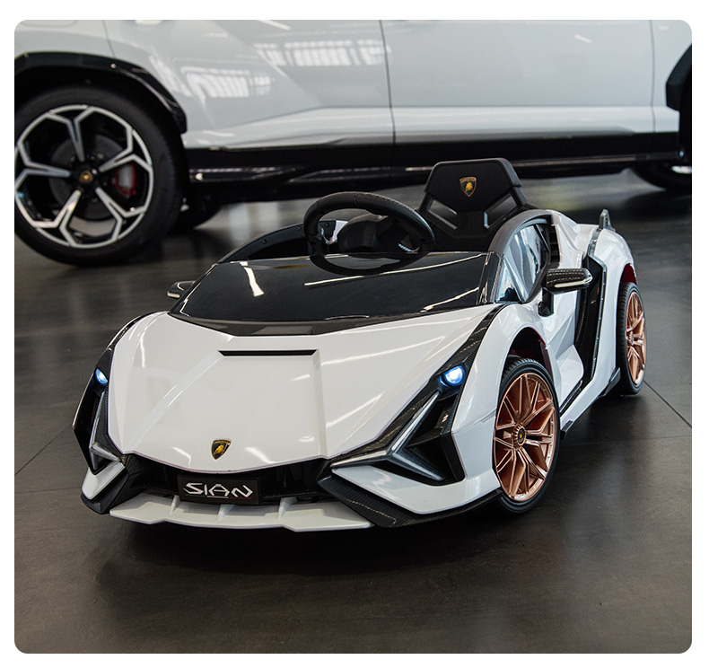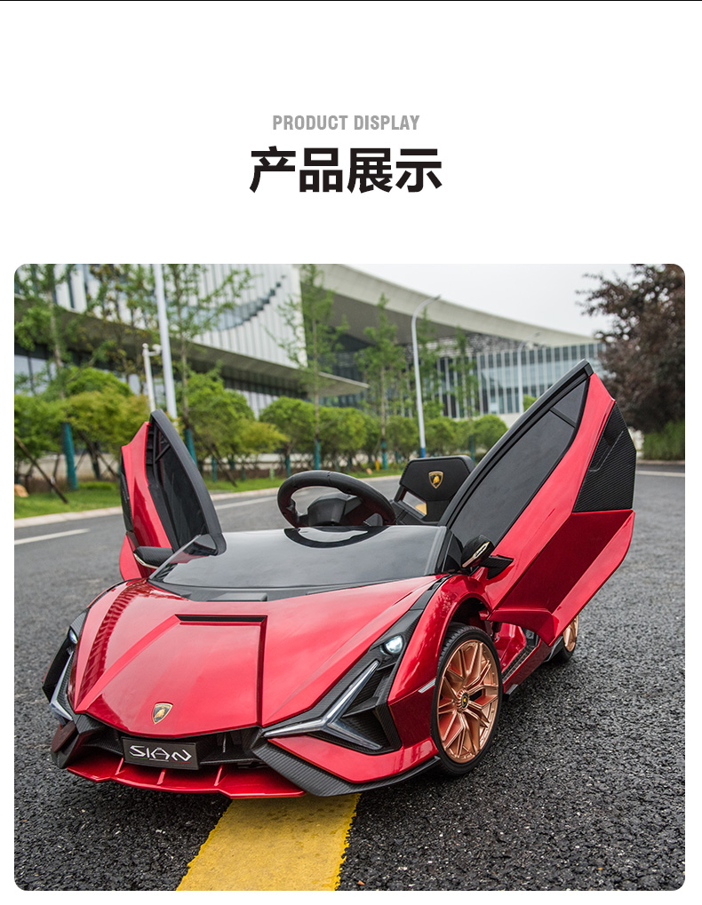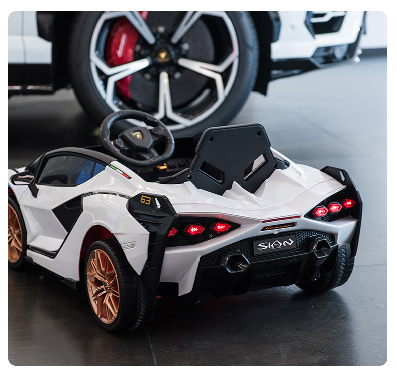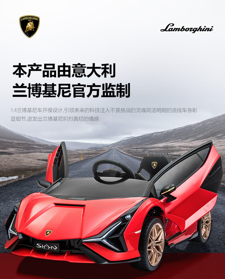 Cute Smiling Gull Lamborghini children's electric car four-wheeled with remote control car for men and women, baby and child can sit on toy car stroller, top with white + full function + leather seat four-wheel drive foam wheel