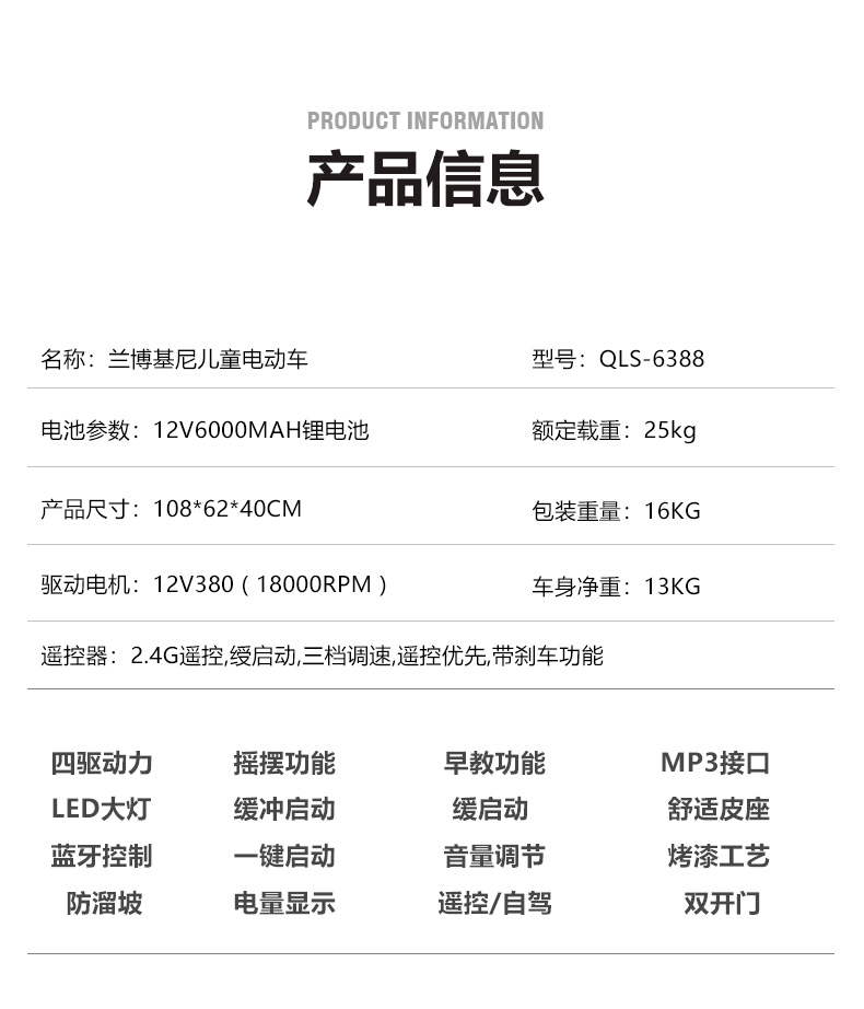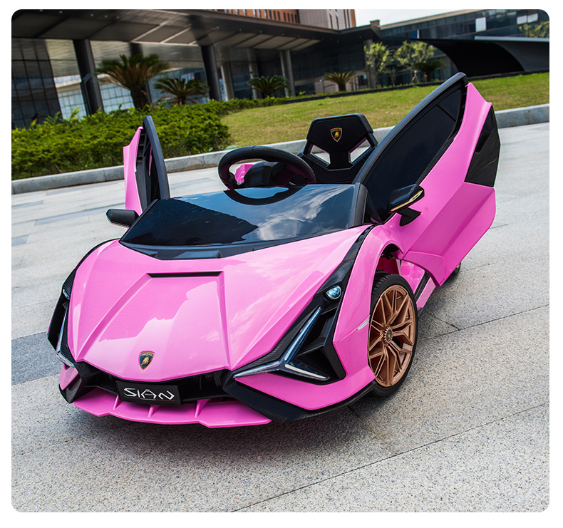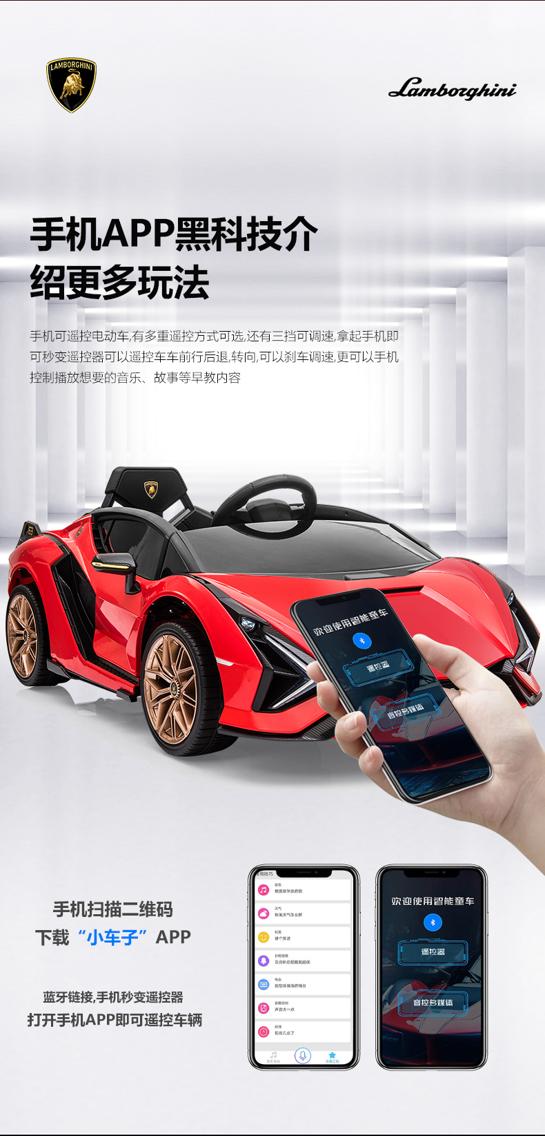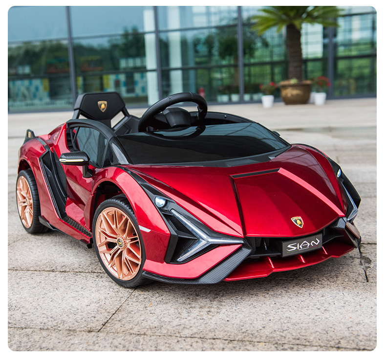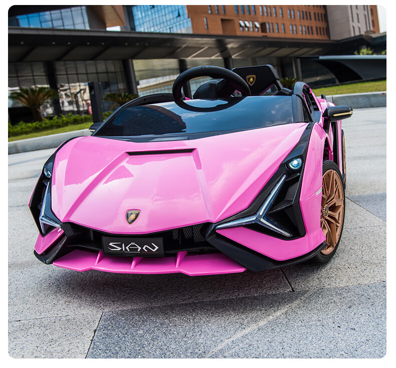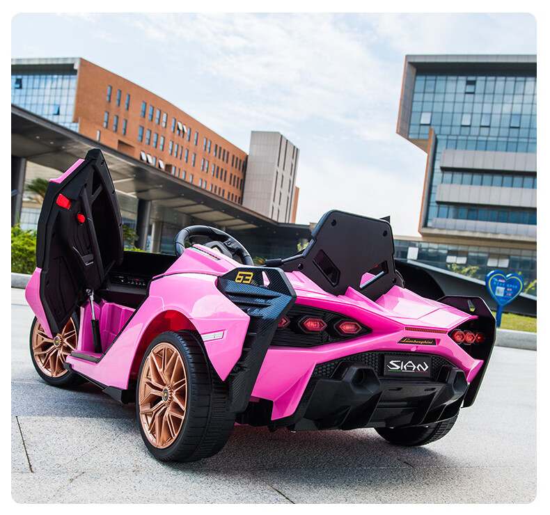 Cute Smiling Gull Lamborghini children's electric car four-wheeled with remote control car for men and women, baby and child can sit on toy car stroller, top with white + full function + leather seat four-wheel drive foam wheel