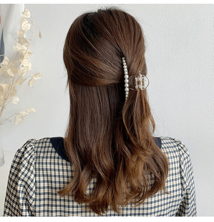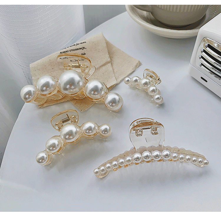 Jiuvia Gripper Large Back of Head Internet Celebrity Elegant Hair Clip Pearl Hair Clip Hairpin Top Clip Shark Clip Headwear JYFJ Large Pearl Clip About 10cm