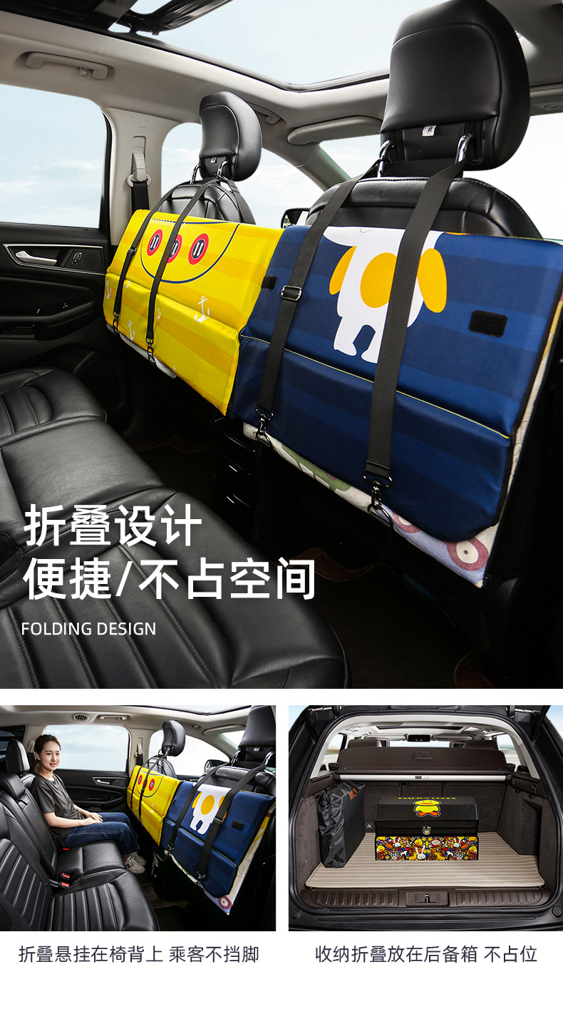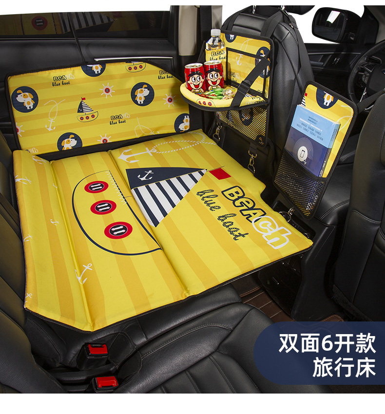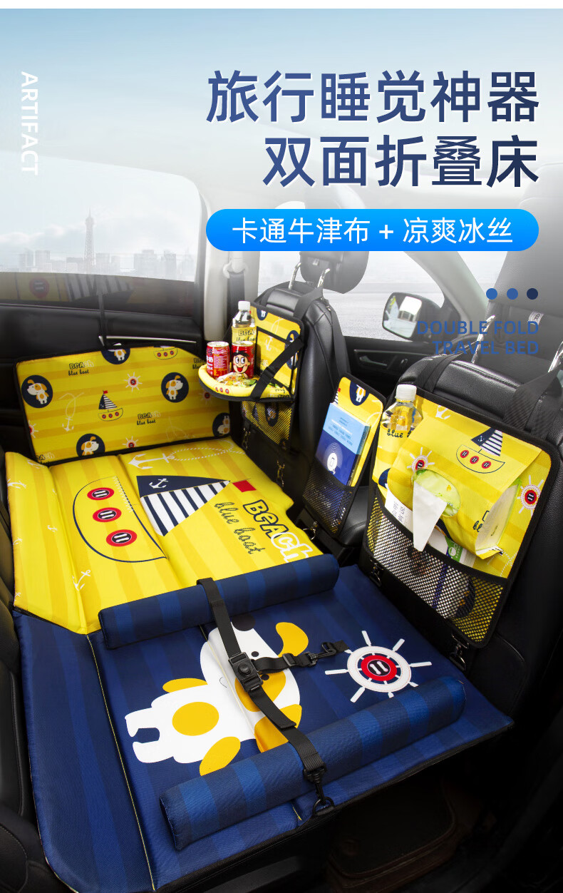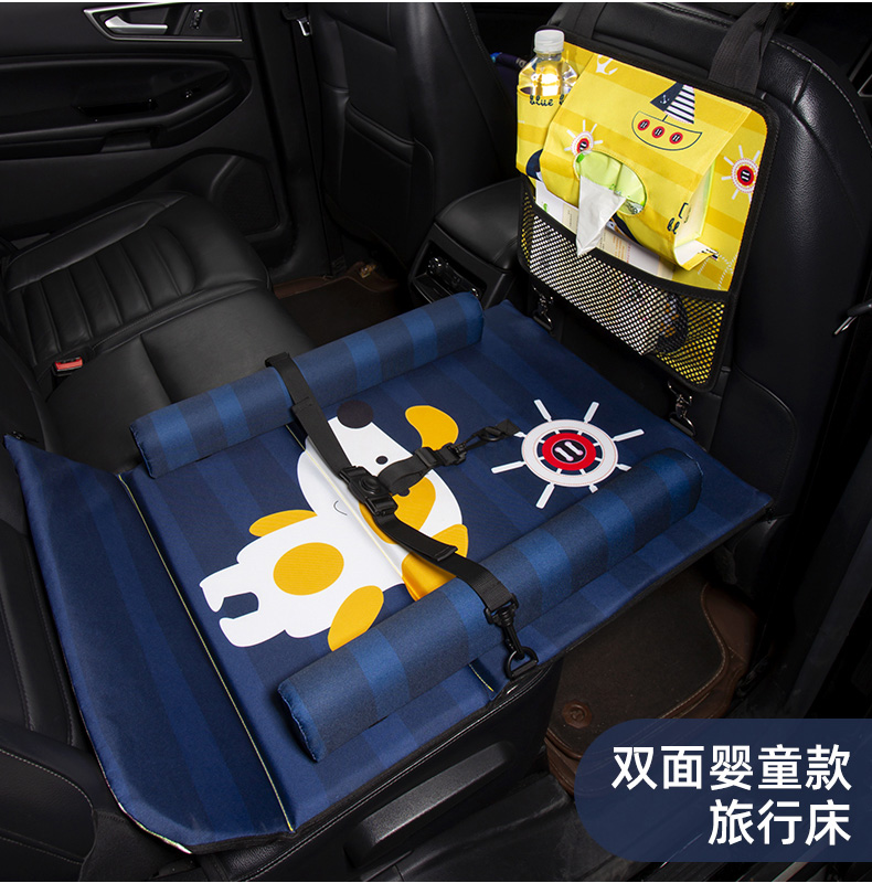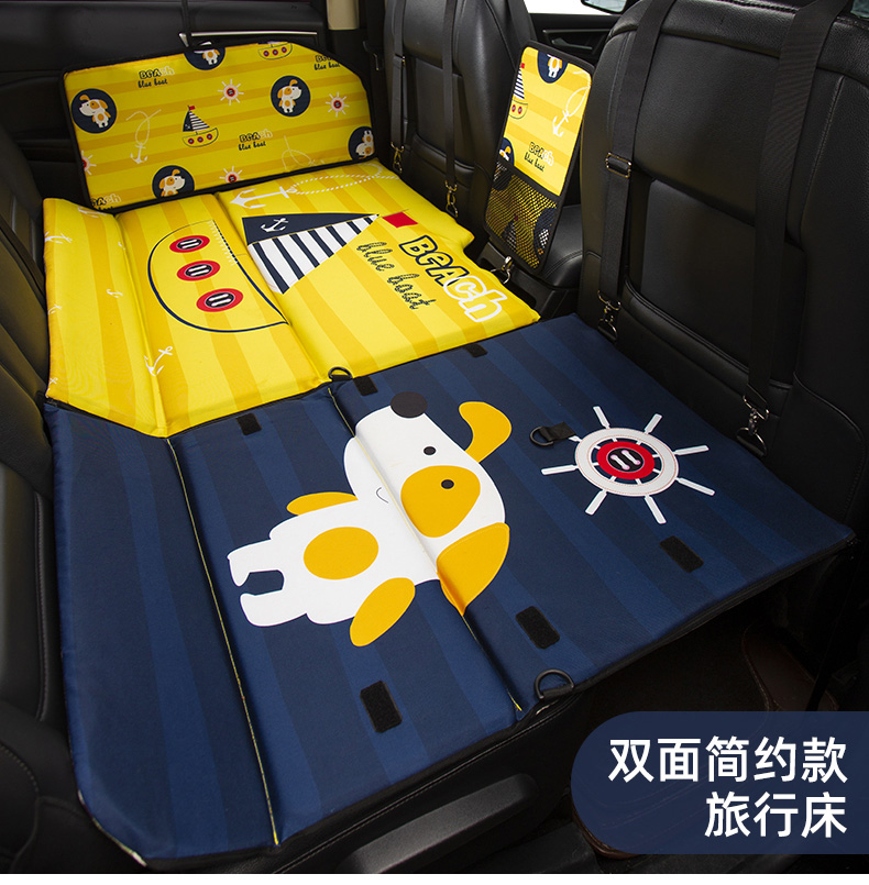 Jiuzhi car rear seat folding bed, sedan SUV rear sleeping pad, travel mattress, baby car sleeping device, cartoon car double-sided folding bed (luxury version), happy puppy/upgraded ice silk cool