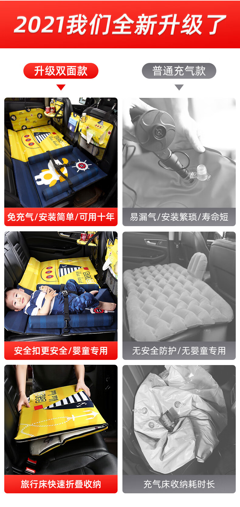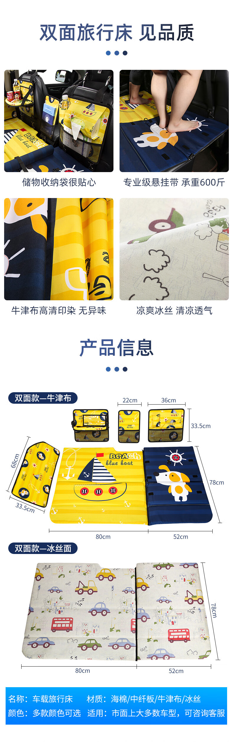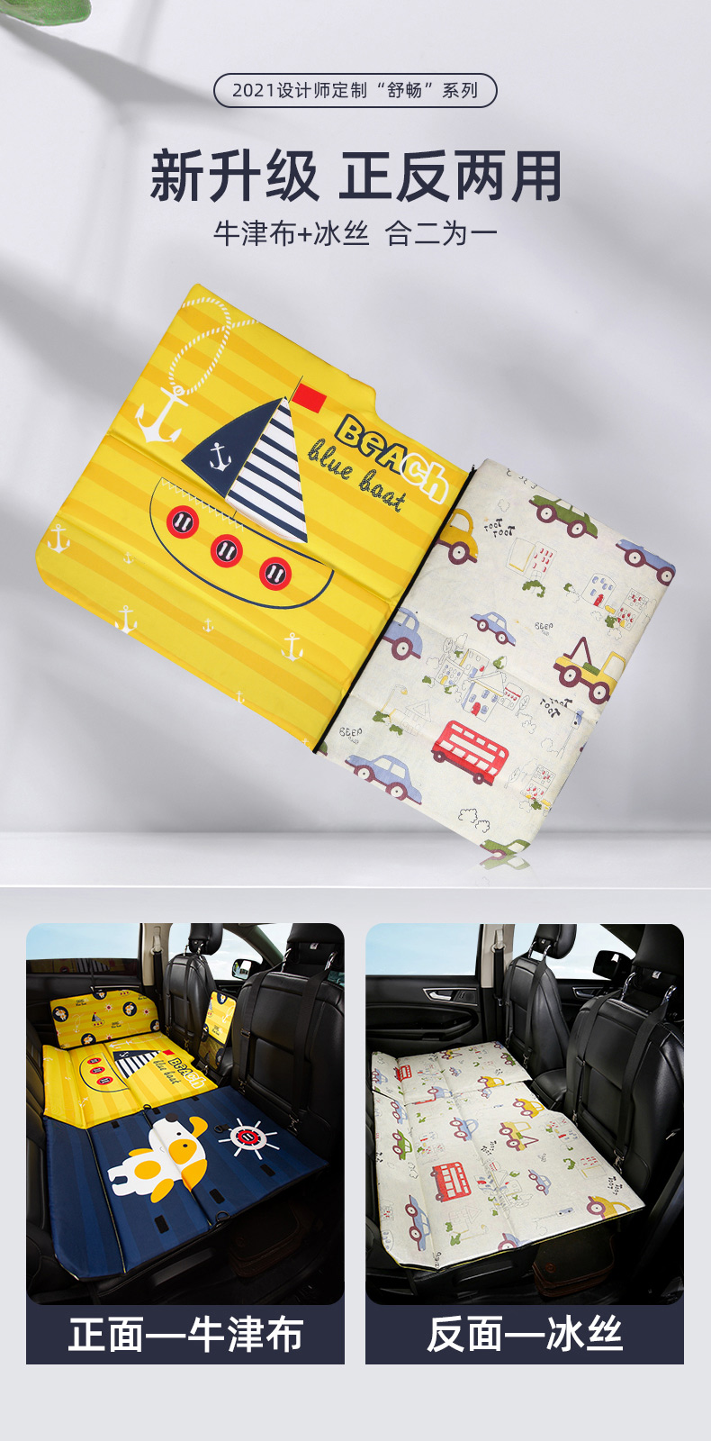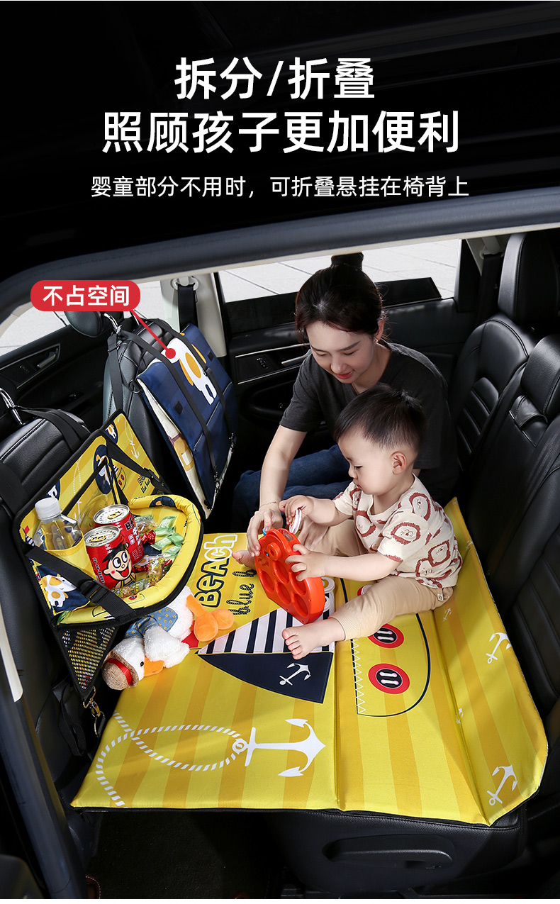 Jiuzhi car rear seat folding bed, sedan SUV rear sleeping pad, travel mattress, baby car sleeping device, cartoon car double-sided folding bed (luxury version), happy puppy/upgraded ice silk cool