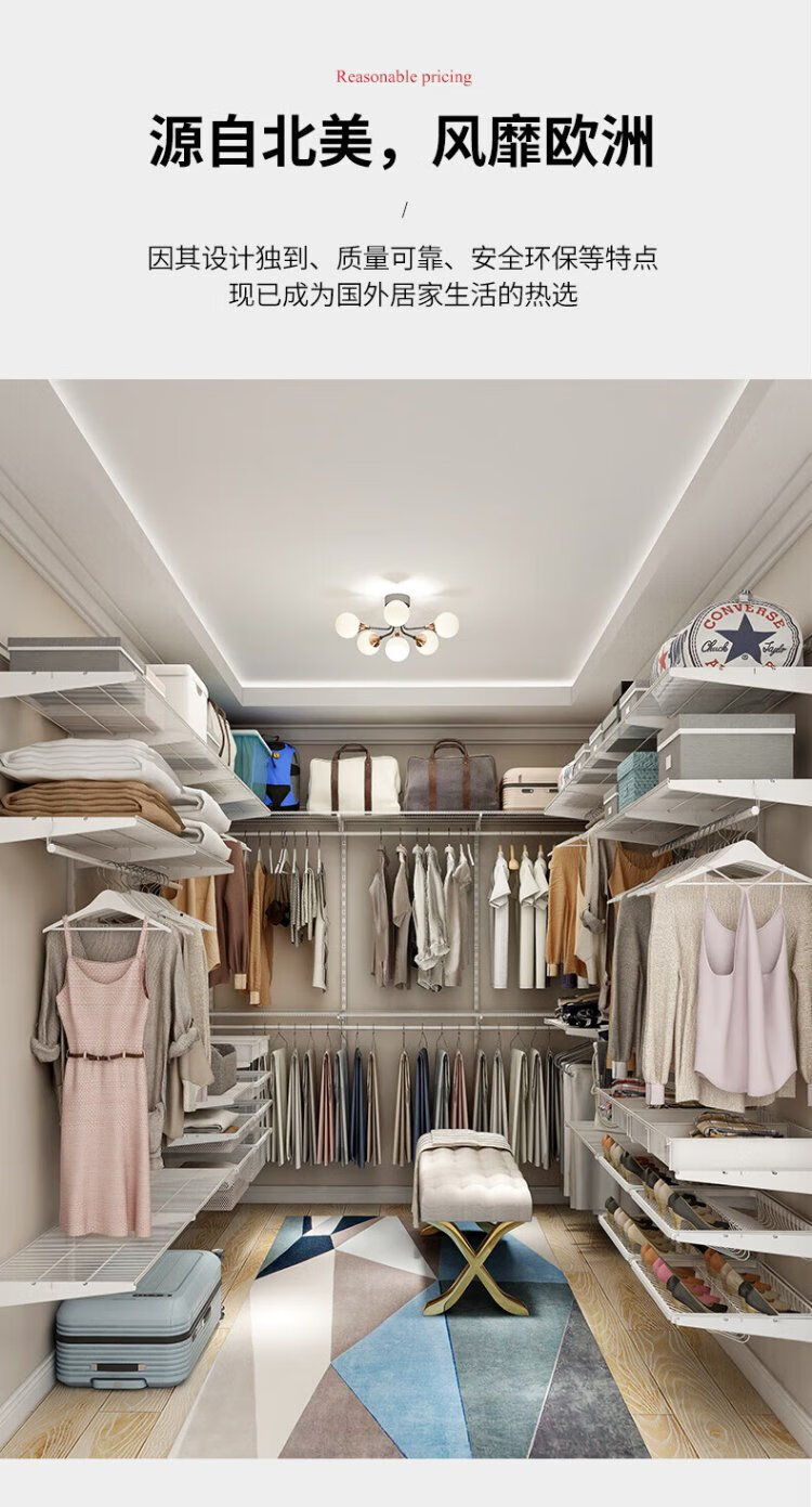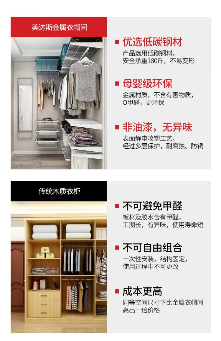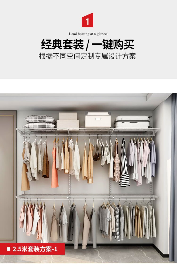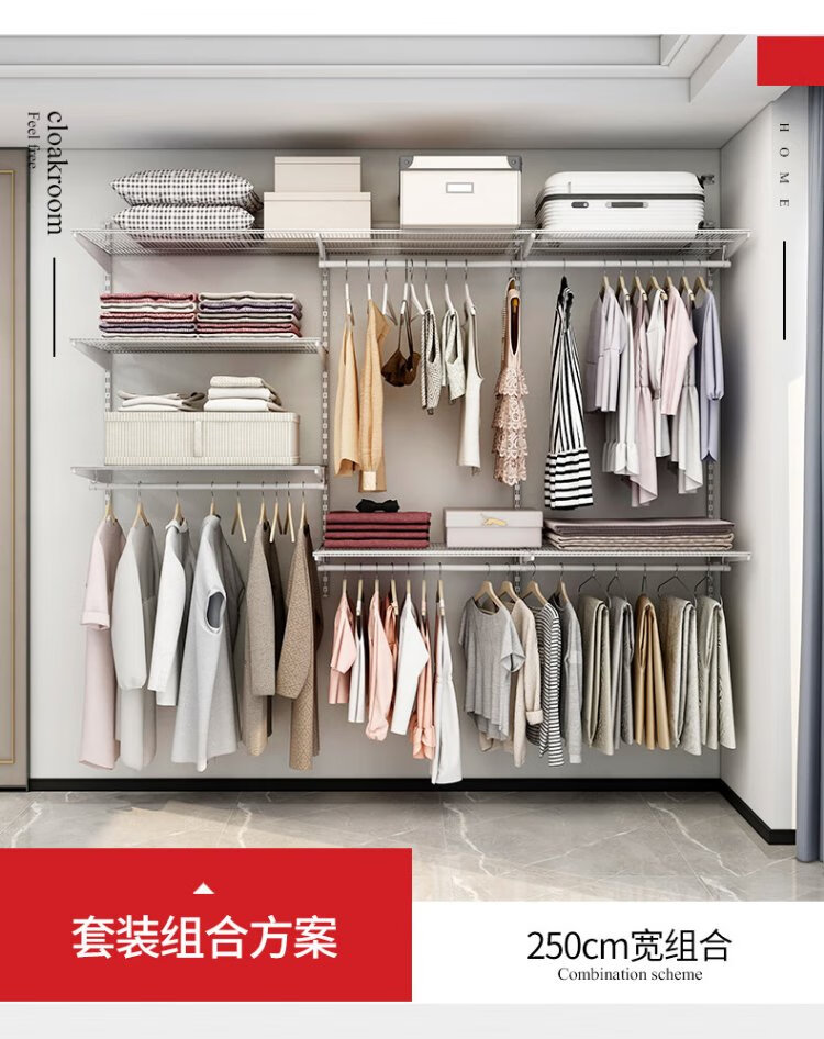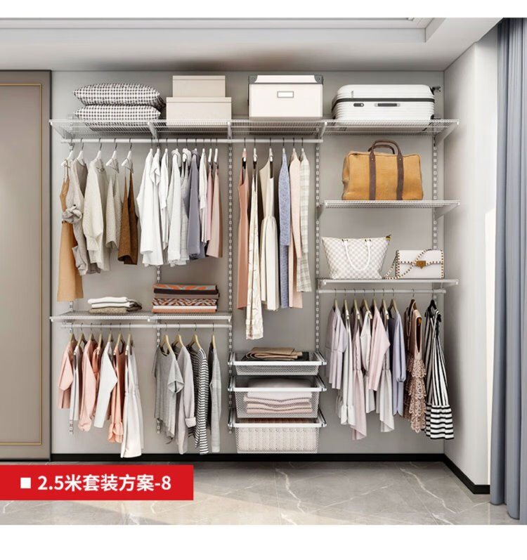 Midas modern simple metal cloakroom wardrobe 2.5 meters wide walk-in home small apartment bedroom wardrobe 2.5 meters metal wardrobe plan-2 (installation included)