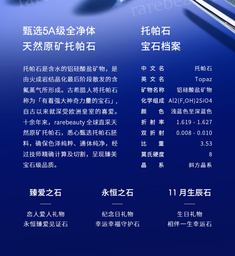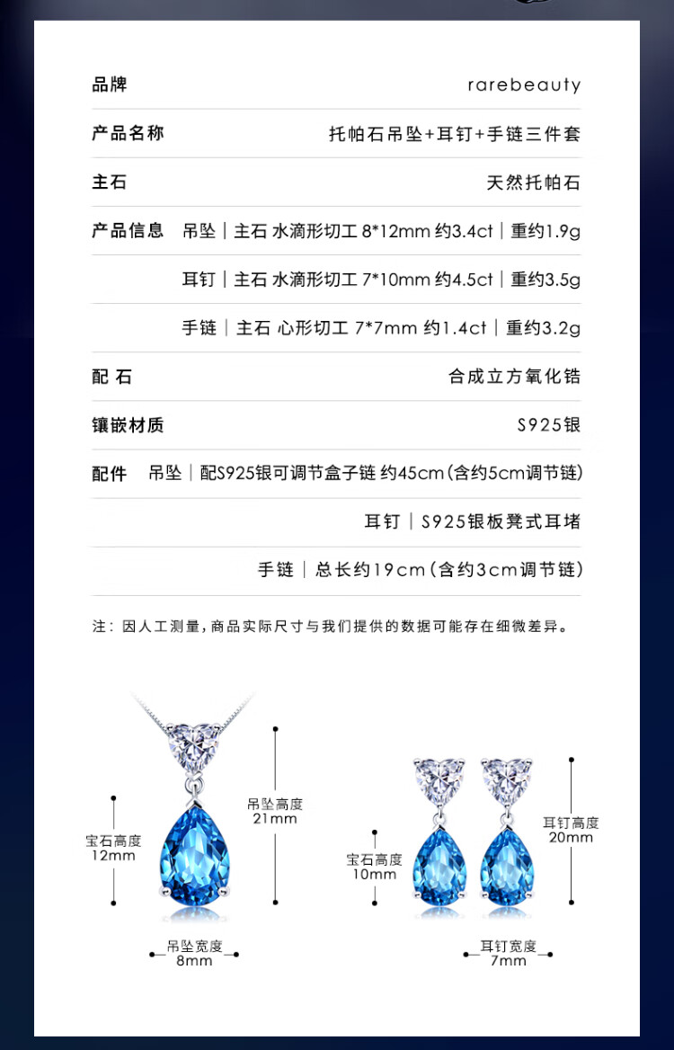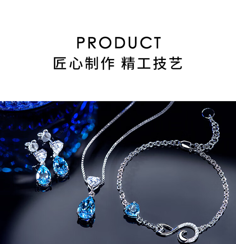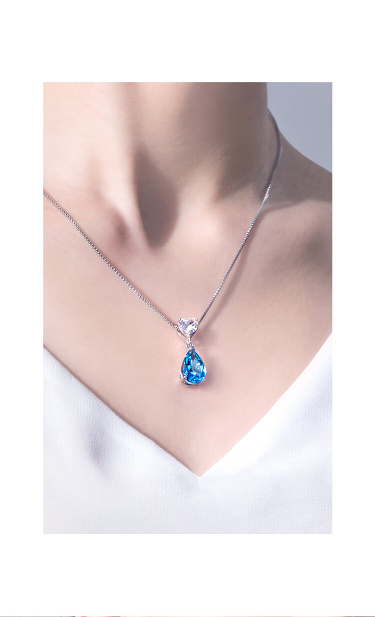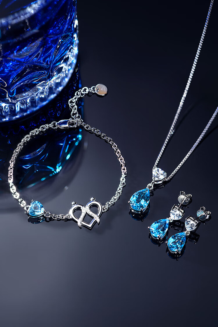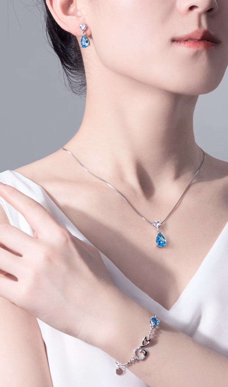 Rarebeauty birthday gift set for girlfriend and wife, necklace for women, silver jewelry, blue topaz pendant, necklace + earrings + Scorpio bracelet
