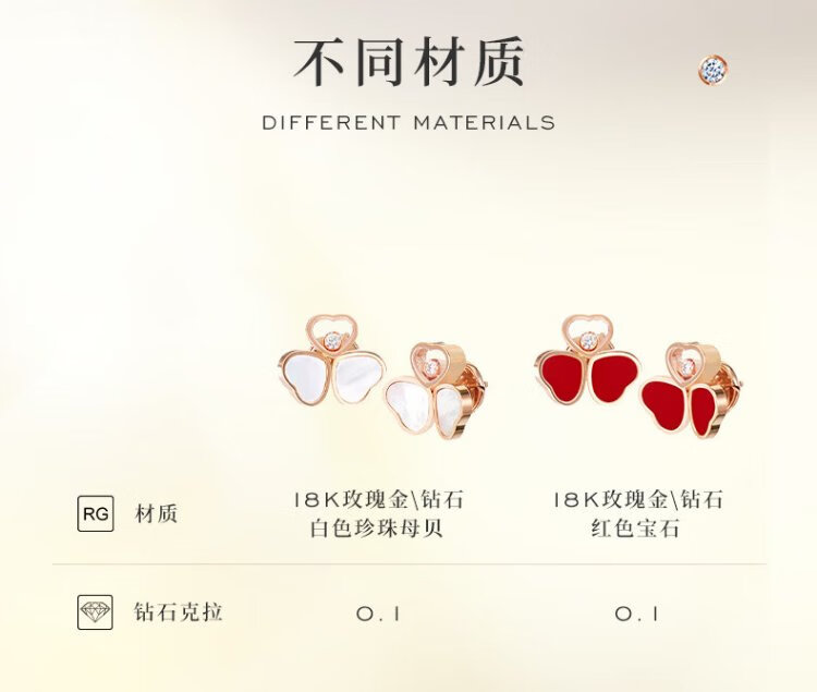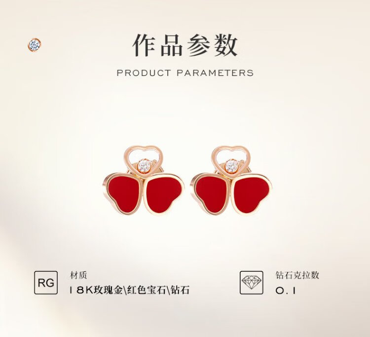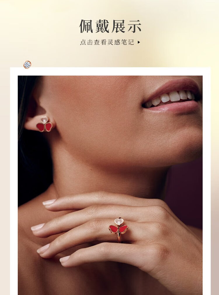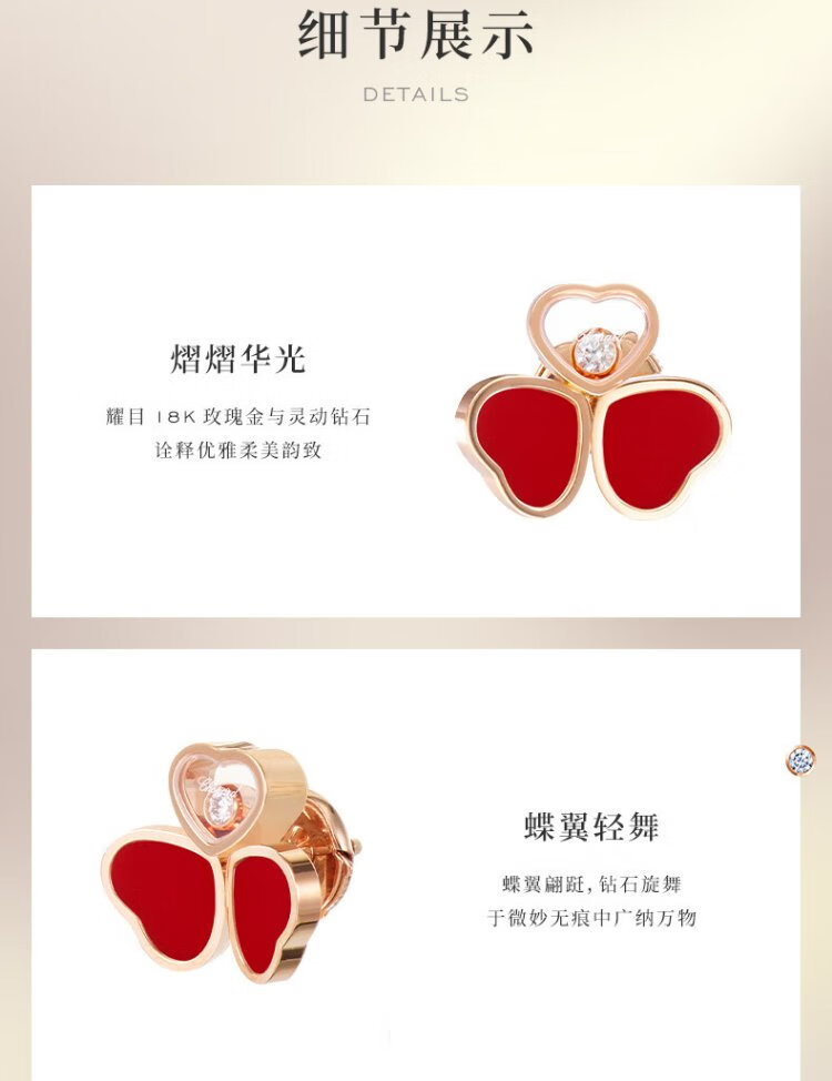 Chopard Clover Butterfly Style 18K Rose Gold Diamond Stud Earrings for Girlfriend Happy Diamond New Year Gift Authentic 18K Rose Gold Red Gemstone 15mm x 13mm