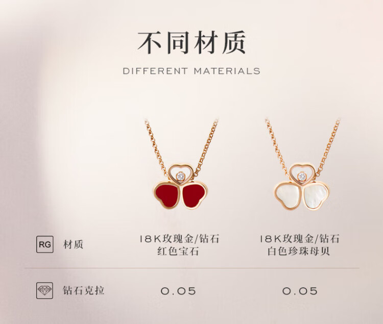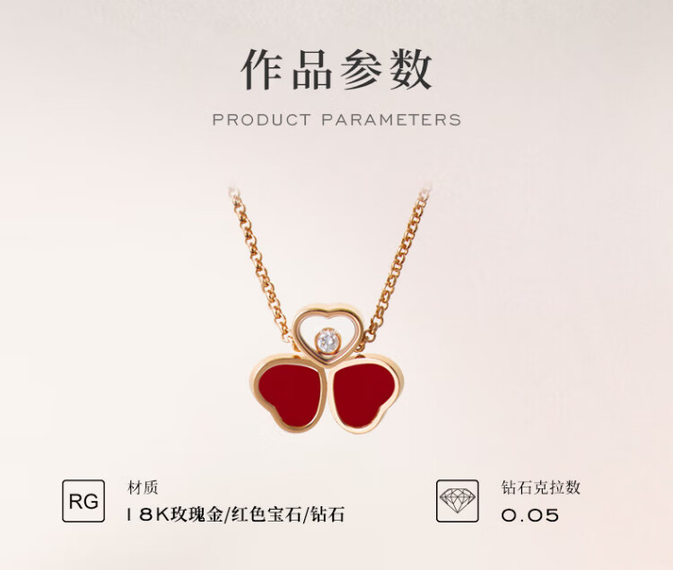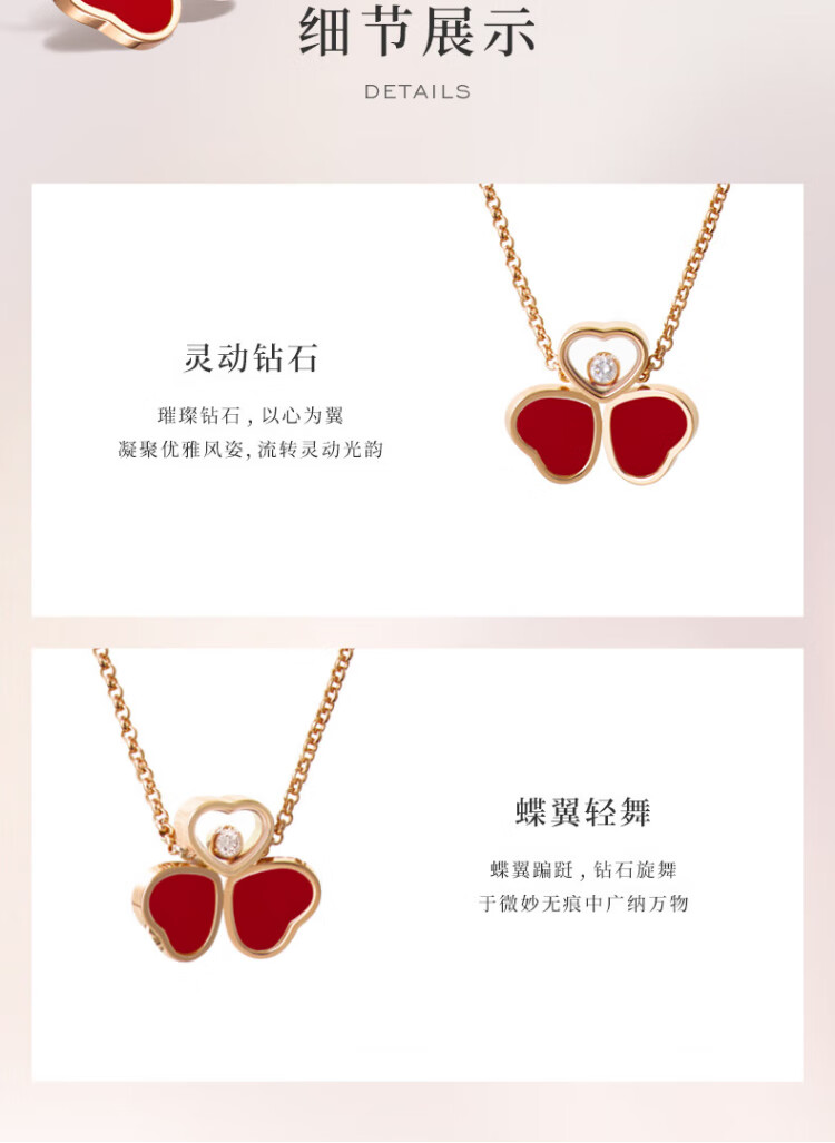 Chopard Clover Butterfly 18K Rose Gold Diamond Gemstone Necklace Pendant Happy Diamond New Year Gift Official Authentic Red Gemstone 370mm-420mm