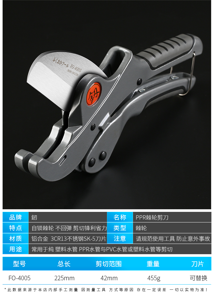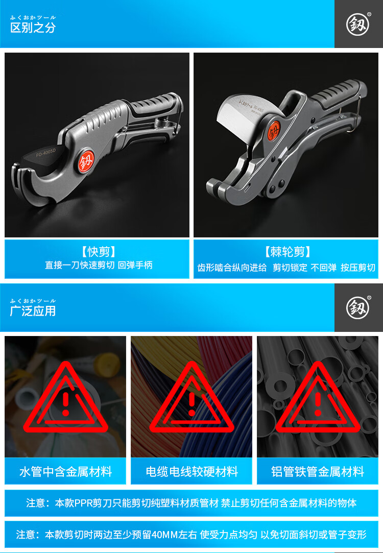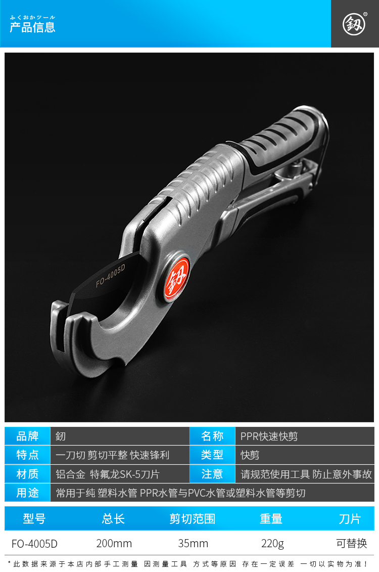 Japan Fukuoka original tool pvc water pipe scissors line cutter quick cut ppr pipe cutting blade FO-4005D quick cut with blade