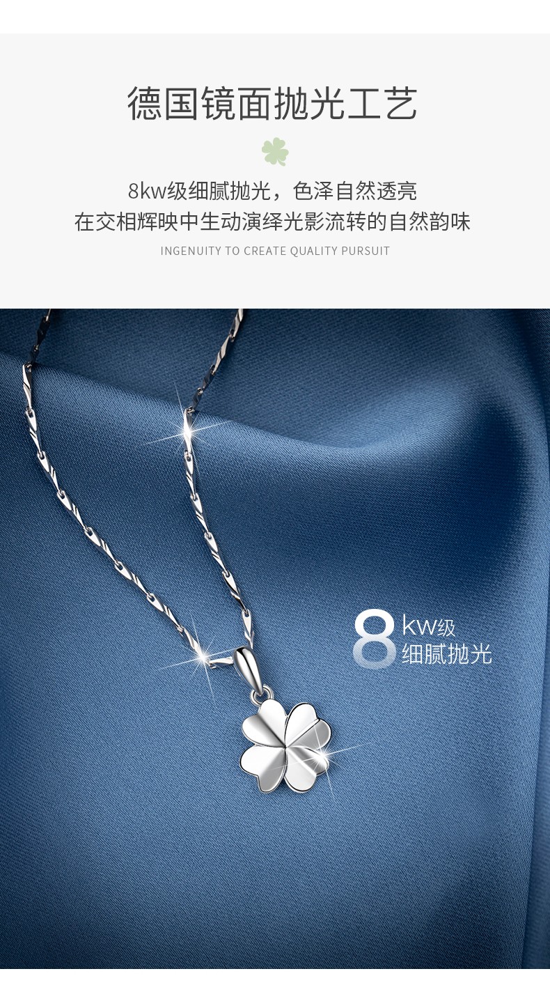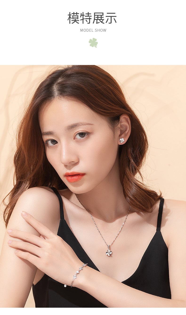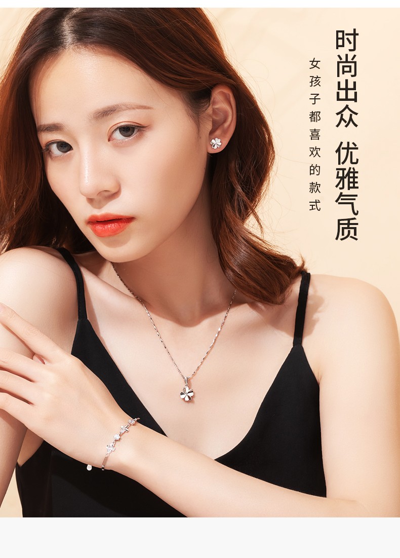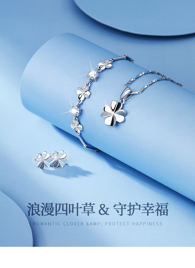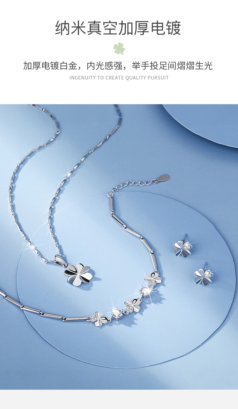 Huaying (HUAYING) light luxury sterling silver four-leaf clover necklace, bracelet, high-end jewelry for girls, anniversary birthday gift for girlfriend, pure silver four-leaf clover set, necklace + bracelet + earrings