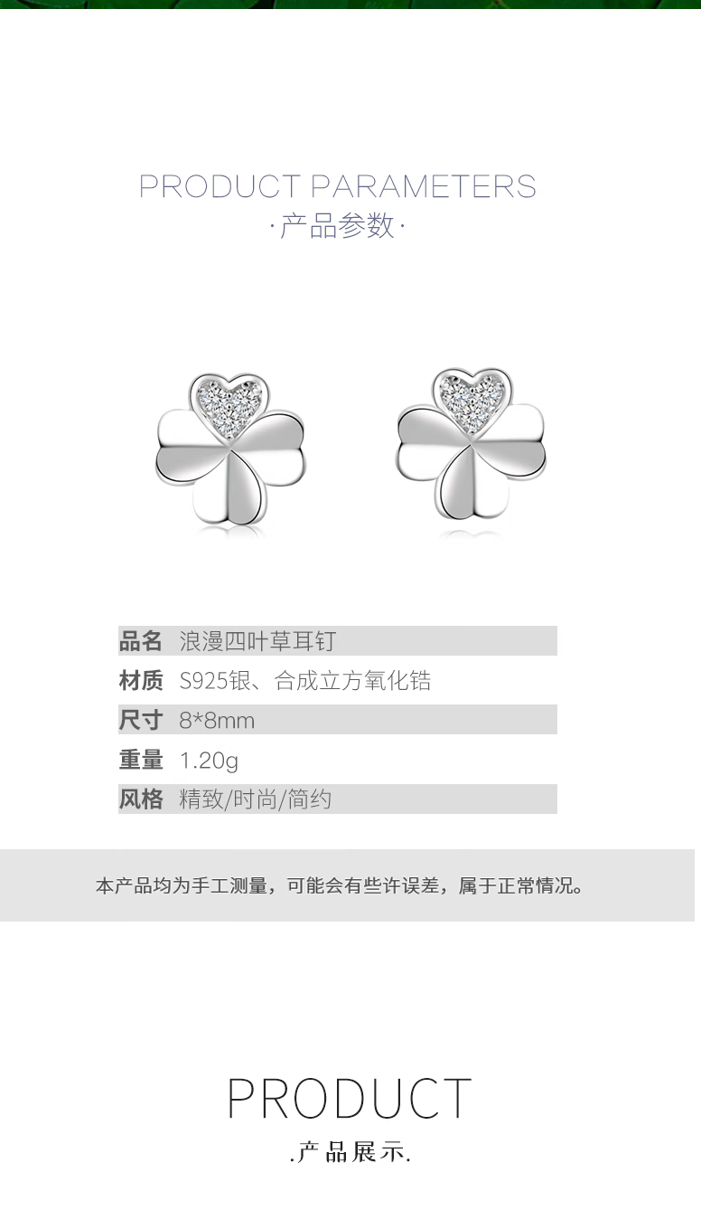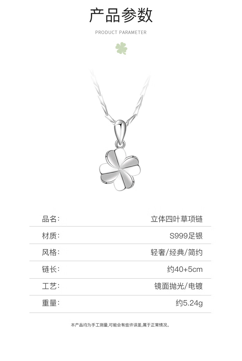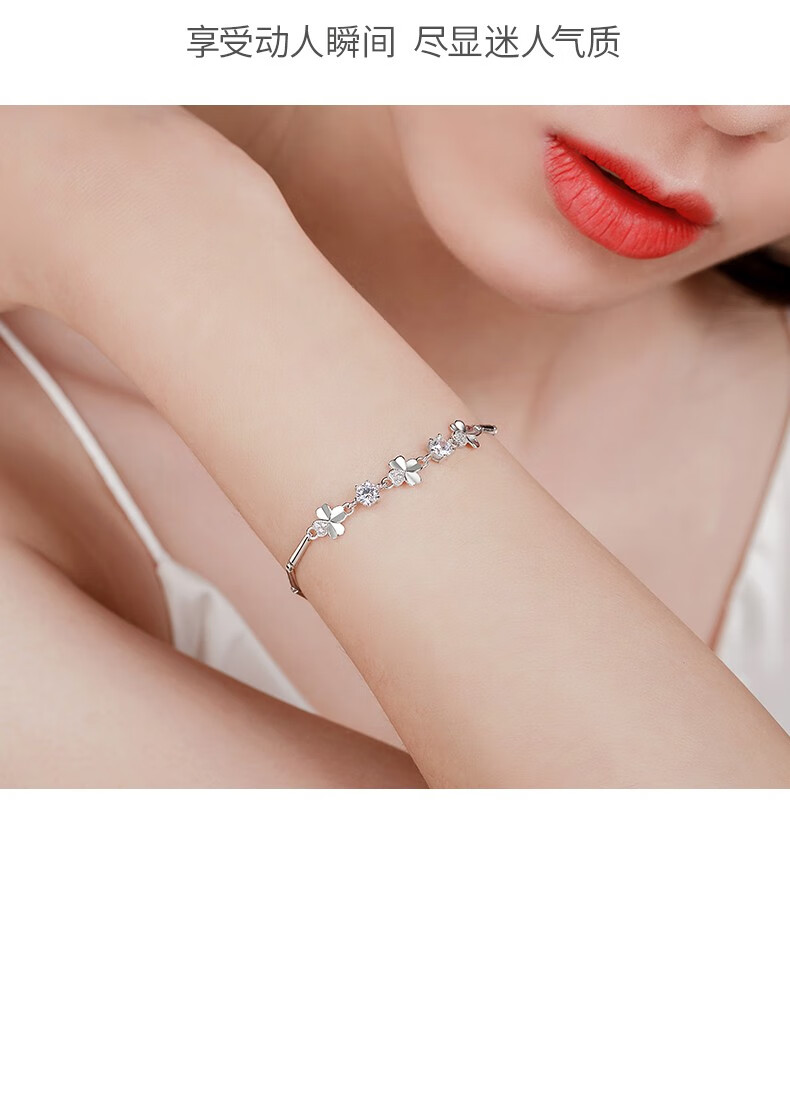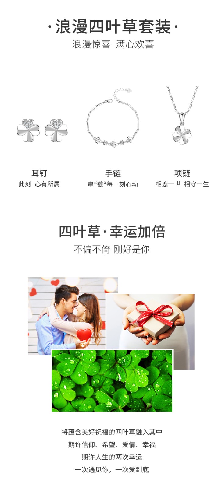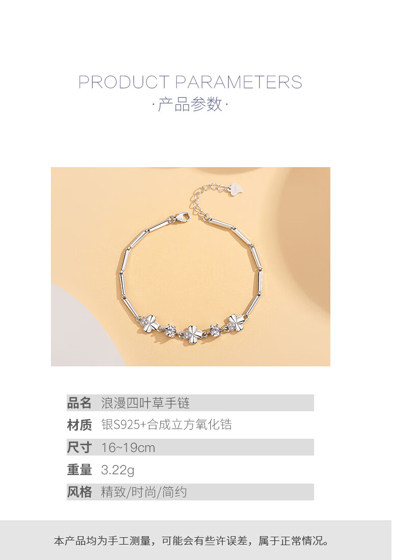 Huaying (HUAYING) light luxury sterling silver four-leaf clover necklace, bracelet, high-end jewelry for girls, anniversary birthday gift for girlfriend, pure silver four-leaf clover set, necklace + bracelet + earrings