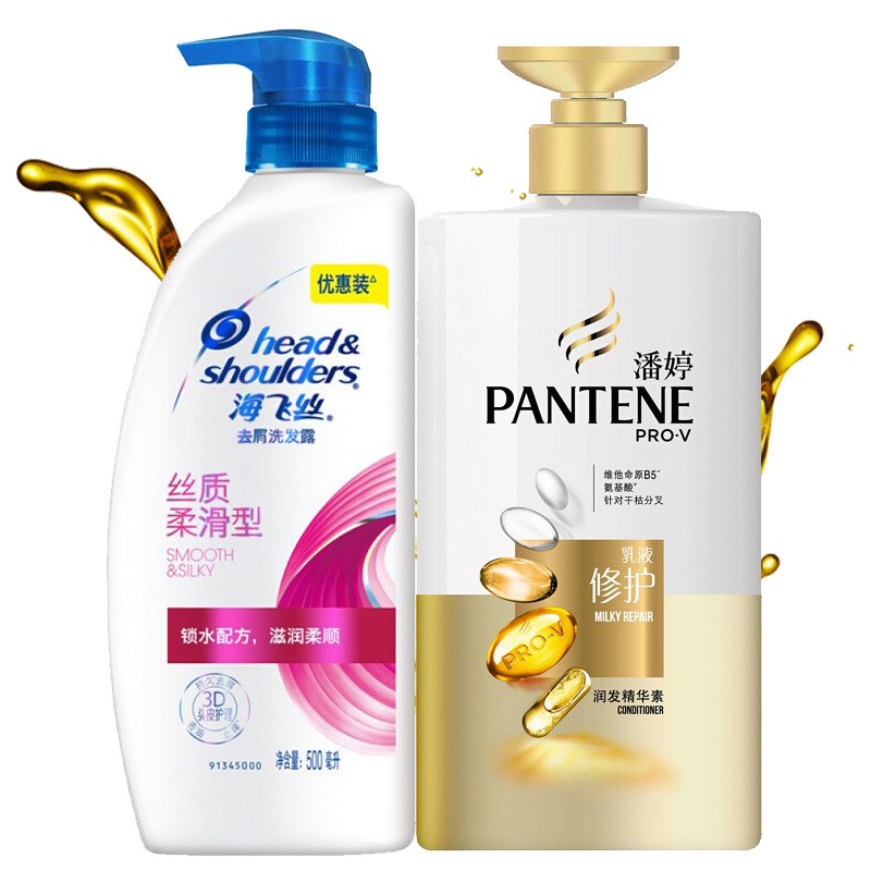 Head and Shoulders Shampoo and Conditioner Set to Improve Frizz and Dry Hydrating Lotion Repair Shampoo and Conditioner Set 500g Silk Shampoo + 500g Lotion Care