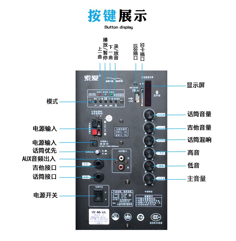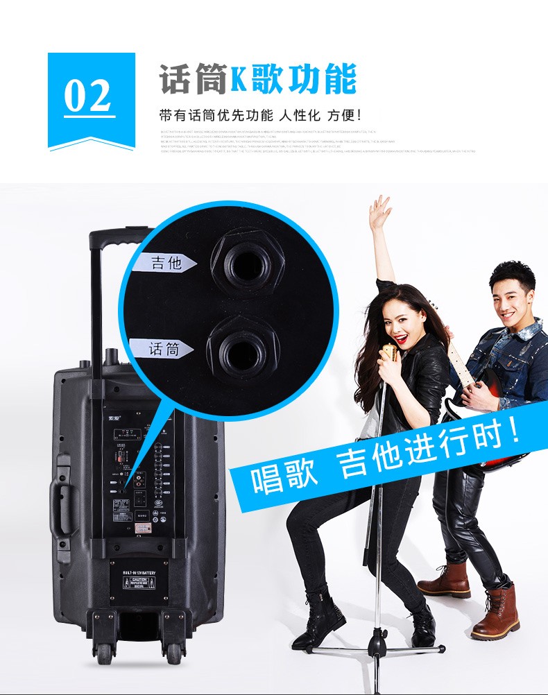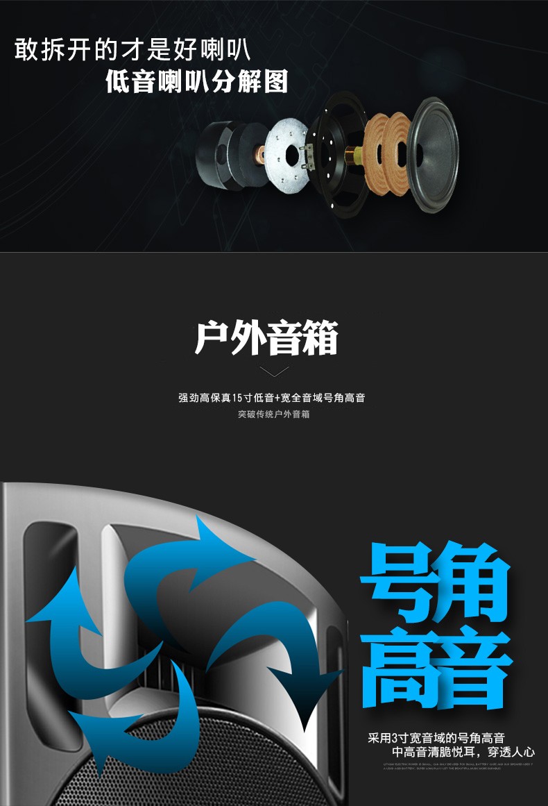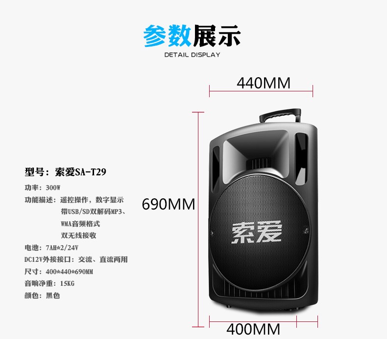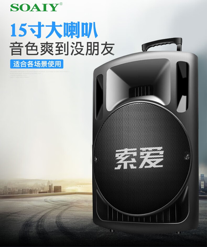 Sony Ericsson T29 15-inch audio outdoor trolley square dance speaker wireless Bluetooth high-power bass mobile portable karaoke 15-inch shocking bass + dual wireless microphones + U disk