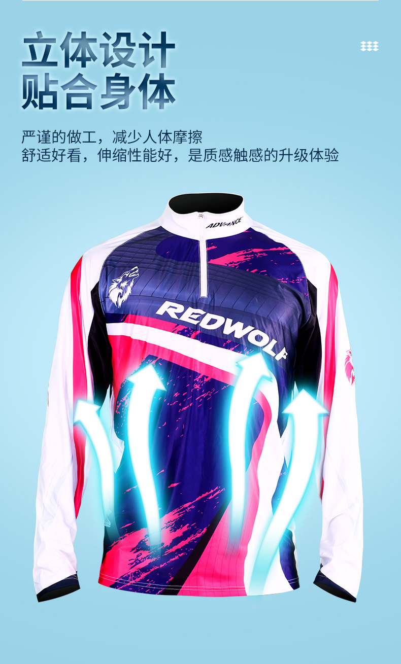 Red Wolf Fishing Suit Long Sleeve Ice Silk Sun Protection Suit Summer Fishing Suit Breathable Quick-Drying Perspiration Suit Ice Silk Top Red Wolf-Fishing Suit-Long Sleeve Ice Silk-2XL