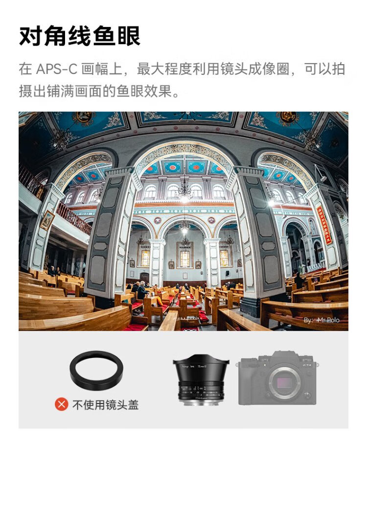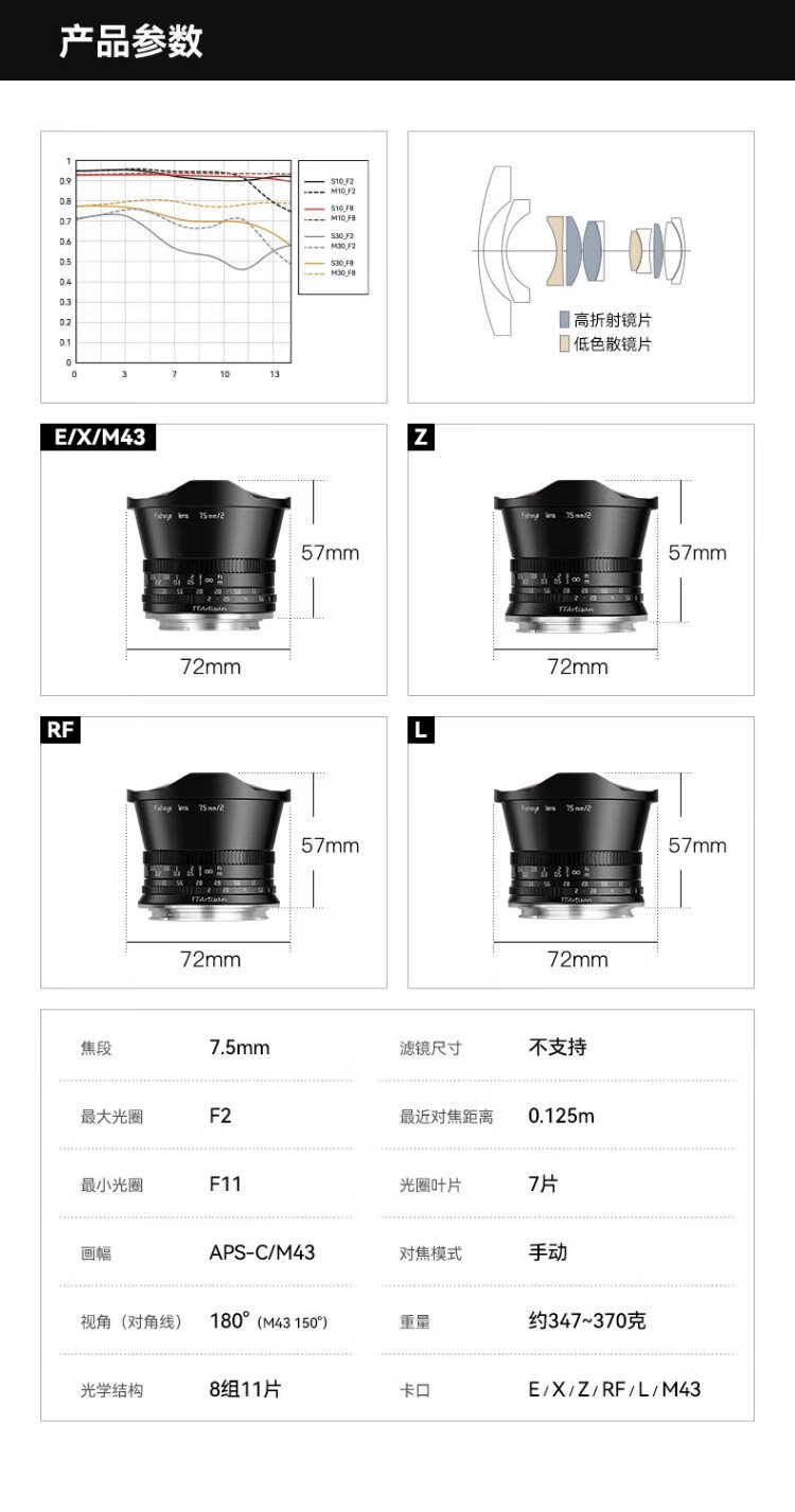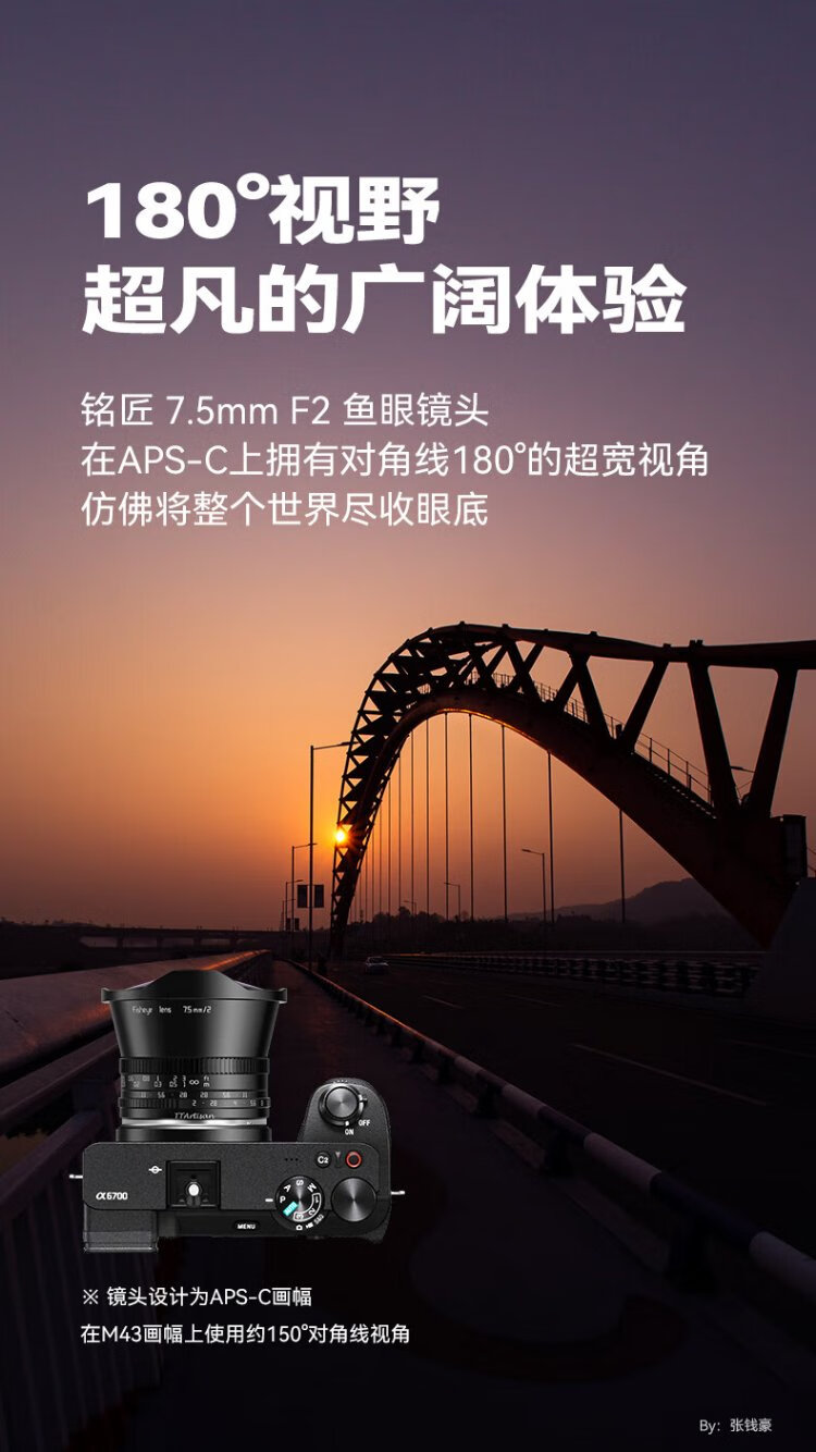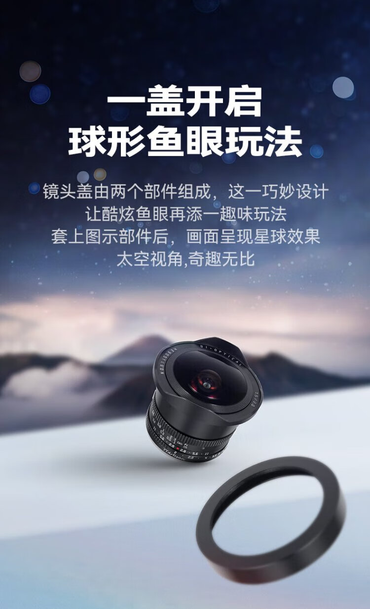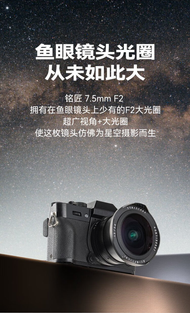Mingjiang 7.5mm f2 wide-angle fisheye fixed focus lens for starry sky landscape shooting, suitable for X mount E mount Z mount RF mount L mount mirrorless camera lens black Sony E mount (half frame)