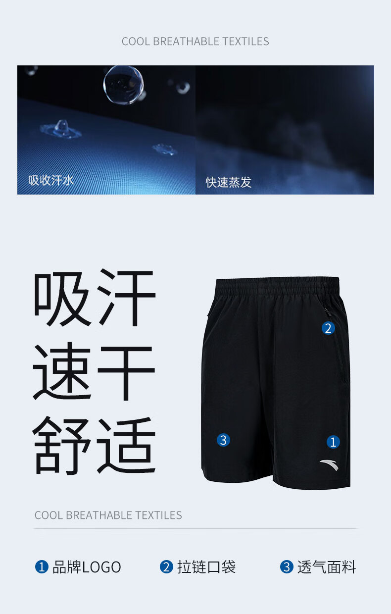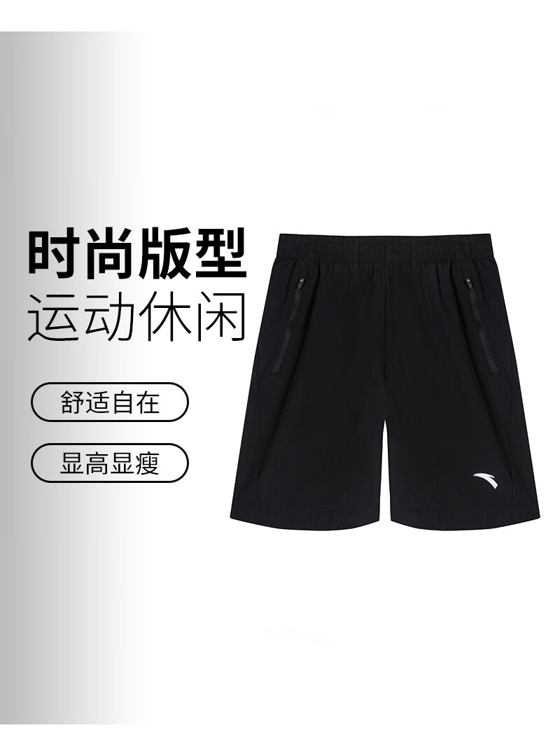 ANTA shorts men's five-point sports pants summer ice silk breathable sports quick-drying pants loose casual pants running fitness pants -3 basic black oblique convenient pocket XL (180) suitable for 140-160Jin Jin equals 0.5 kg