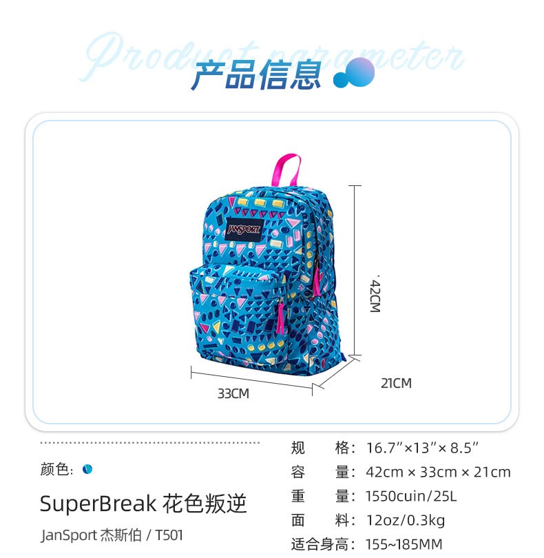 JanSport Jasper Rucksack Studentin Macaron Herrentasche Rucksack Schultasche Farbe T50155Z Schiebe-Edelstein