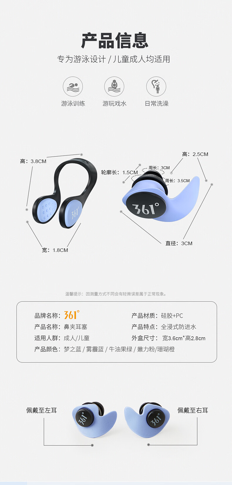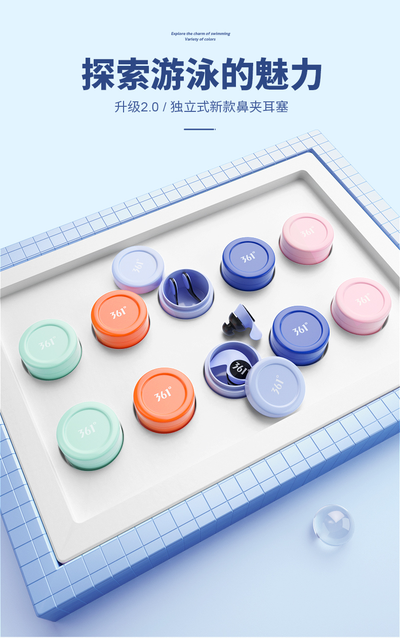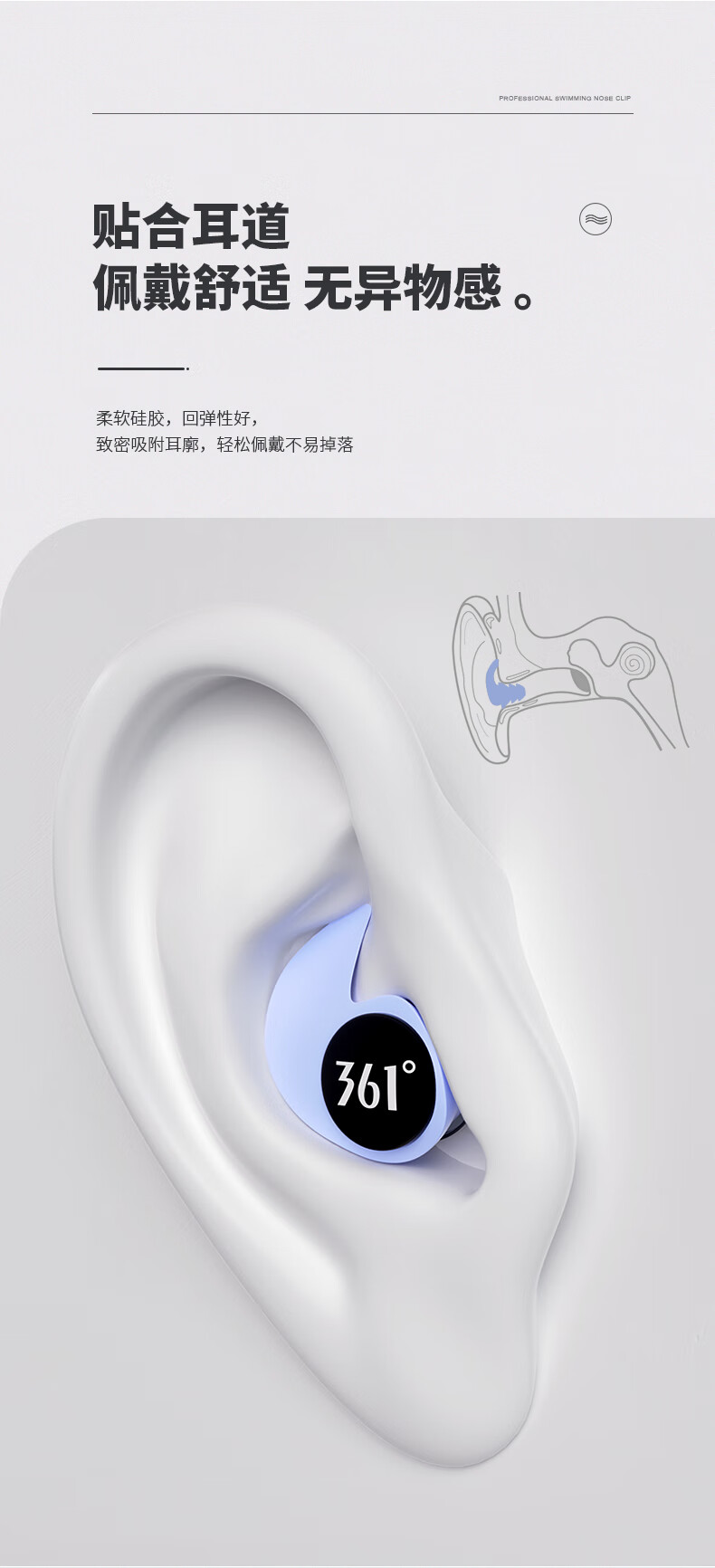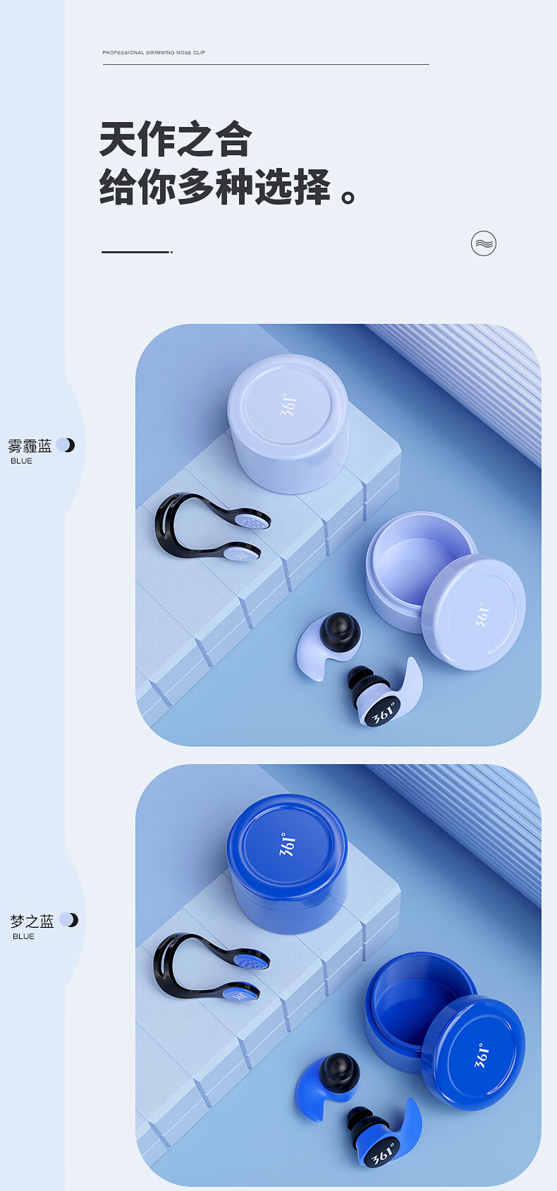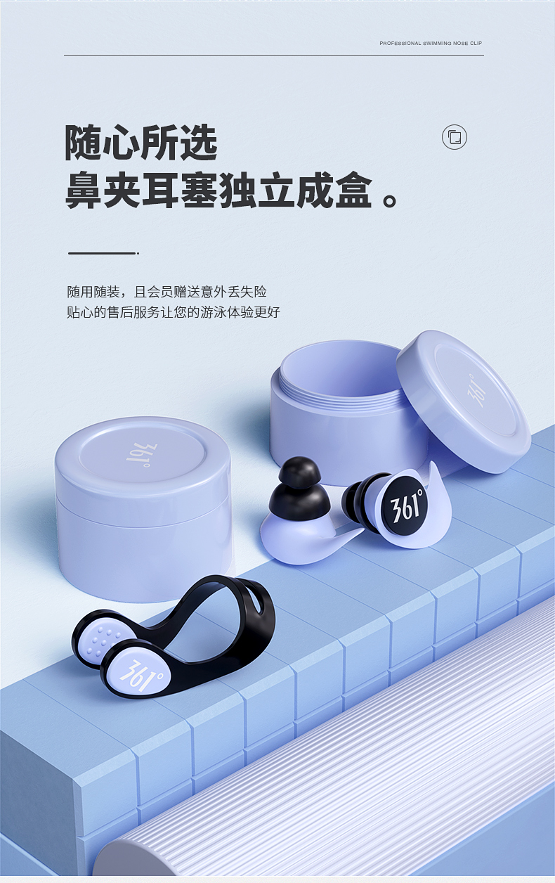 361 Swimming Earplugs Waterproof Swimming Bathing Anti-water Ingress Anti-Choking Children's Diving Nose Clip Artifact Set Earplugs-Haze Blue