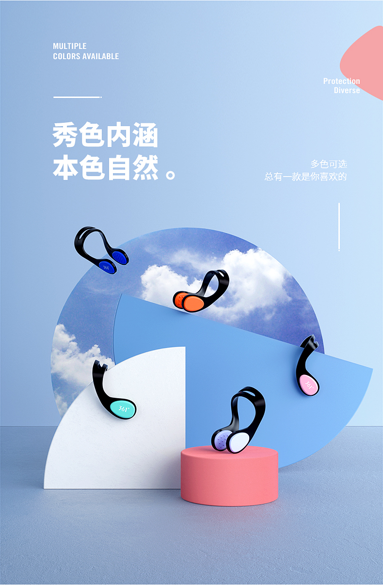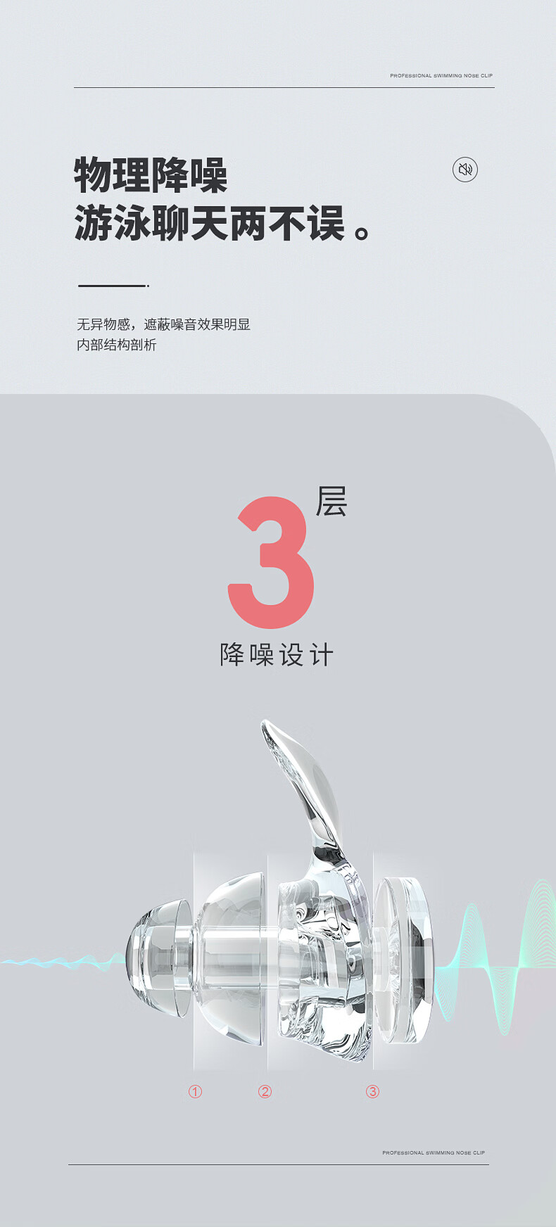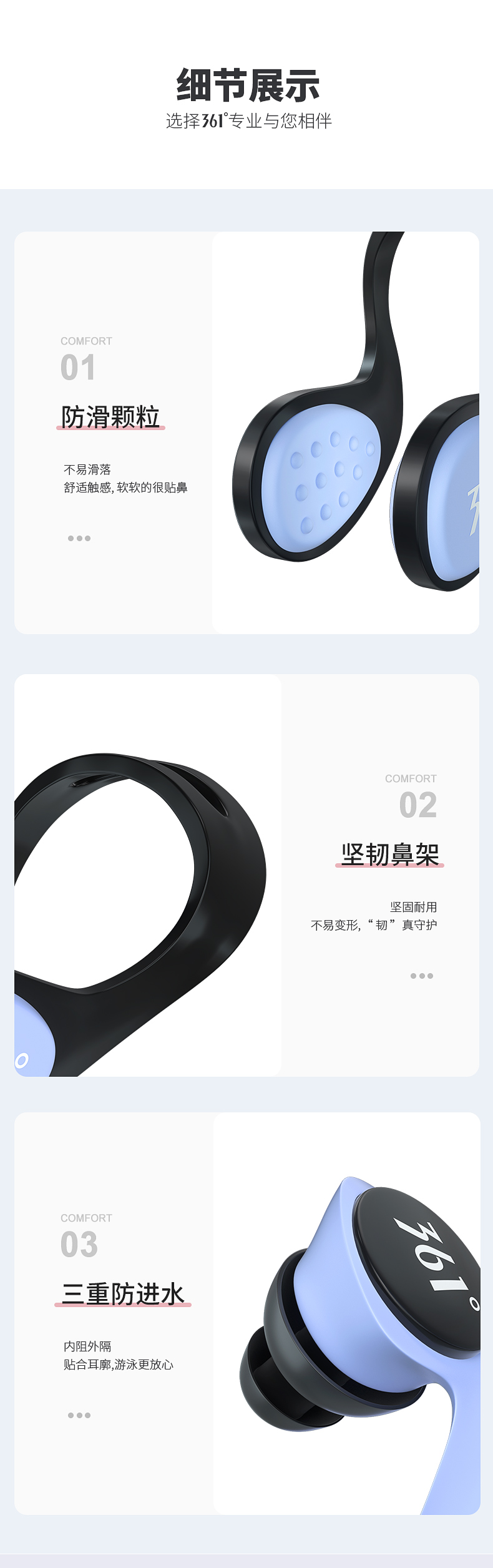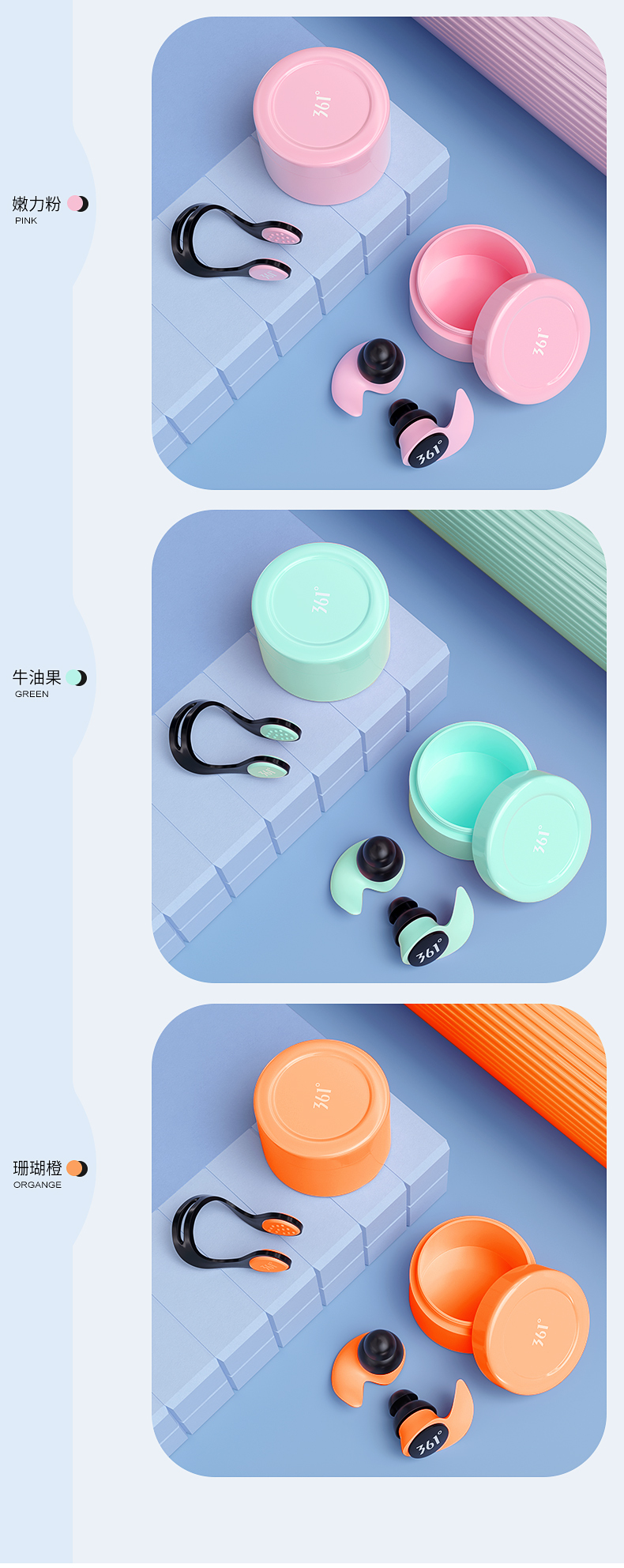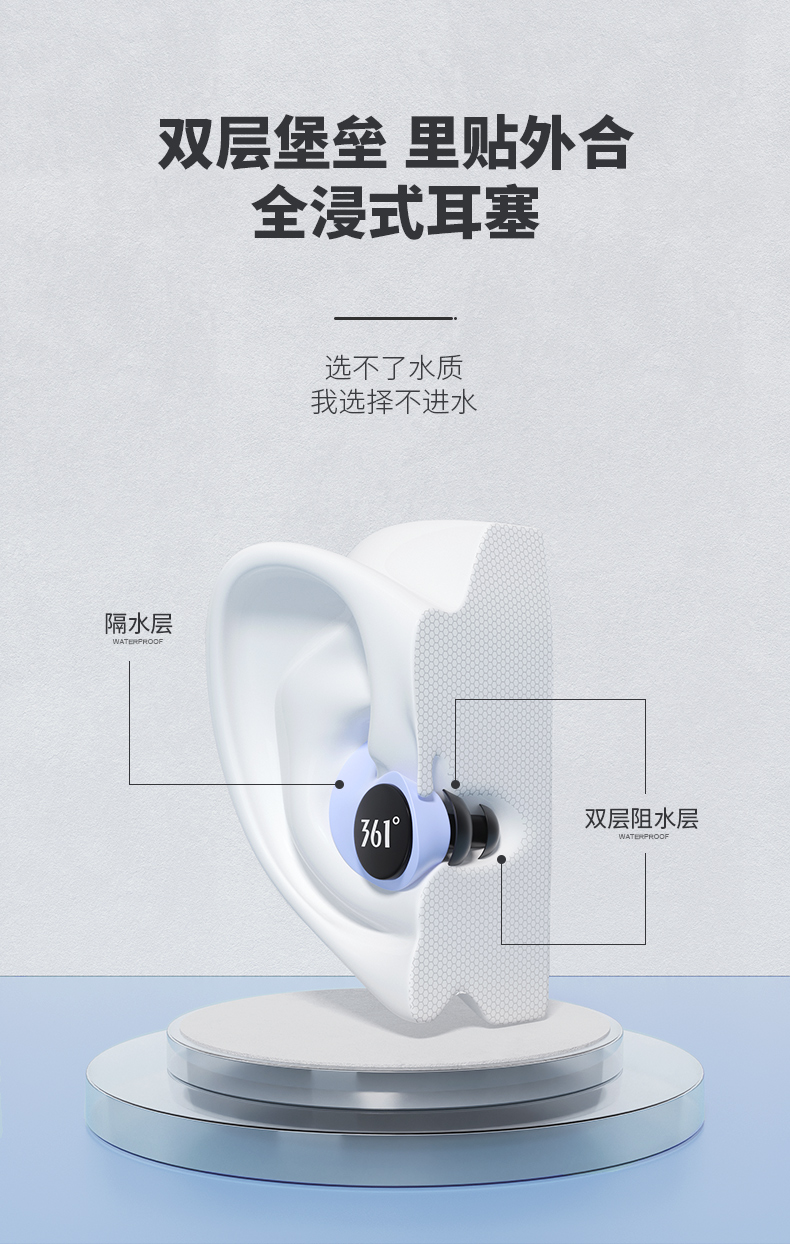361 Swimming Earplugs Waterproof Swimming Bathing Anti-water Ingress Anti-Choking Children's Diving Nose Clip Artifact Set Earplugs-Haze Blue