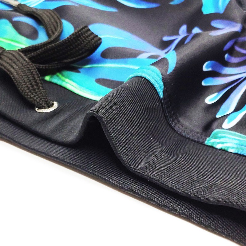 UXH tropical leaf green leaf briefs men's polyester fabric swimming pool ocean beach close-fitting elastic pants comfortable swimming equipment tethered size men's water sports black M