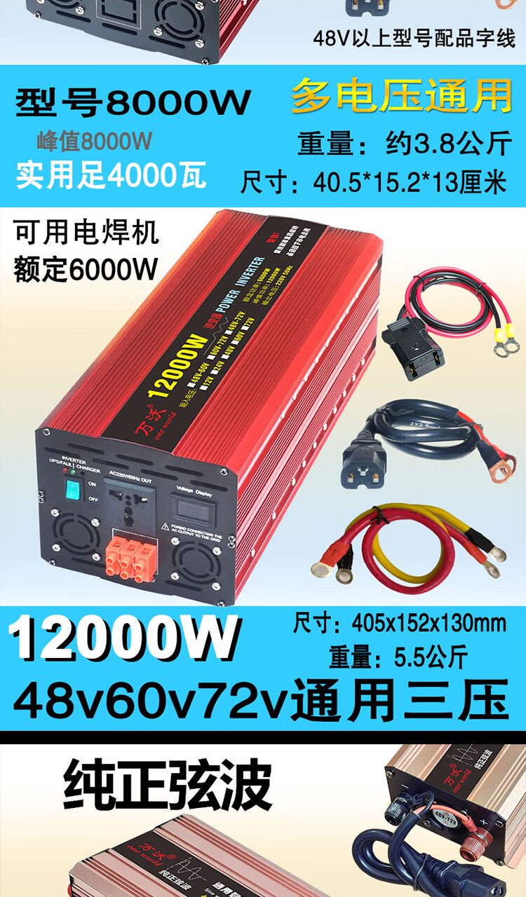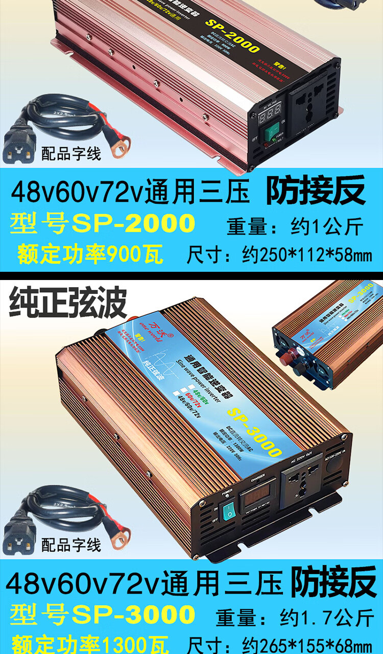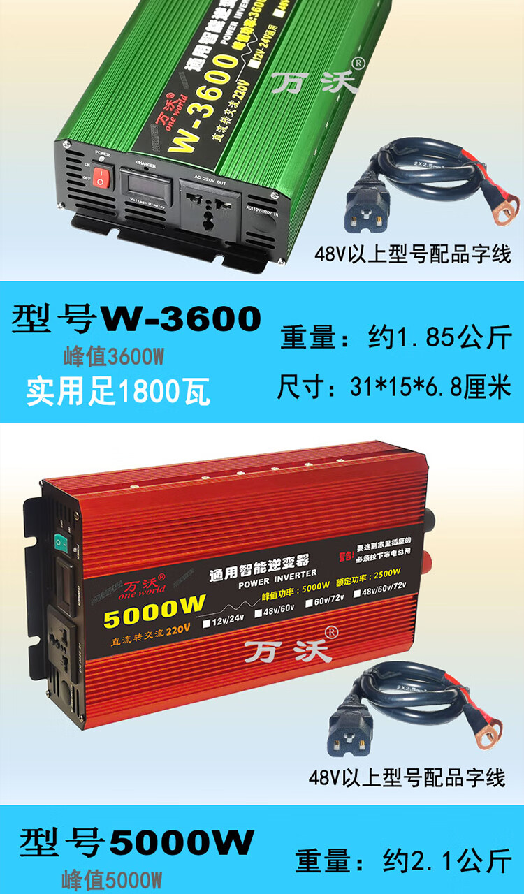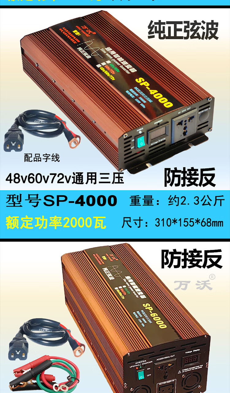 Wanwo inverter multi-voltage universal high power suitable for 4, 5, 6 batteries tricycle power converter 5000W rated power 2500 watts 48V-60V-72V three-voltage universal