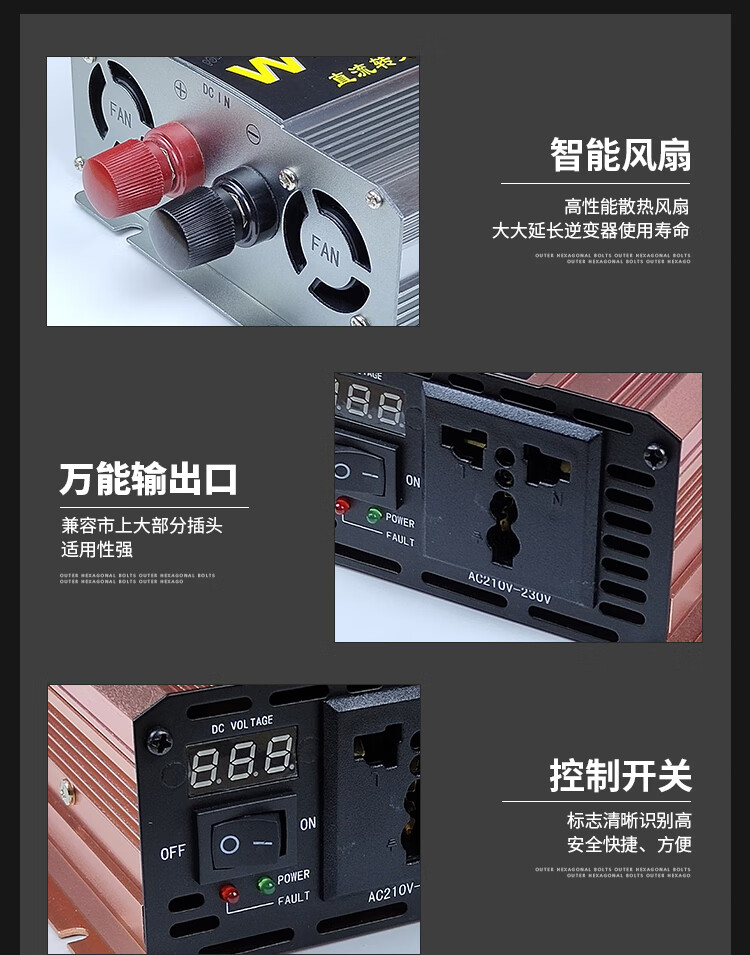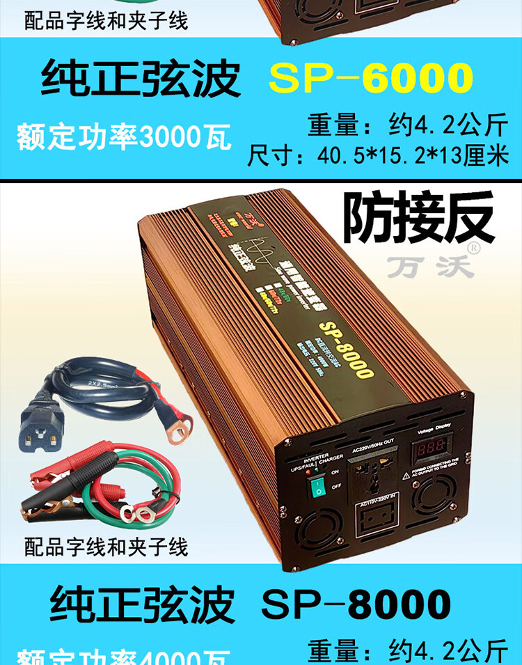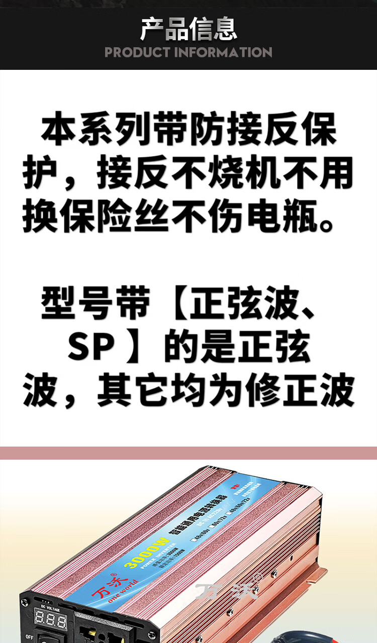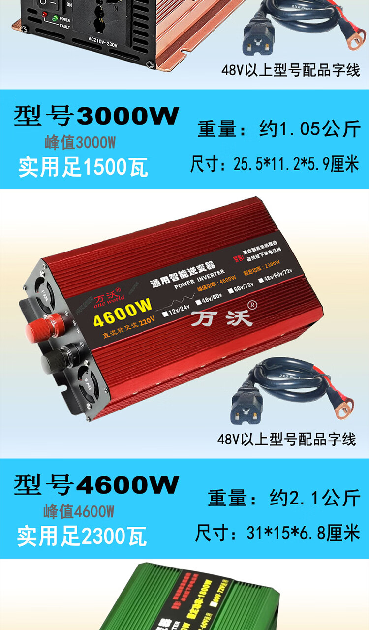 Wanwo inverter multi-voltage universal high power suitable for 4, 5, 6 batteries tricycle power converter 5000W rated power 2500 watts 48V-60V-72V three-voltage universal