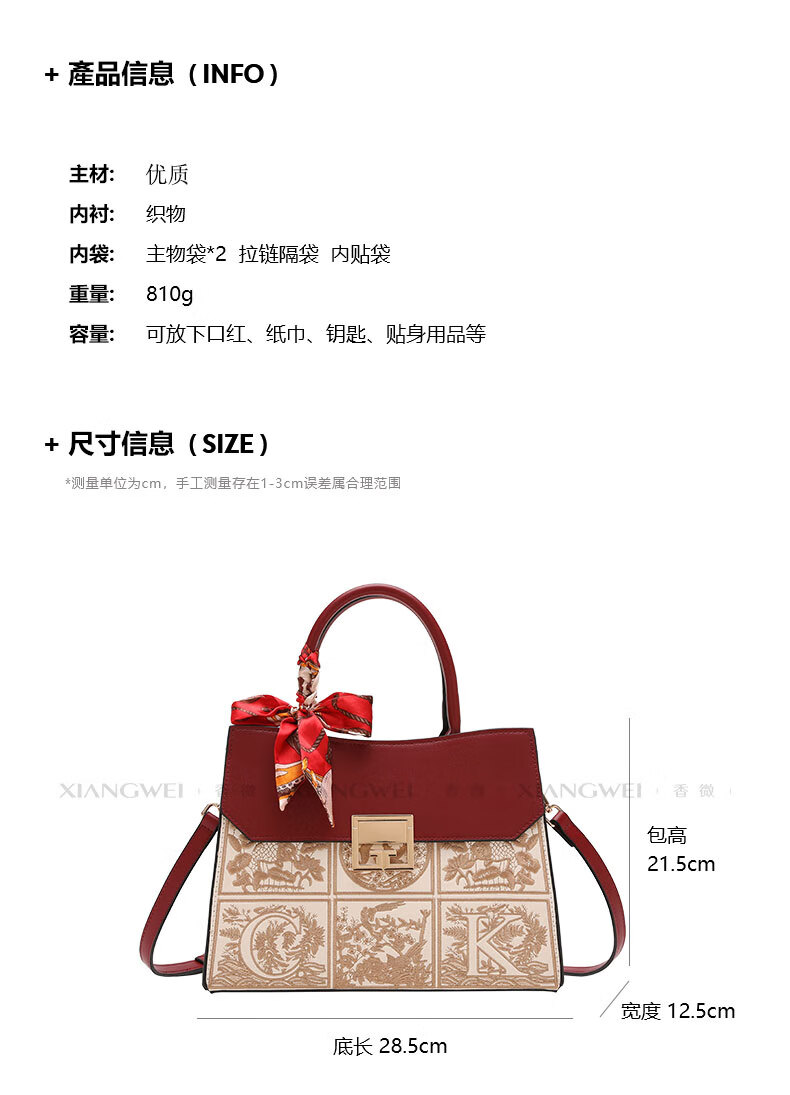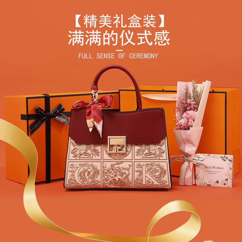 Xiangwei's practical birthday gift for mom 40 mother-in-law wedding bag women's bag 50 ladies handbag 2025 red (exquisite gift box + bouquet scarf)