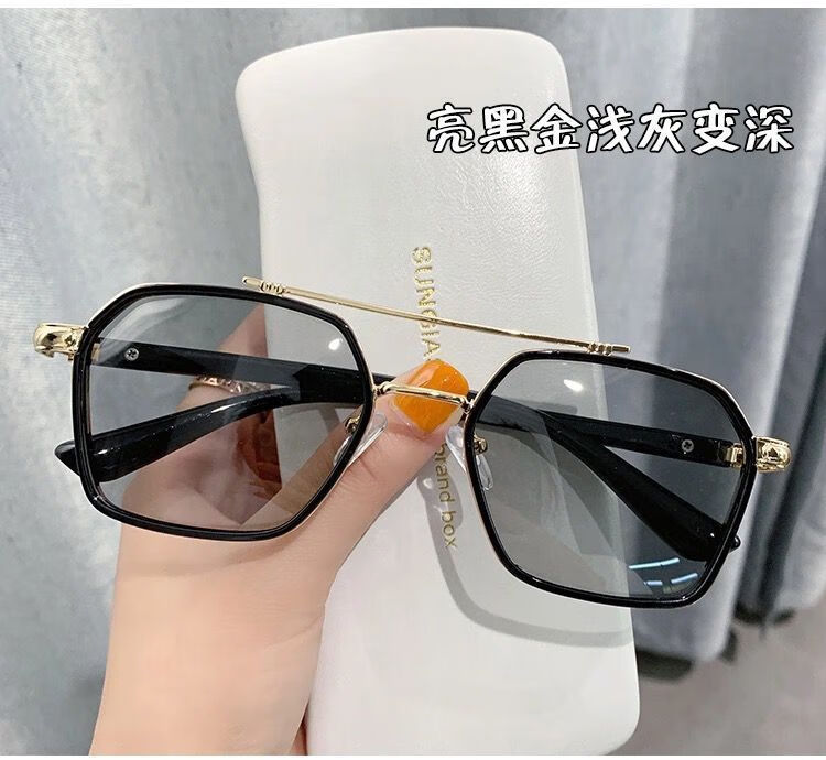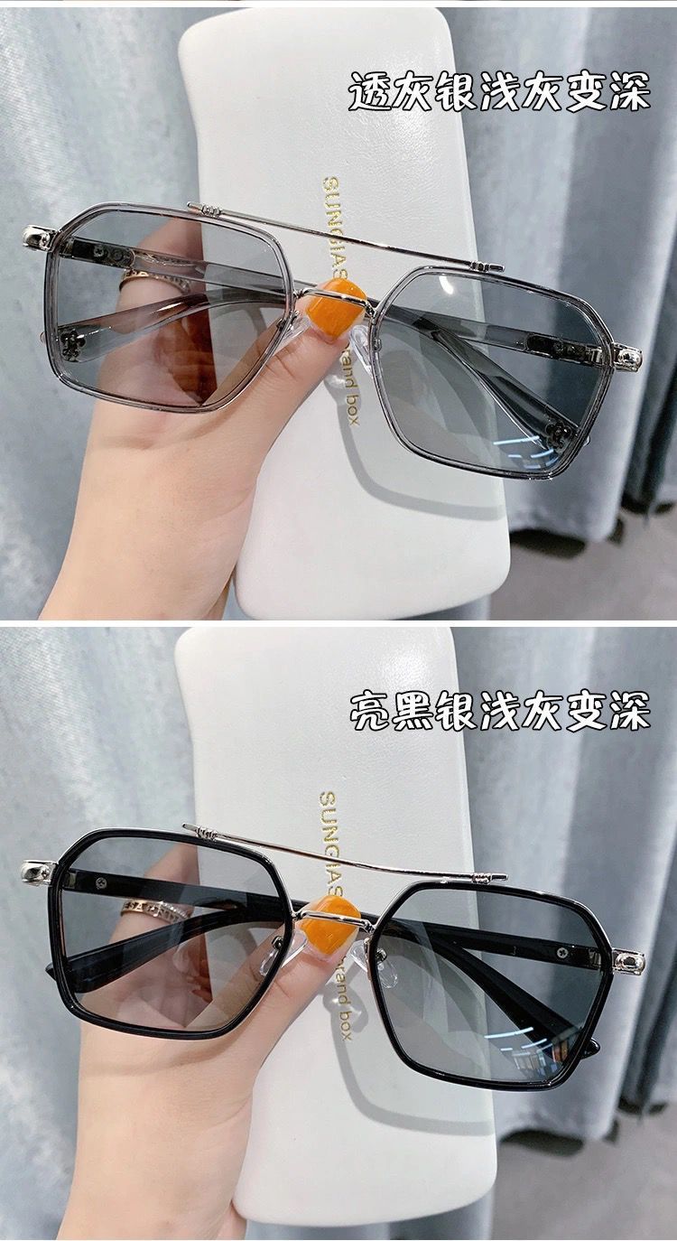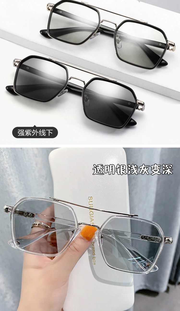 Zuo Sanfei's new Douyin Chen Weiting sunglasses for men, driving glasses, ultraviolet, Korean version, scumbag, handsome, fashionable, domineering sunglasses, transparent silver, light gray to dark gray, polarized color change, day and night, high cost performance, sunglasses + mirror bag + mirror cloth