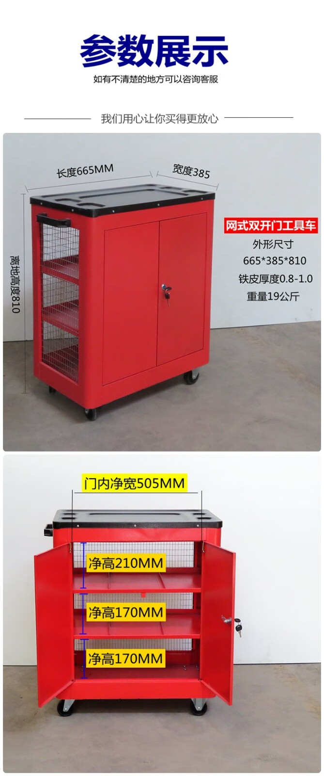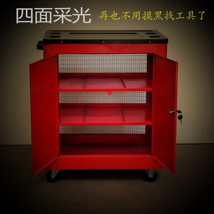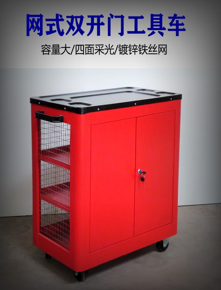 Jingxinda Auto Maintenance and Repair Workshop Repair Tool Cart Cart Mesh Double Door Side-by-side Door Tool Cart Tool Box Tool Cabinet Fully Enclosed Double Door Red
