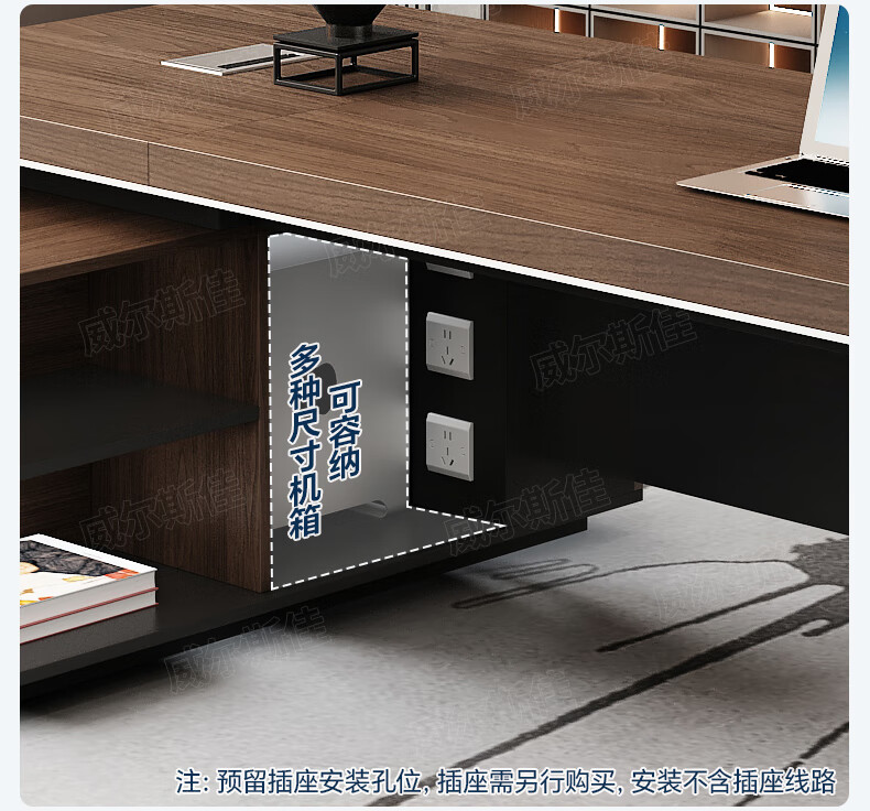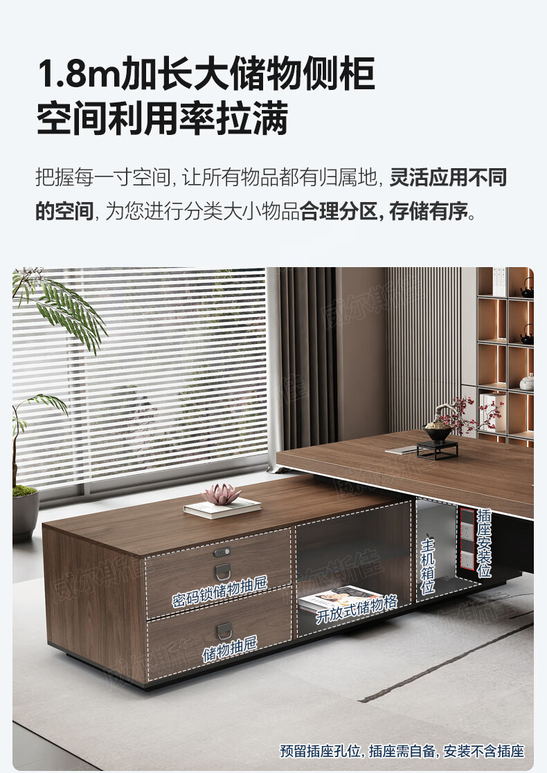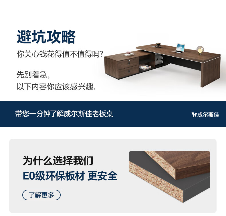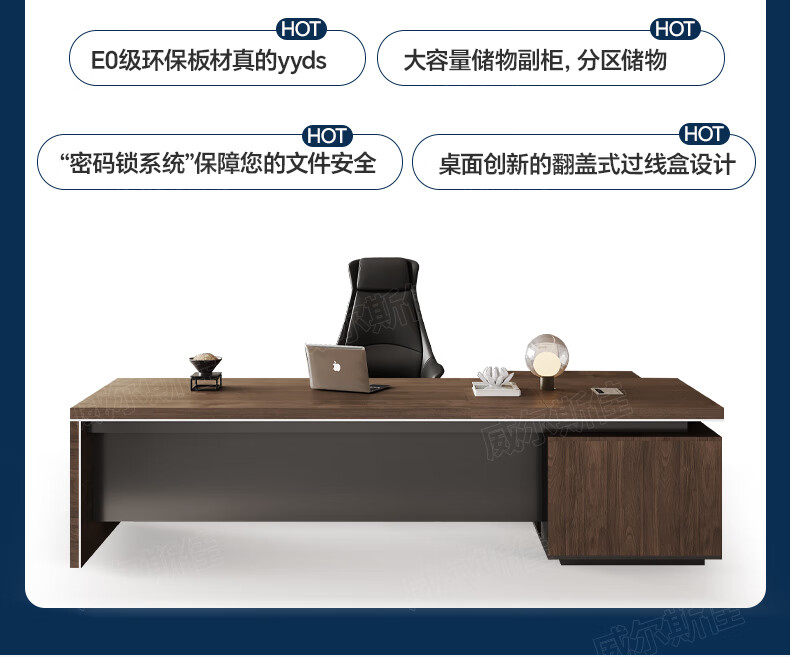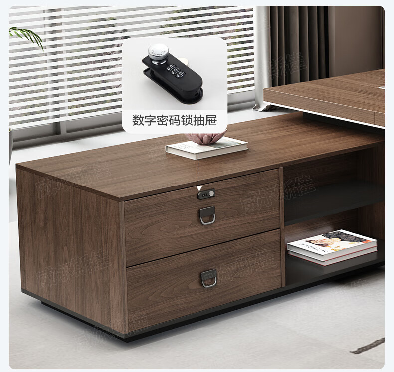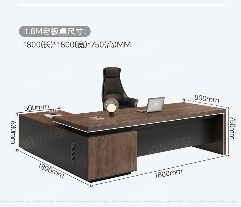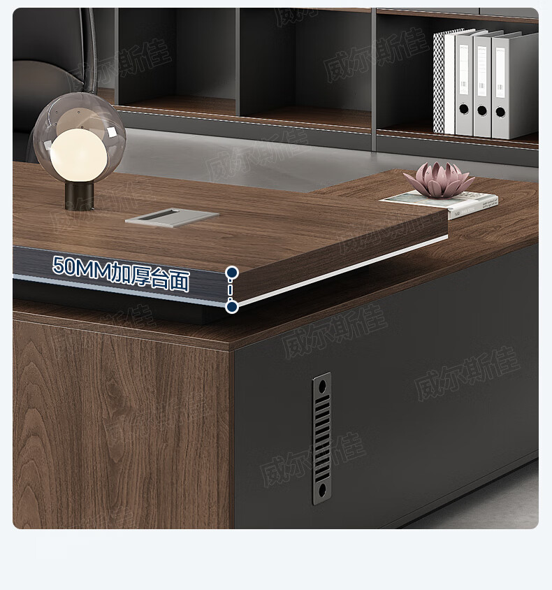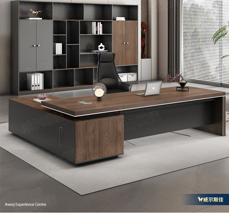Wellsijia boss desk office desk and chair combination modern simple leadership desk supervisor manager desk president desk work table 1.6 meters boss table + side cabinet E0 grade plate