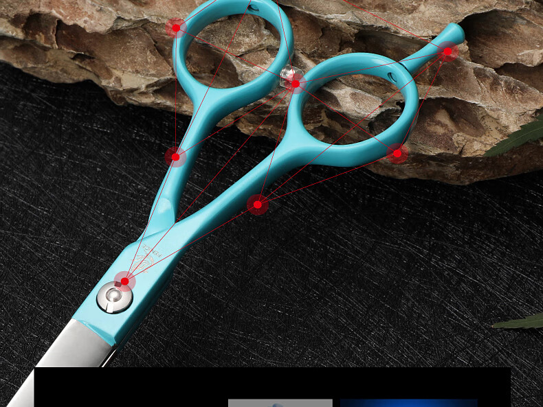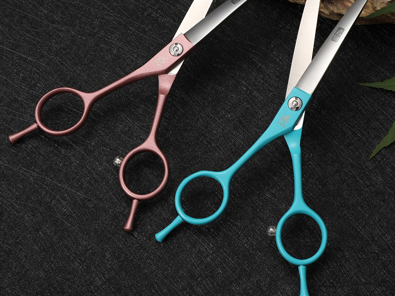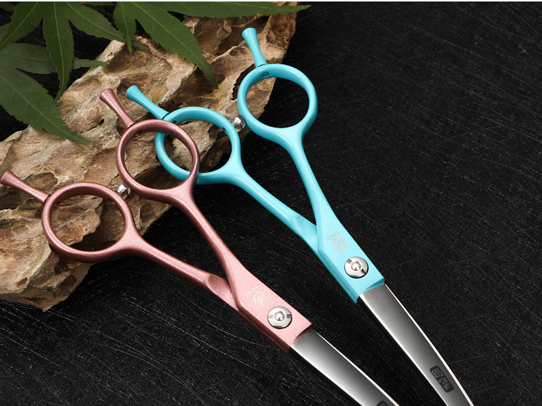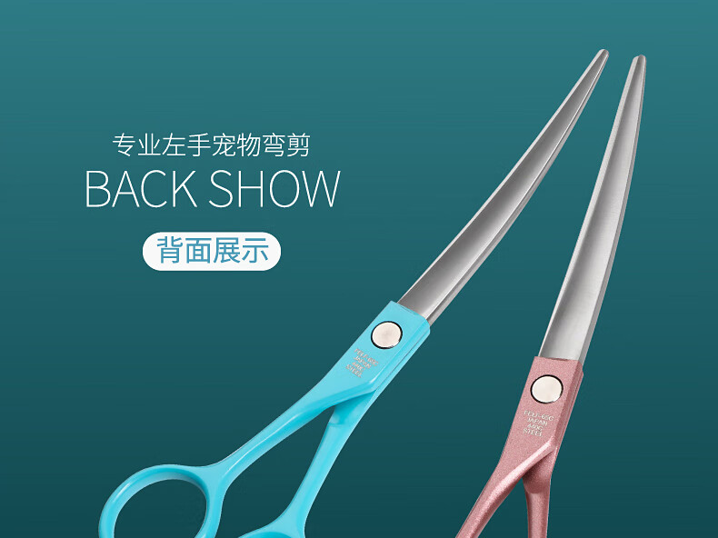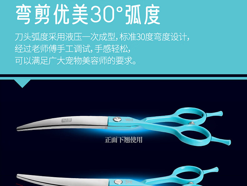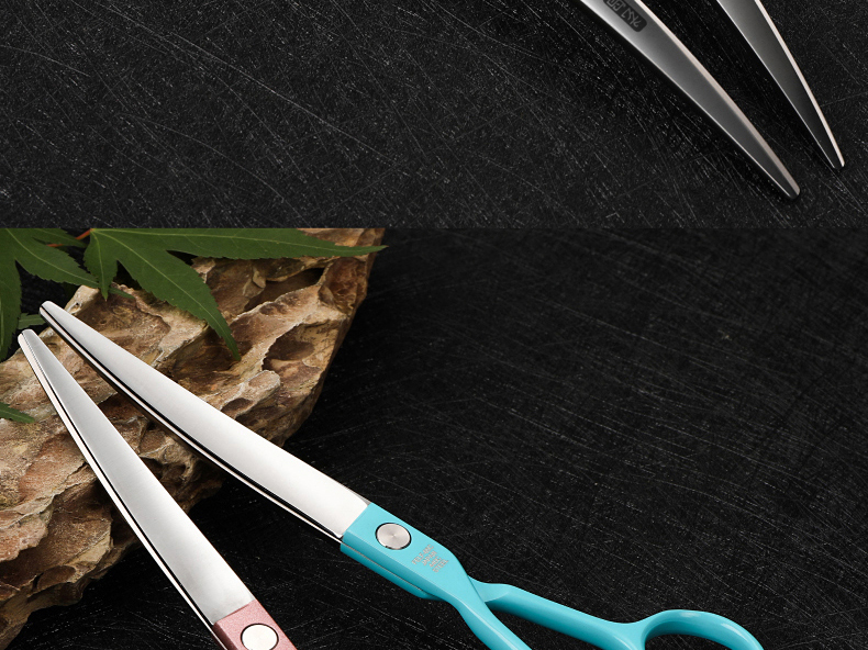 Xuanniao professional left-hand pet curved scissors 6.5-inch double-sided upturned beautician shop dog and cat hair trimming scissors, lake blue