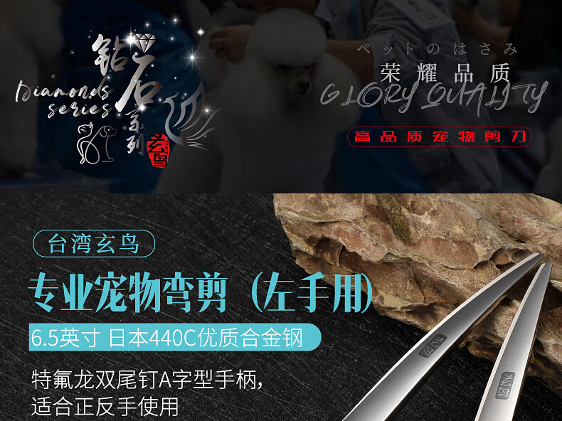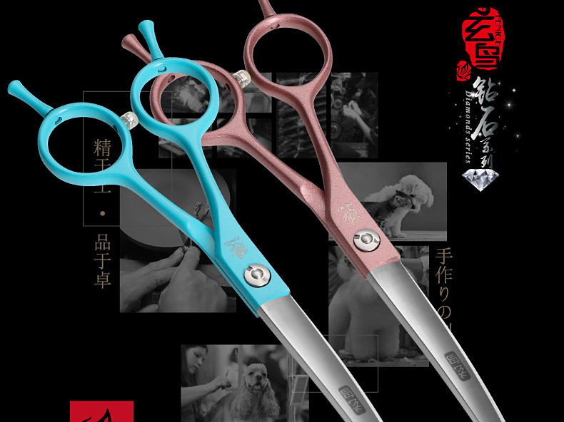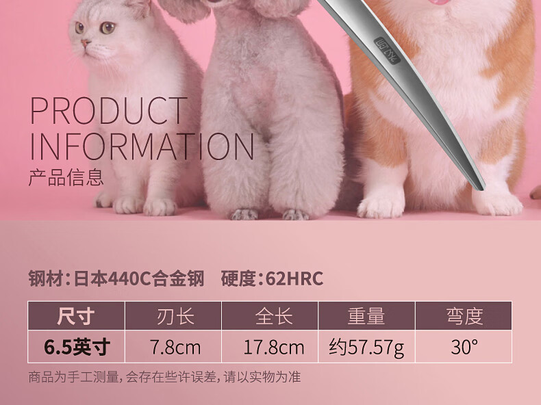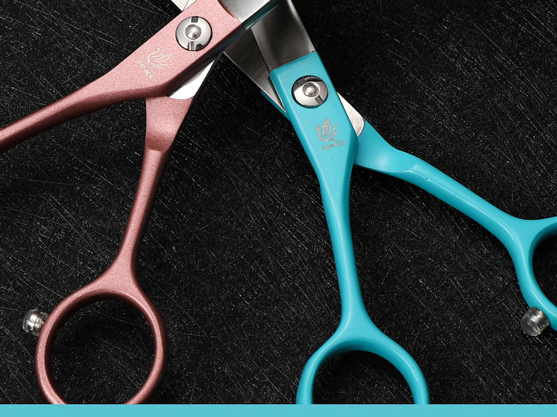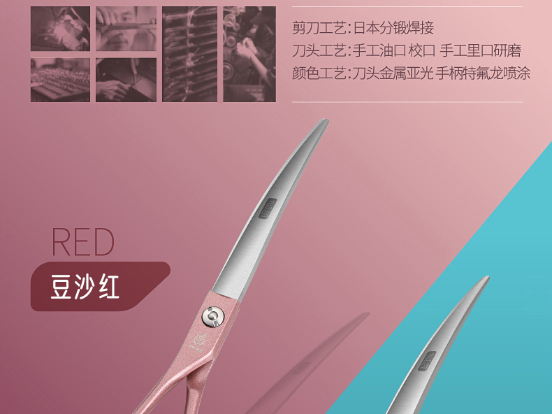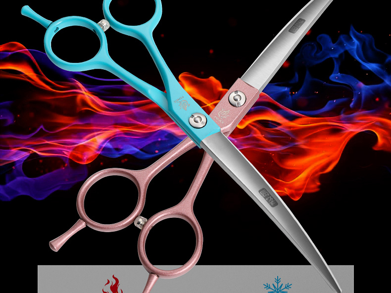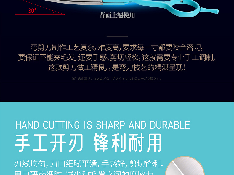 Xuanniao professional left-hand pet curved scissors 6.5-inch double-sided upturned beautician shop dog and cat hair trimming scissors, lake blue