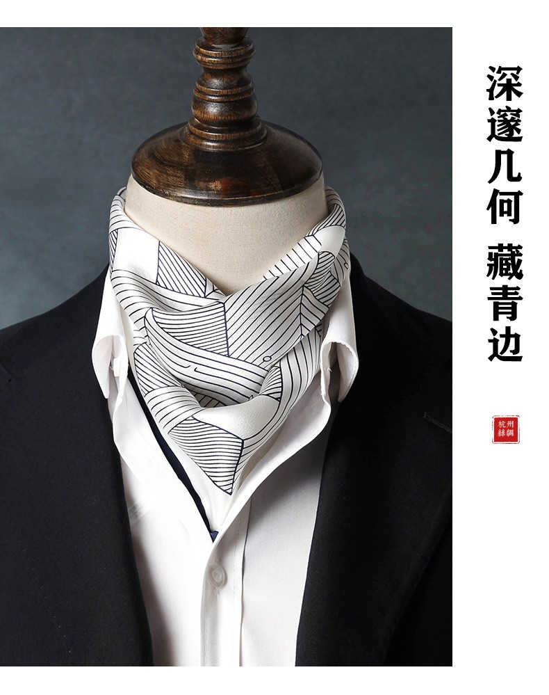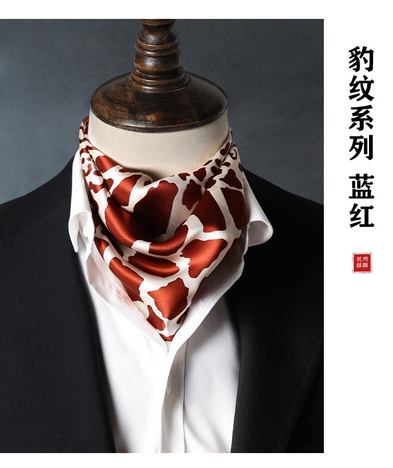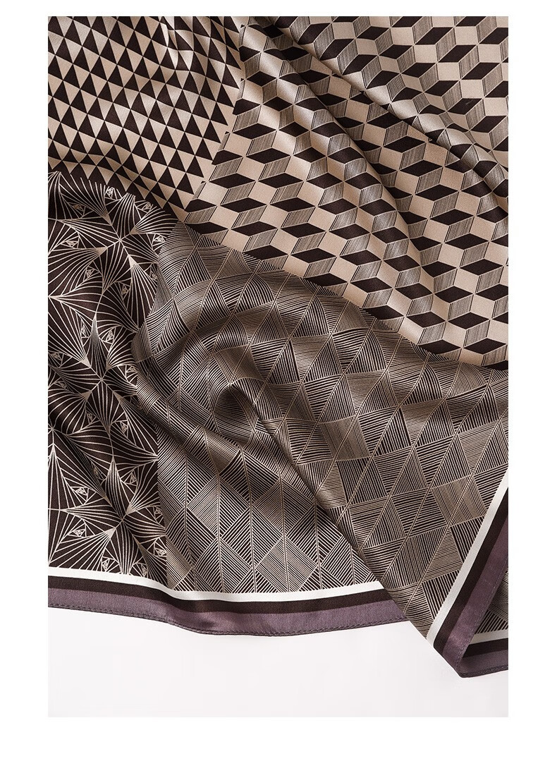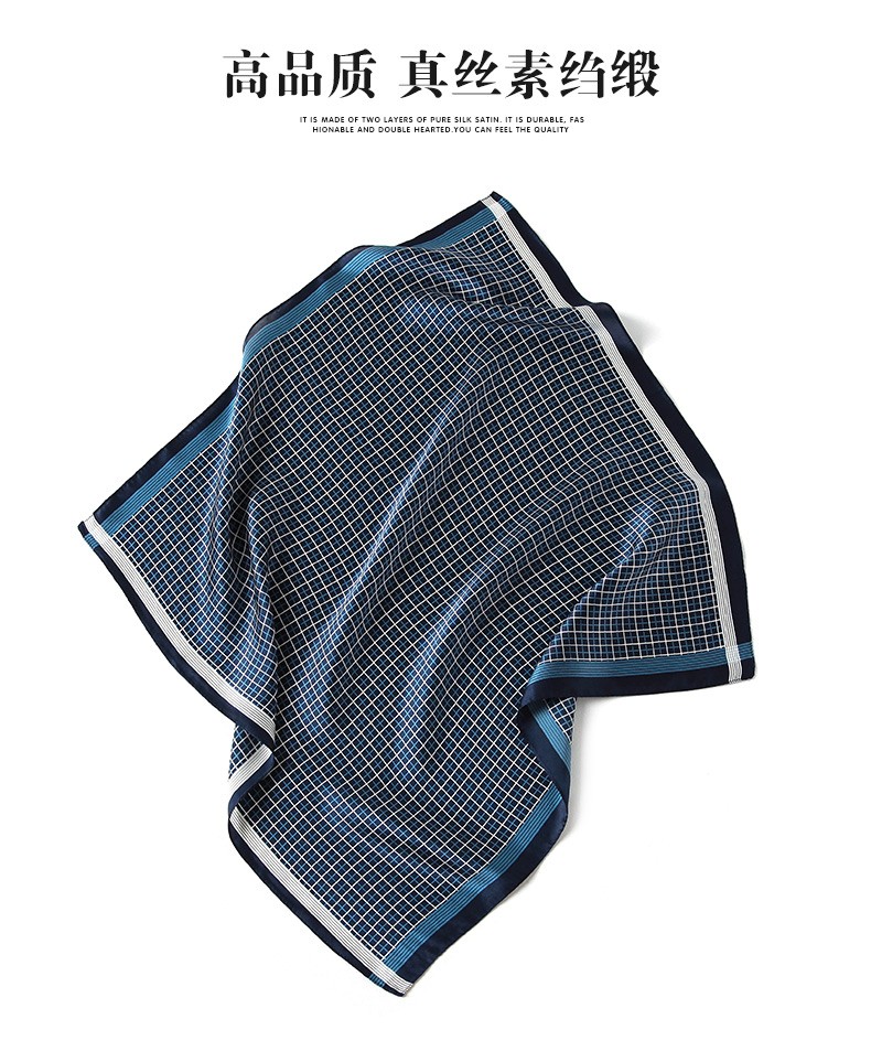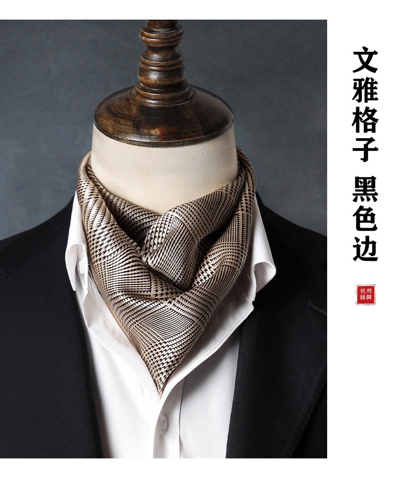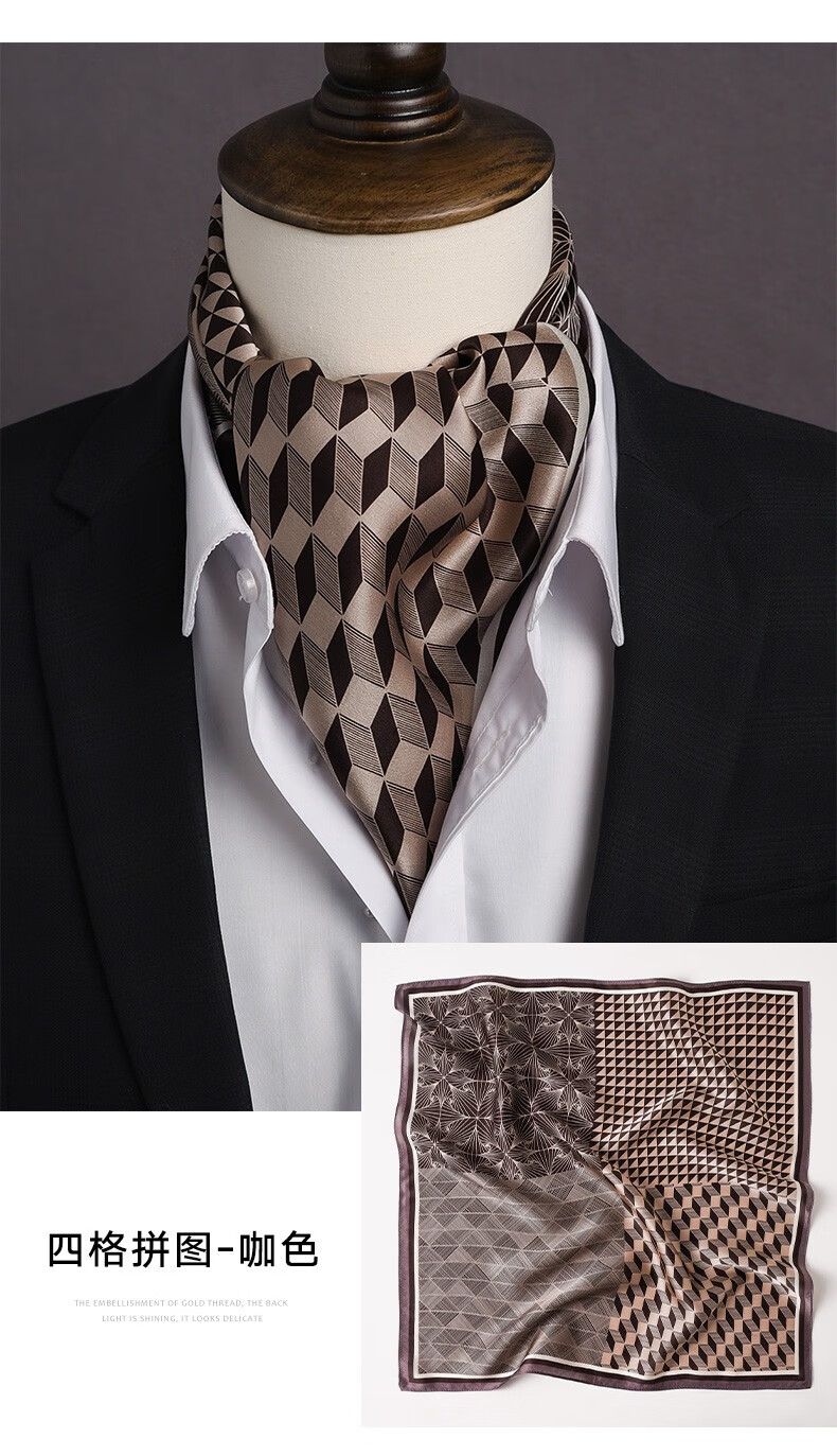 Hangsi Road Silk Scarf Men's Printed Silk Square Scarf Pocket Scarf Men's Suit Matching Scarf Men's Scarf Four-Grid Puzzle Brown Color