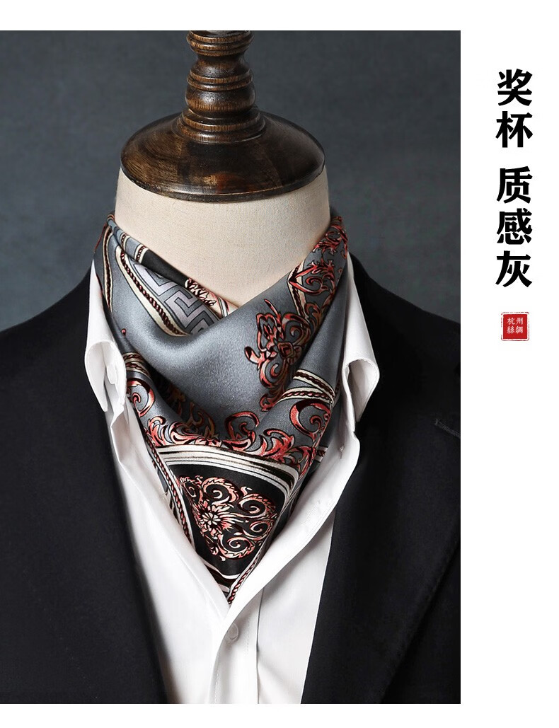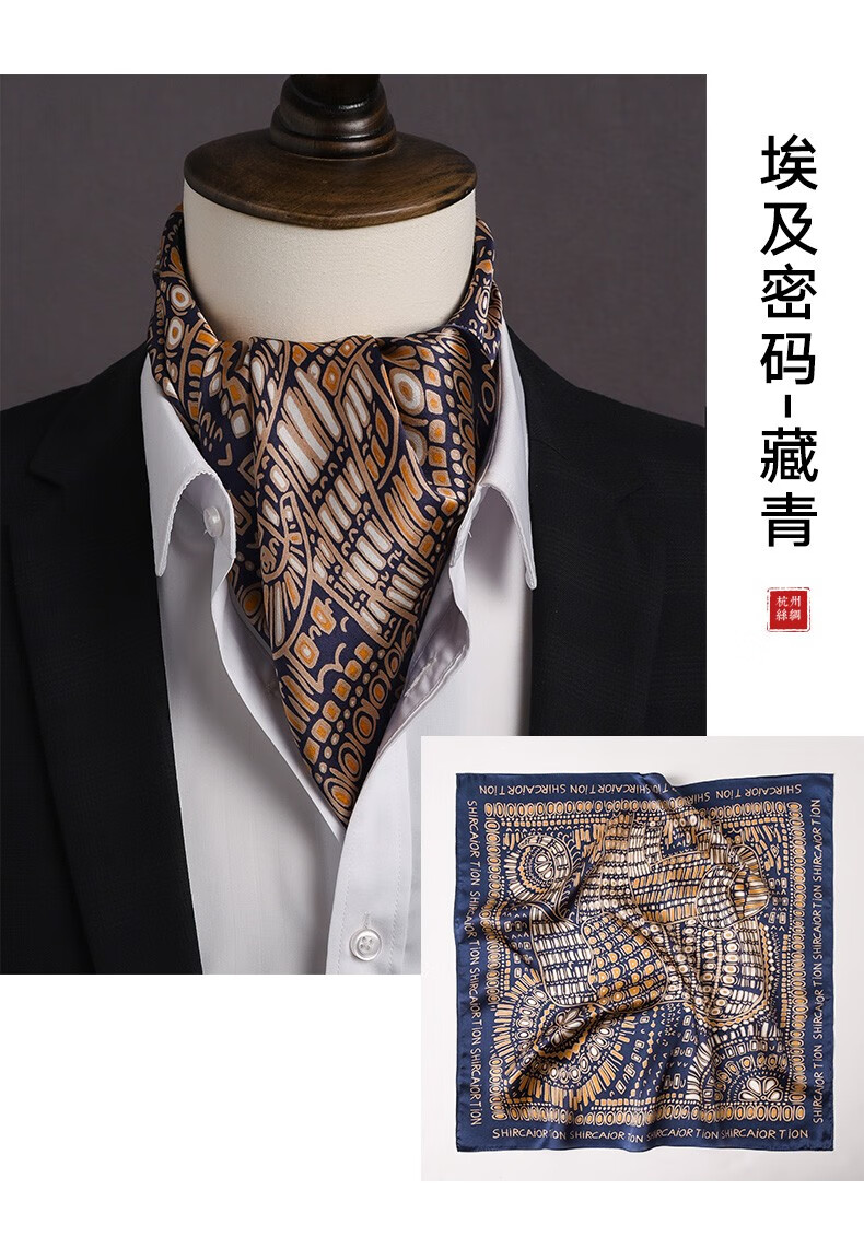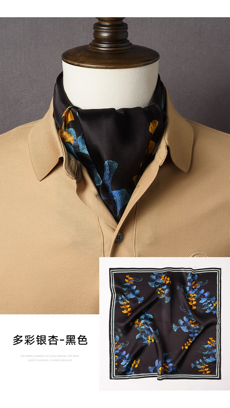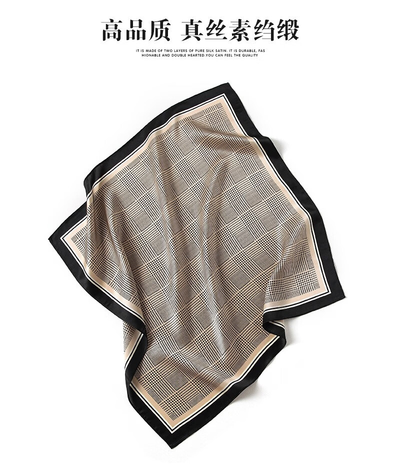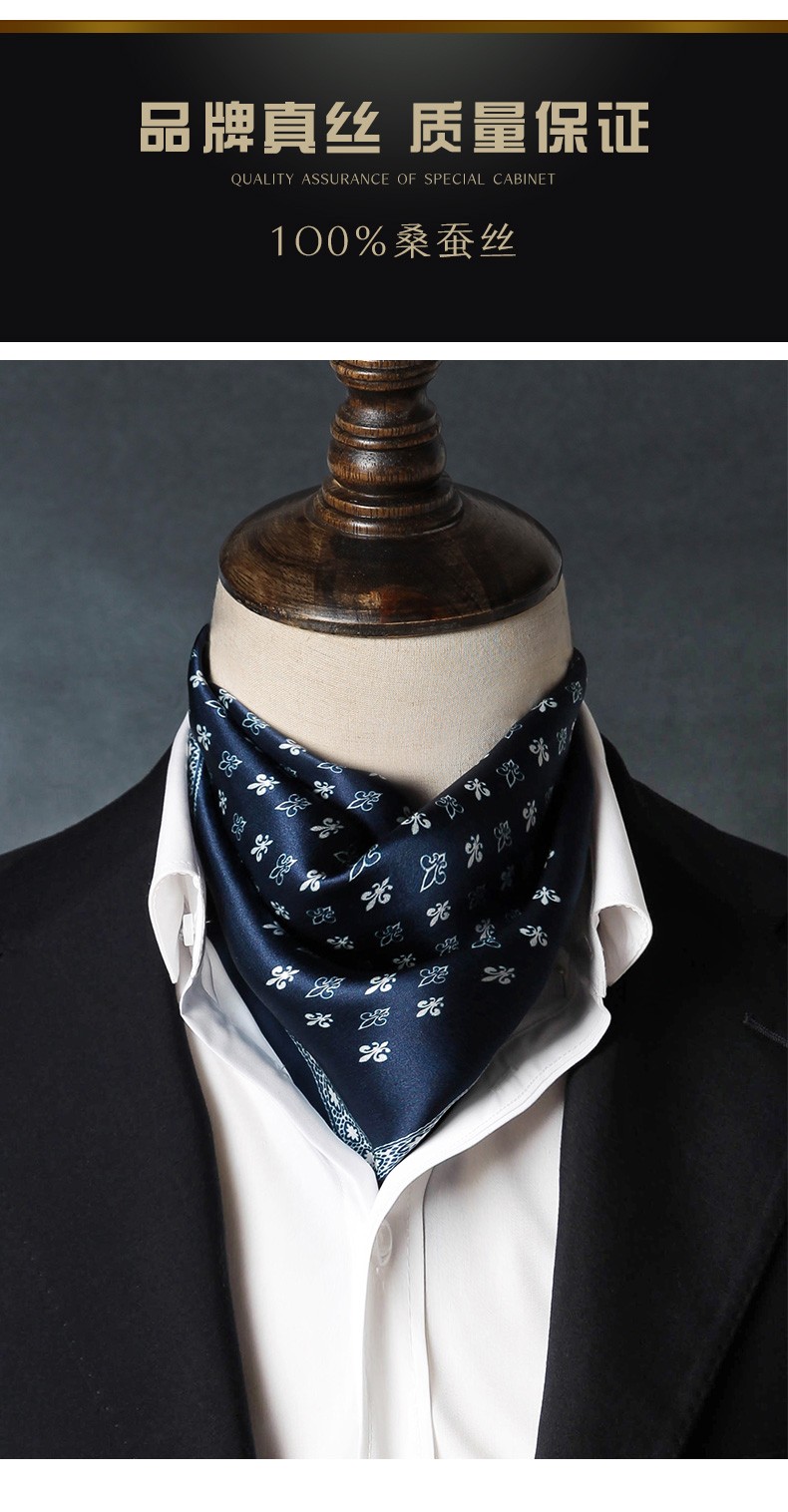 Hangsi Road Silk Scarf Men's Printed Silk Square Scarf Pocket Scarf Men's Suit Matching Scarf Men's Scarf Four-Grid Puzzle Brown Color
