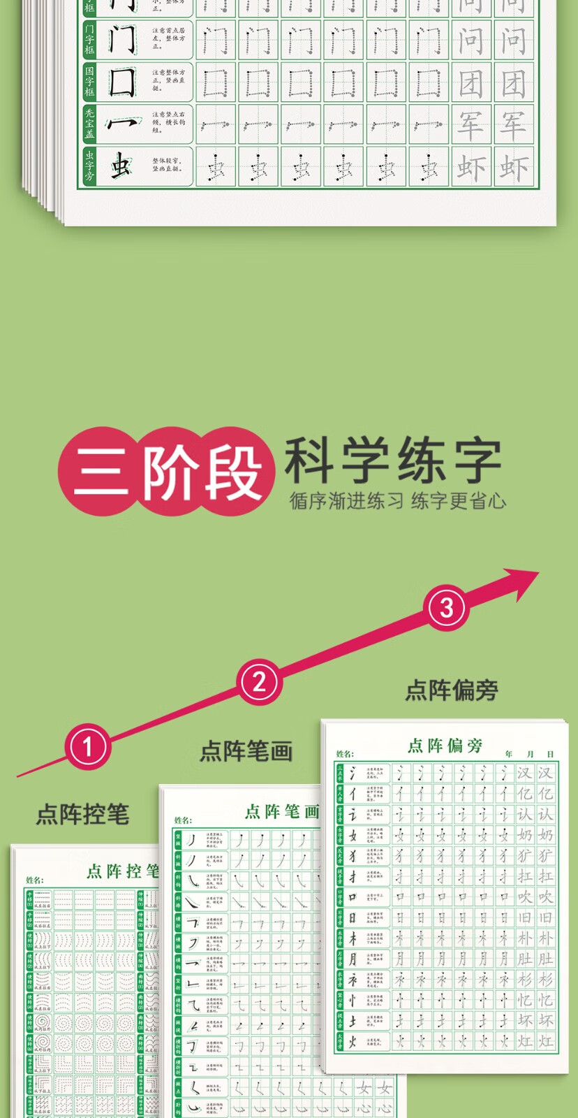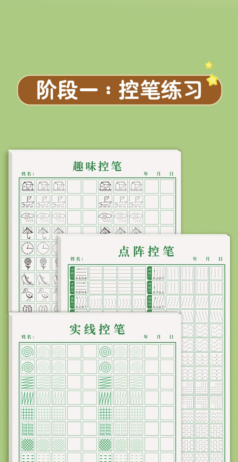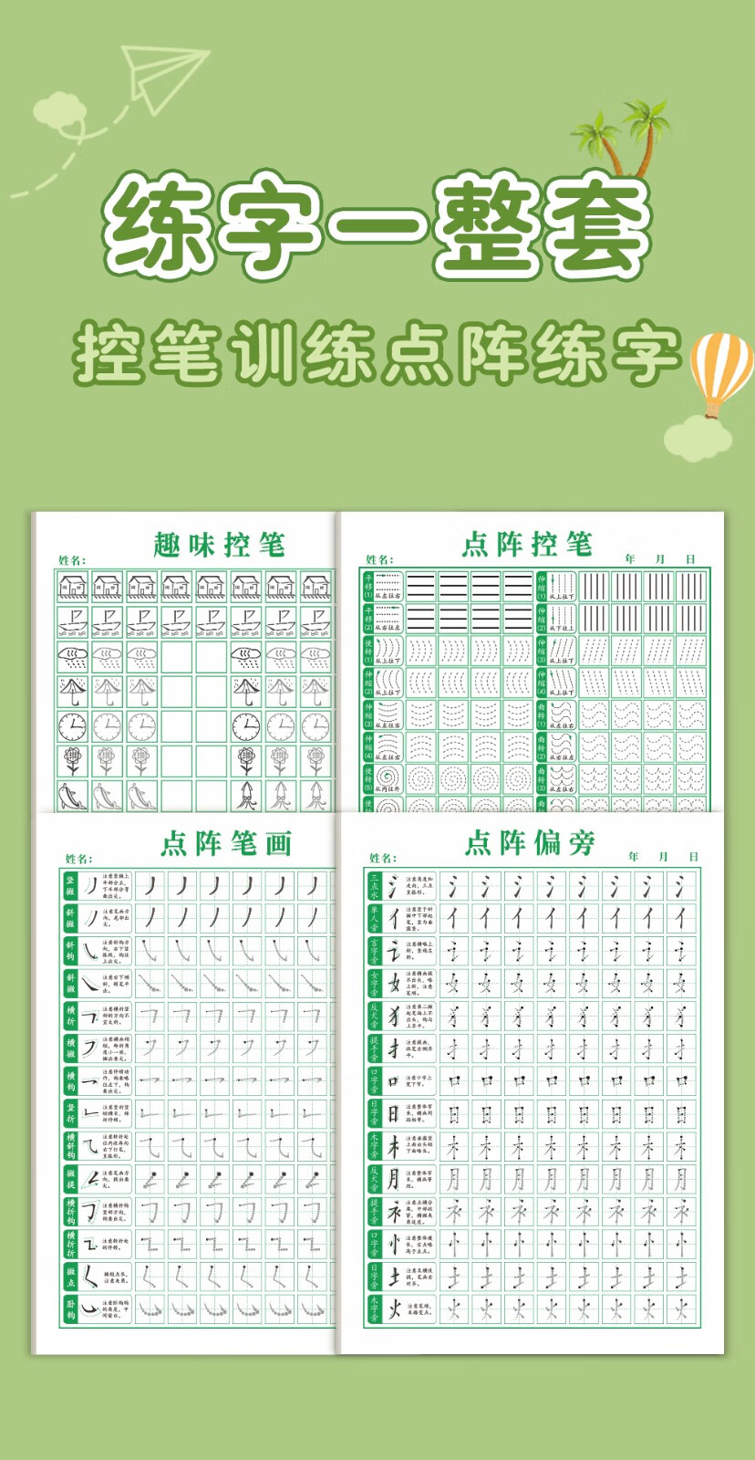 Han Zhuangyuan's pen control training copybook for young children to connect hard pen calligraphy paper for primary school students special pen and radical practice for children's kindergarten positive posture dot matrix fun pen control, a full set of 9 books, 3 books of strokes + 3 books of radicals + pen control + fun + solid lines