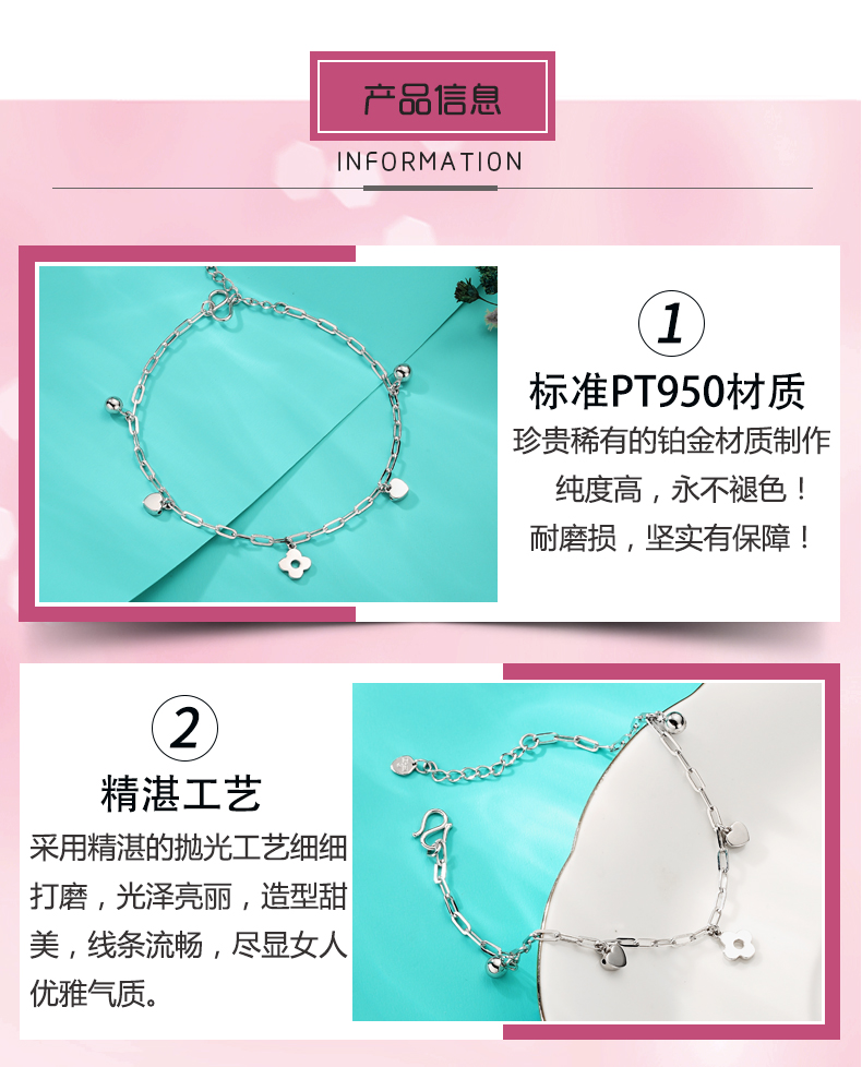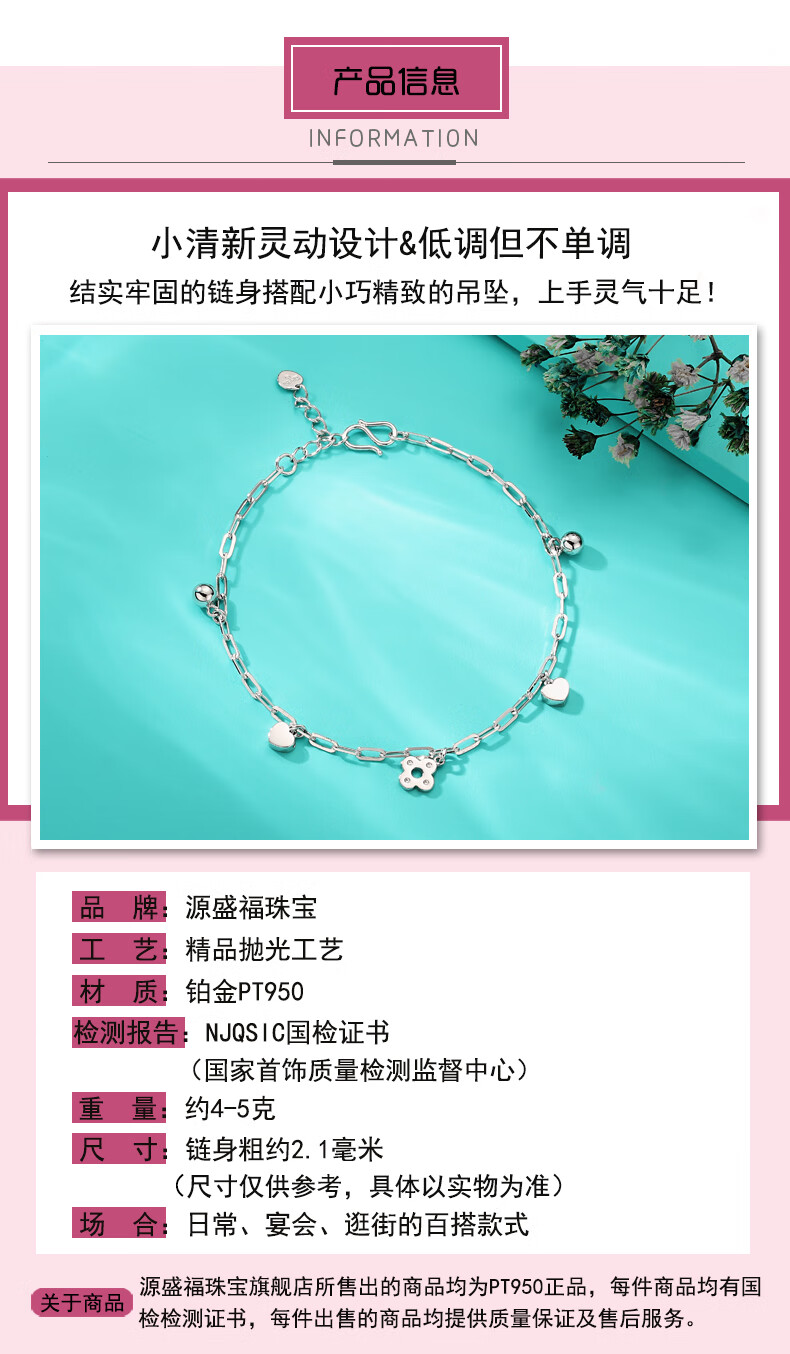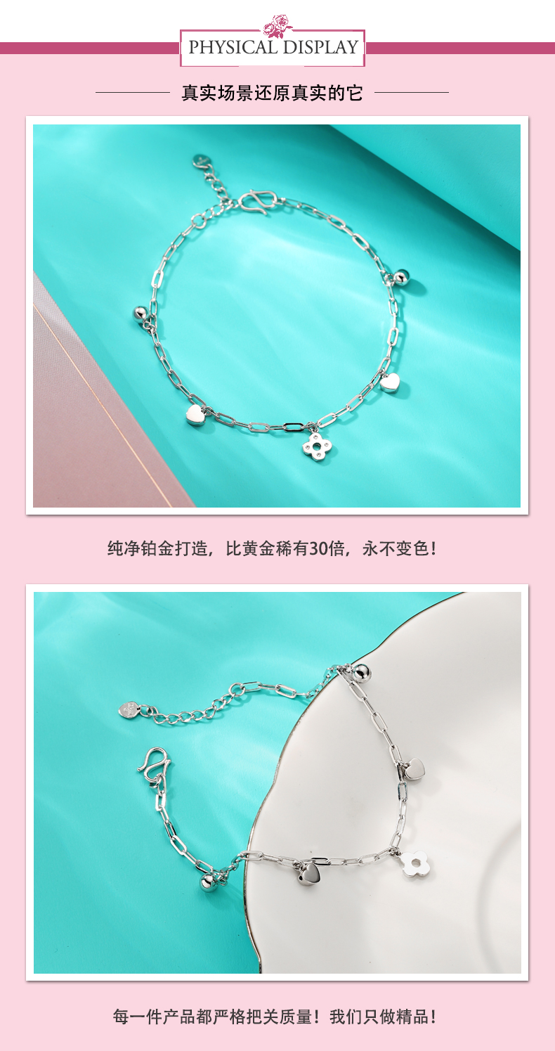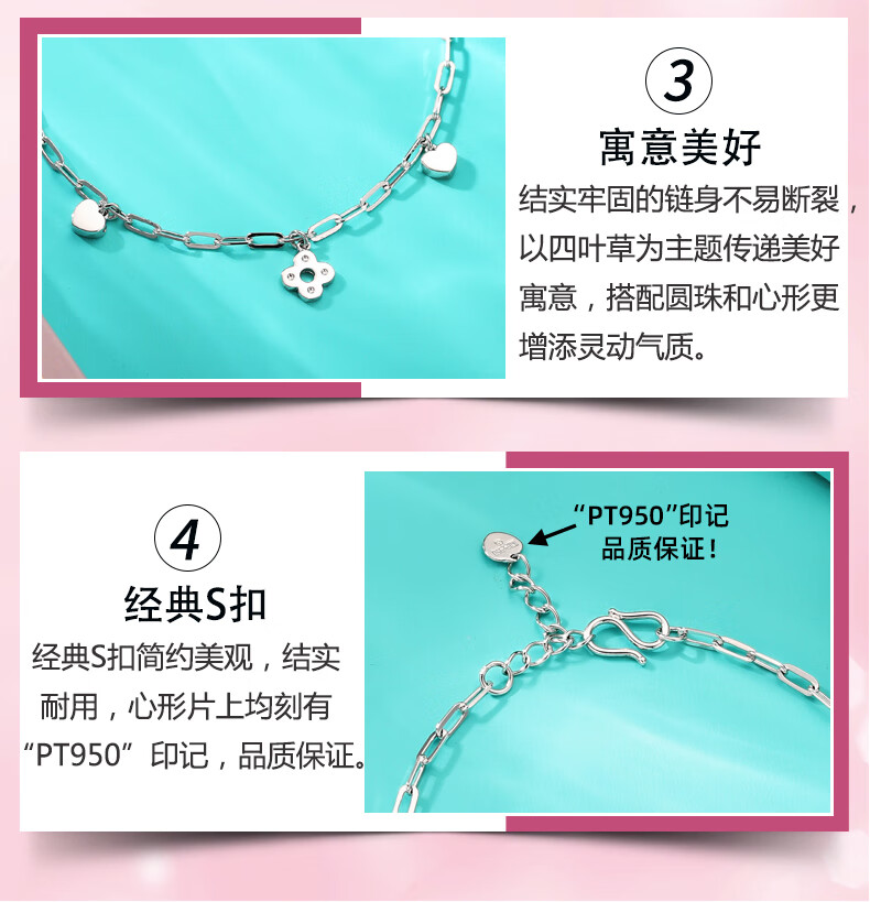 Yuan Shengfu's new PT950 fashionable fancy four-leaf clover platinum bracelet, women's simple platinum bracelet, 4.15 grams, adjustable length 14.5-16.5cm