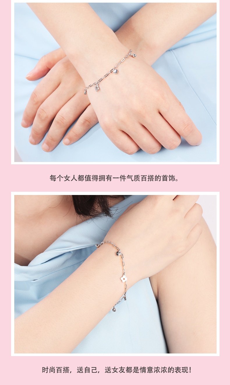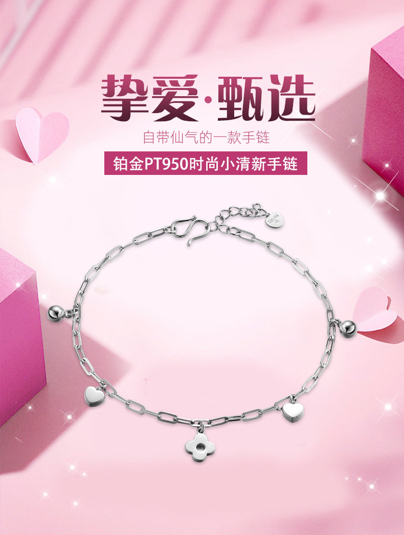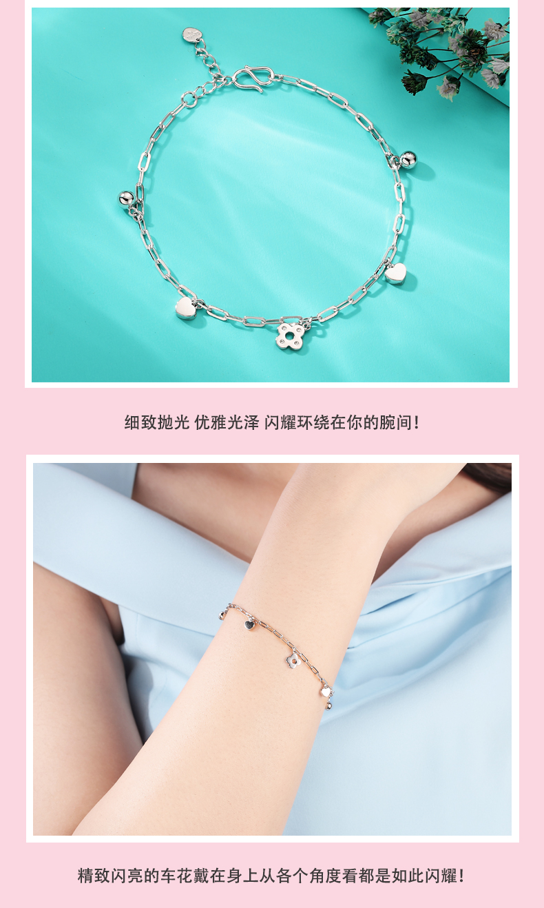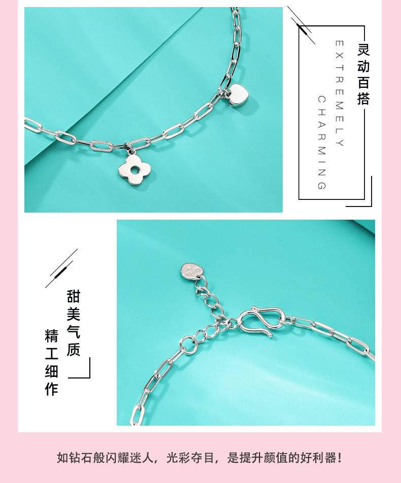 Yuan Shengfu's new PT950 fashionable fancy four-leaf clover platinum bracelet, women's simple platinum bracelet, 4.15 grams, adjustable length 14.5-16.5cm