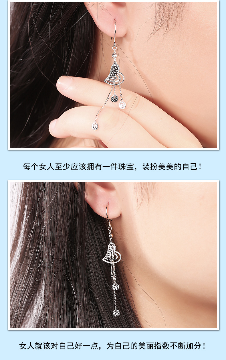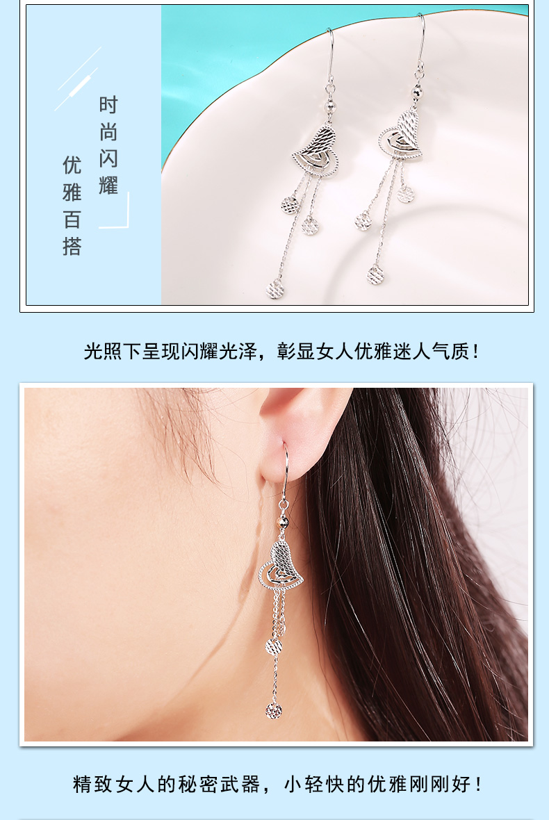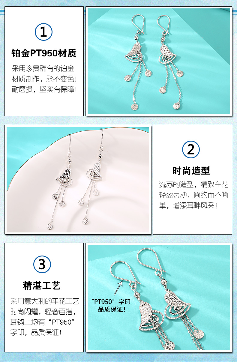 Yuanshengfu new PT950 fashionable heart-shaped tassel platinum ear hooks platinum earrings 4.13 g