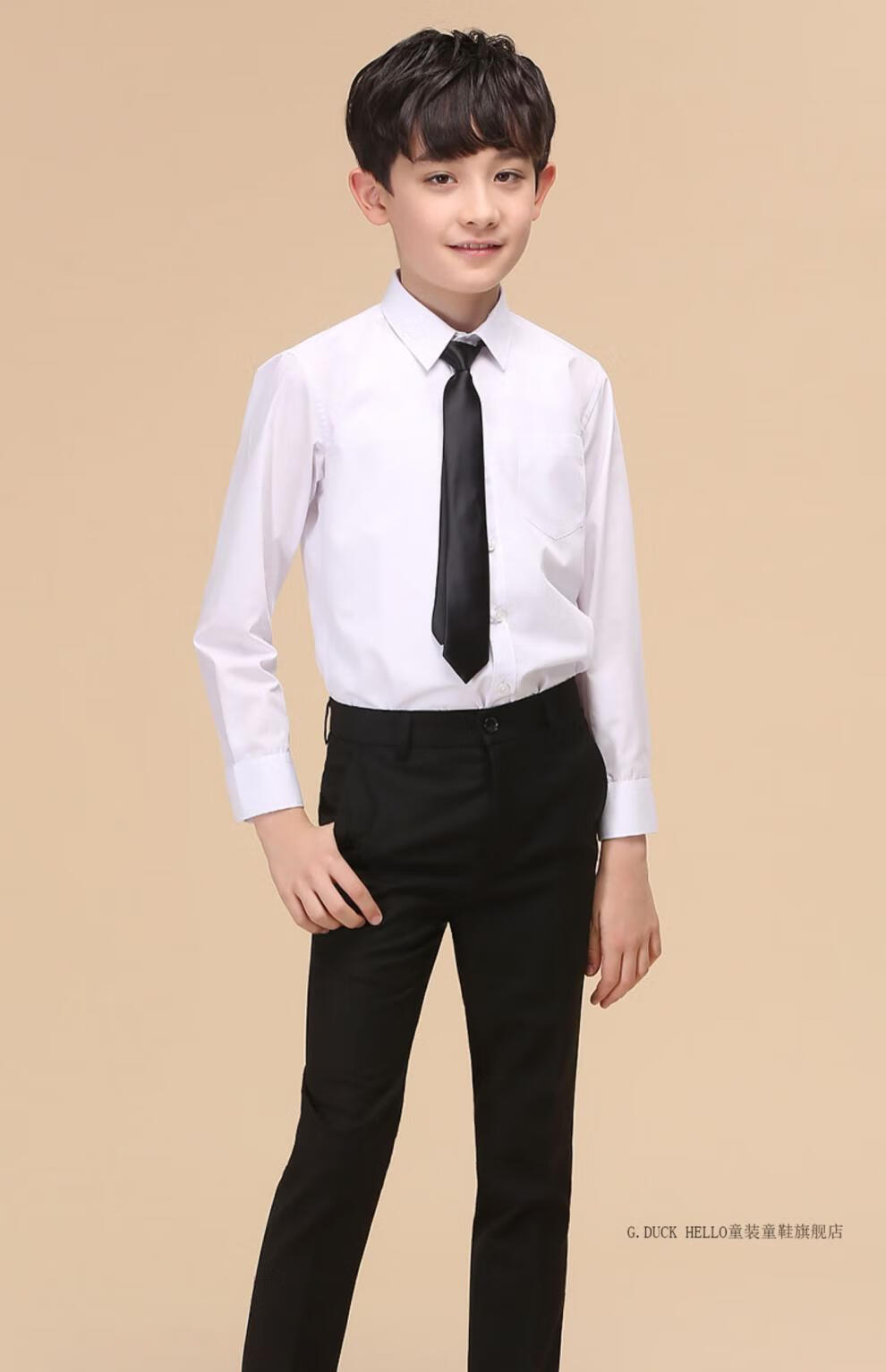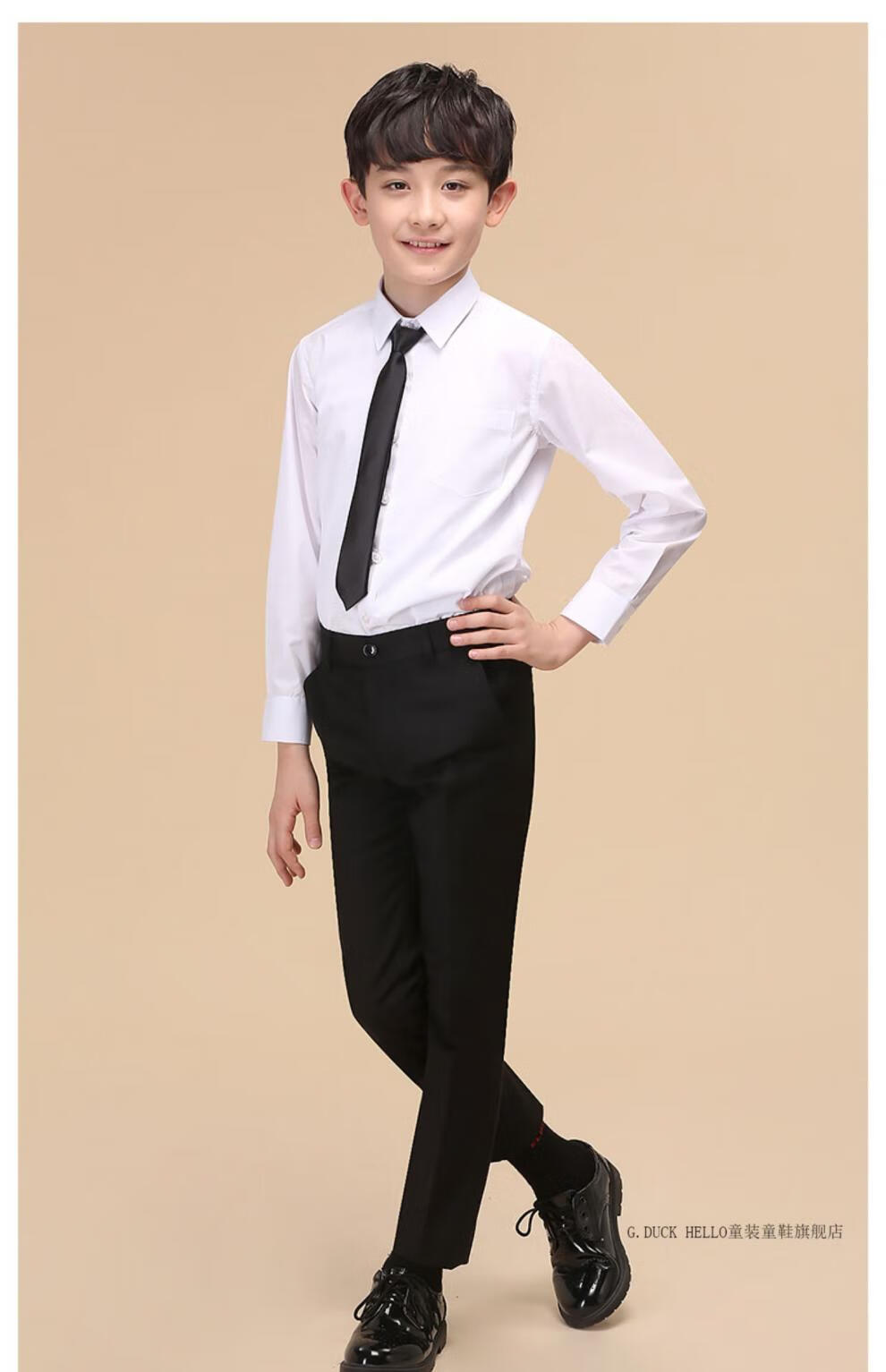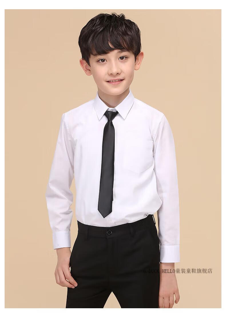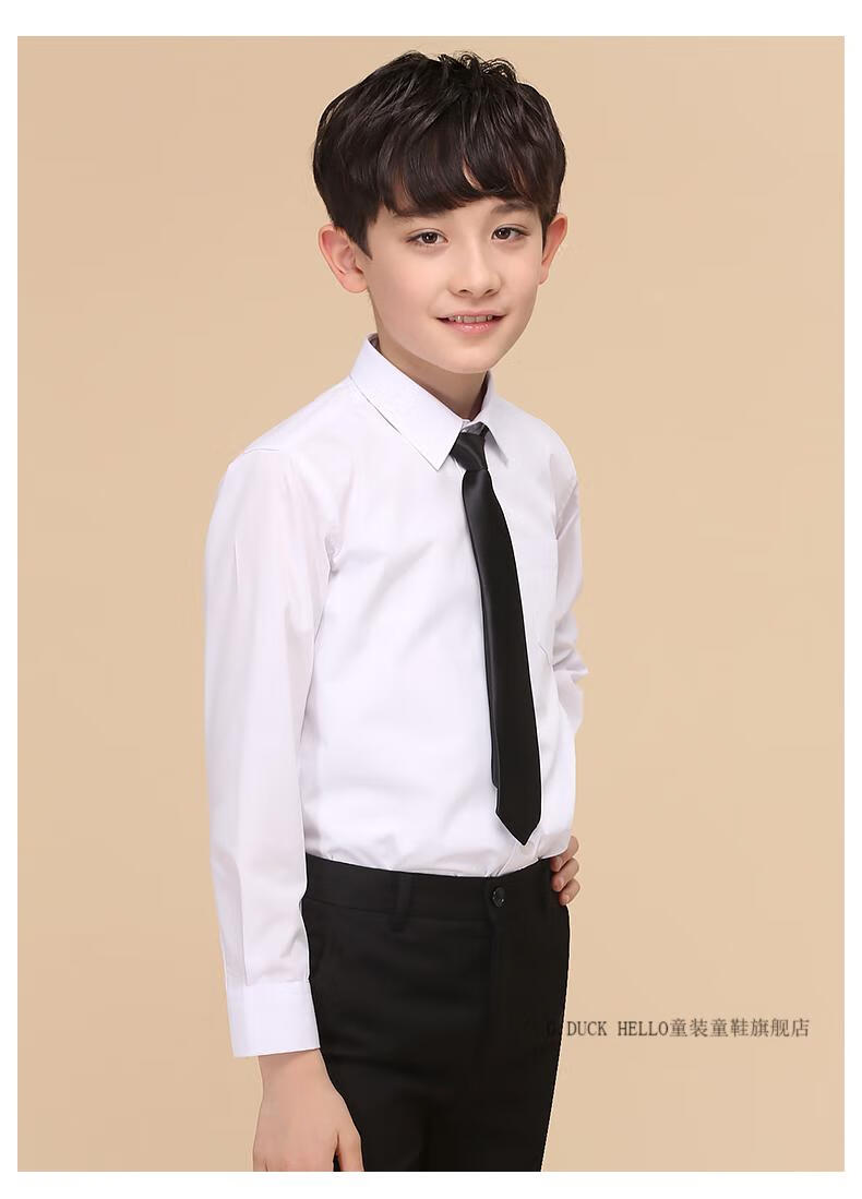 G.duck boys' shirt long-sleeved pure cotton white shirt autumn 2026 new medium and large boys' school uniform no-iron bottoming shirt gift single black shirt + tie 170 cm recommended height around 165cm