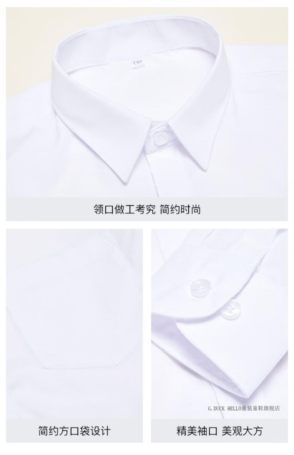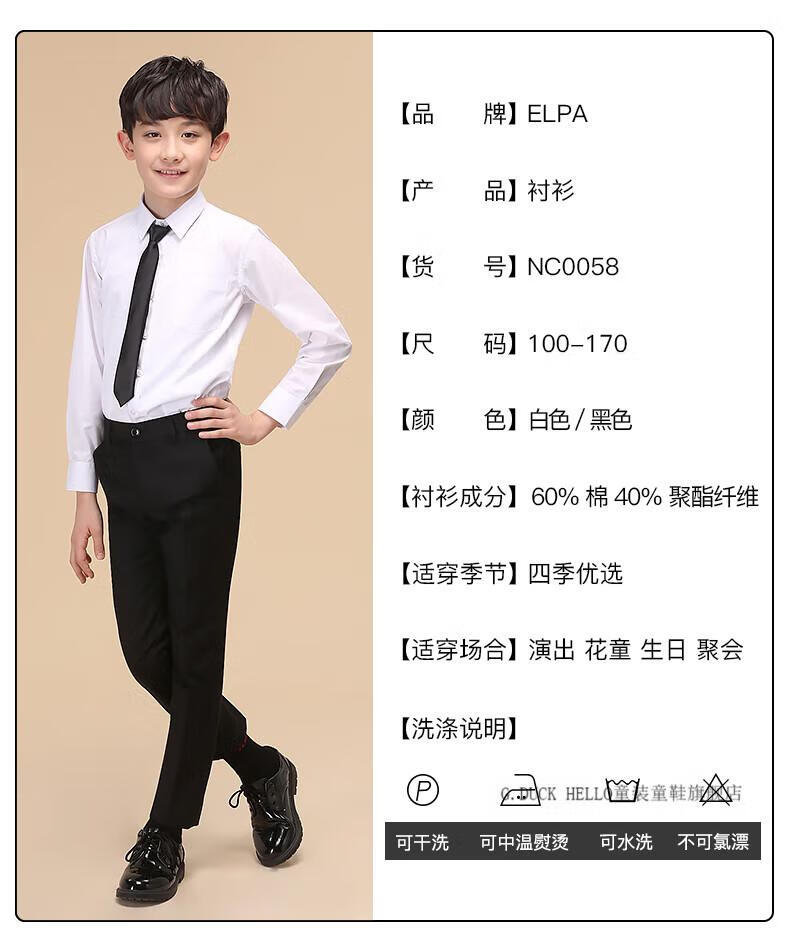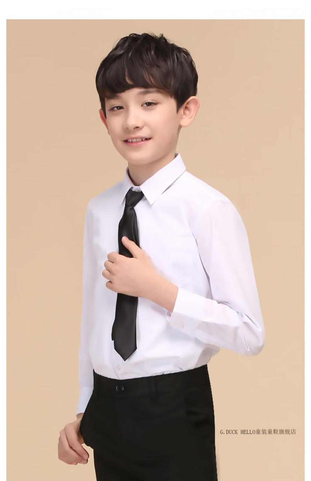 G.duck boys' shirt long-sleeved pure cotton white shirt autumn 2026 new medium and large boys' school uniform no-iron bottoming shirt gift single black shirt + tie 170 cm recommended height around 165cm