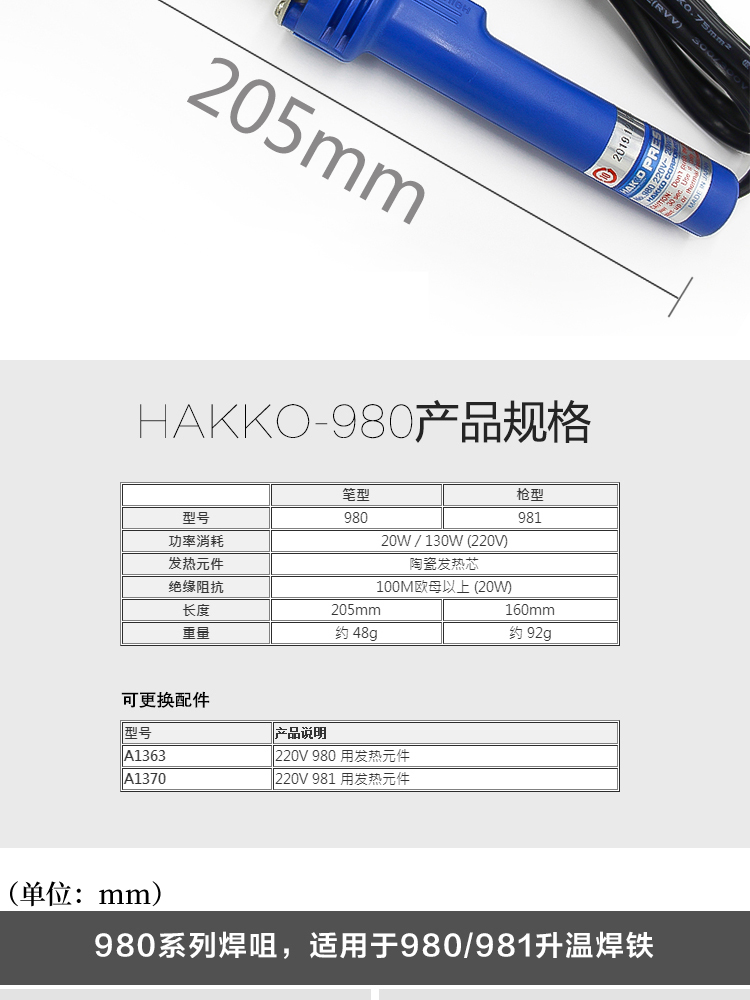 HAKKO Japanese white light 980/981 pen type electric soldering iron dual power constant temperature welding gun electric welding pen soldering iron electronic maintenance 980 dual power electric soldering iron