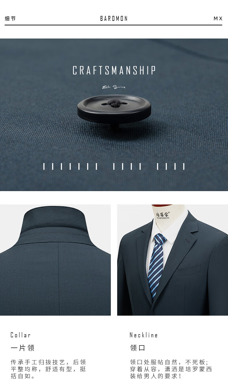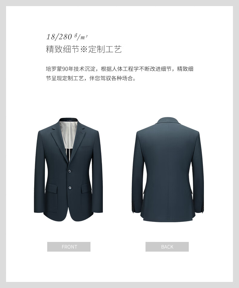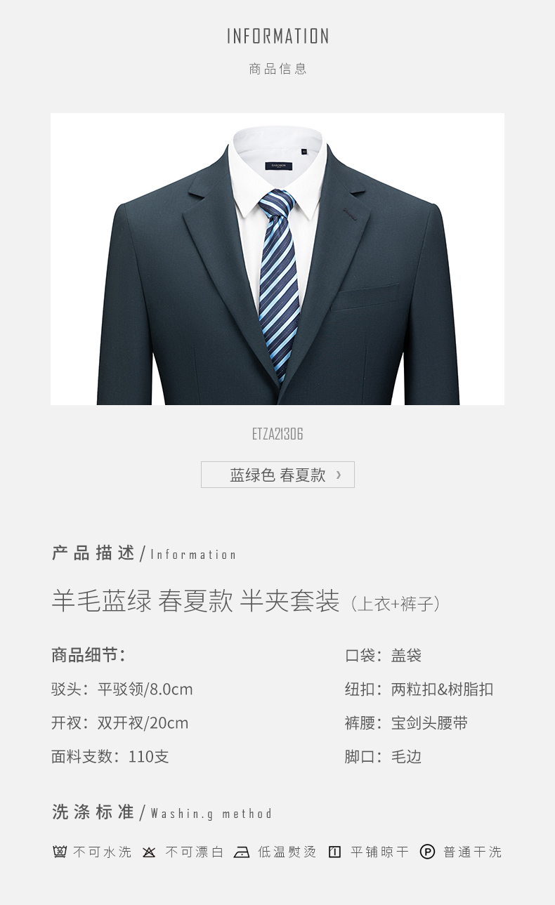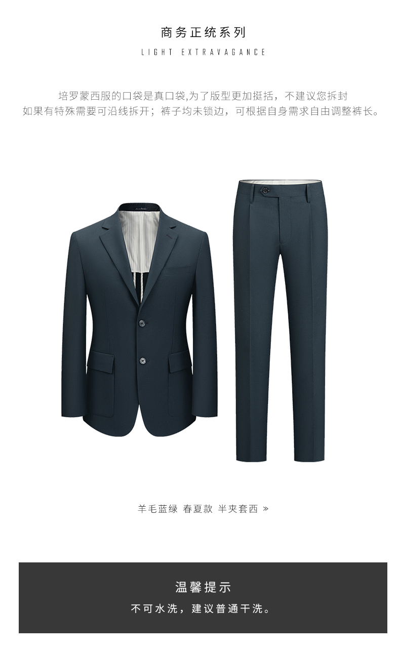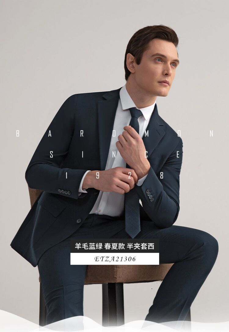 BAROMON 68.5% wool-machine washable suit, men's business suit, complete men's formal wedding suit, blue-green 170B, please note the size of the trousers