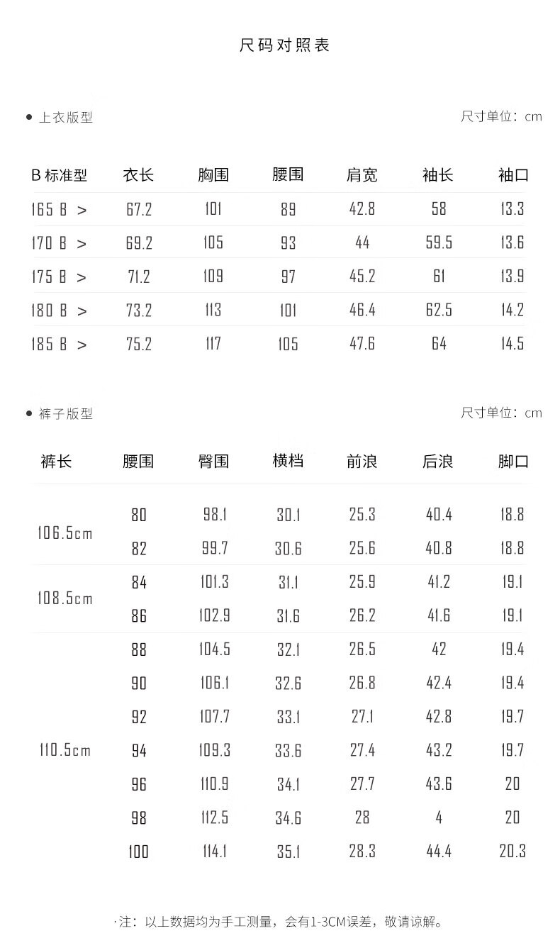 China (cm) 160-165/84-86 165-170 / 88-90 167-172 / 92-96 168-173 / 98-102 170-176 / 106-110