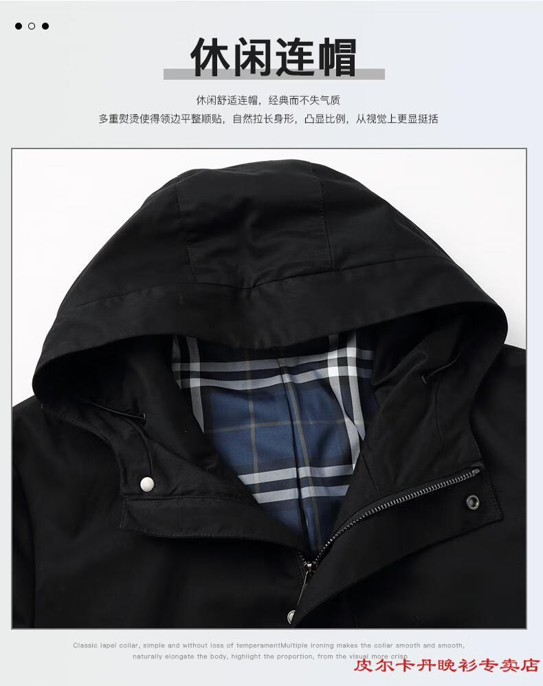 Мужская ветровка Pierre Cardin средней длины 2026, новинка весны и осени, модная красивая весенне-осенняя куртка, свободная британская куртка большого размера, черная 2XL 185