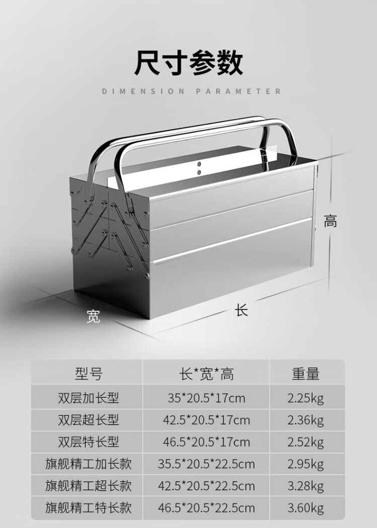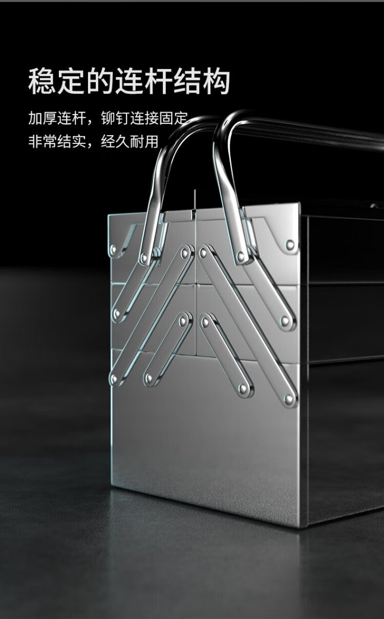 Delixi stainless steel tool box large multi-functional industrial-grade repair home portable electrician hardware storage box three-layer extra-long stainless steel folding type