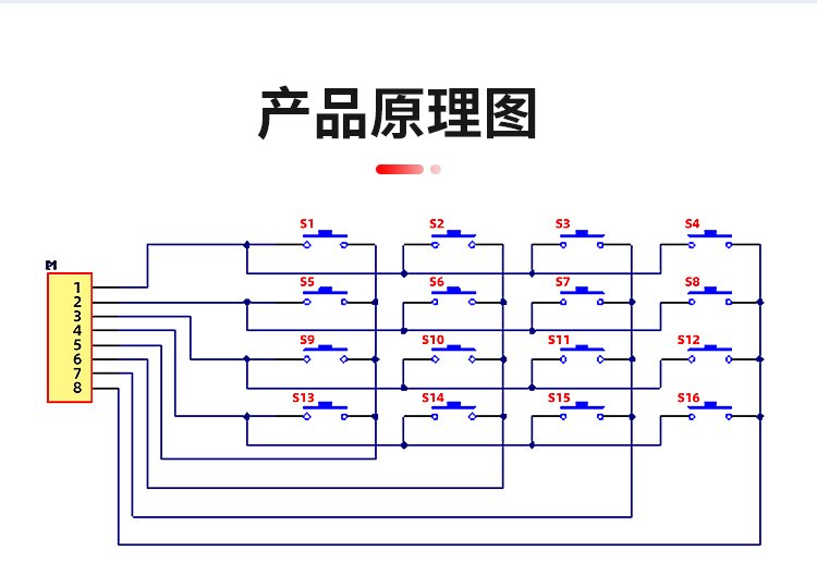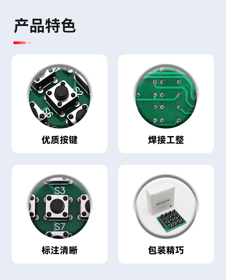 Throwing stones micro switch 4x4 matrix keyboard module 16-button development board/microcontroller external keyboard 2.54mm pin straight plug 4*4 matrix keyboard one