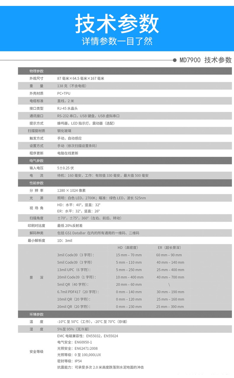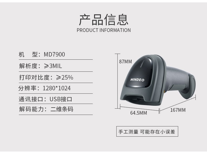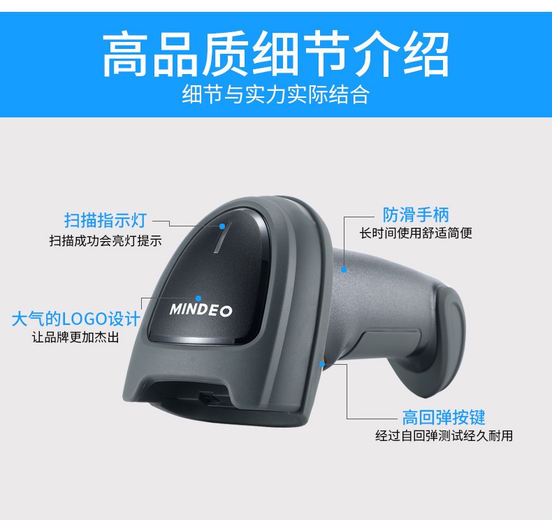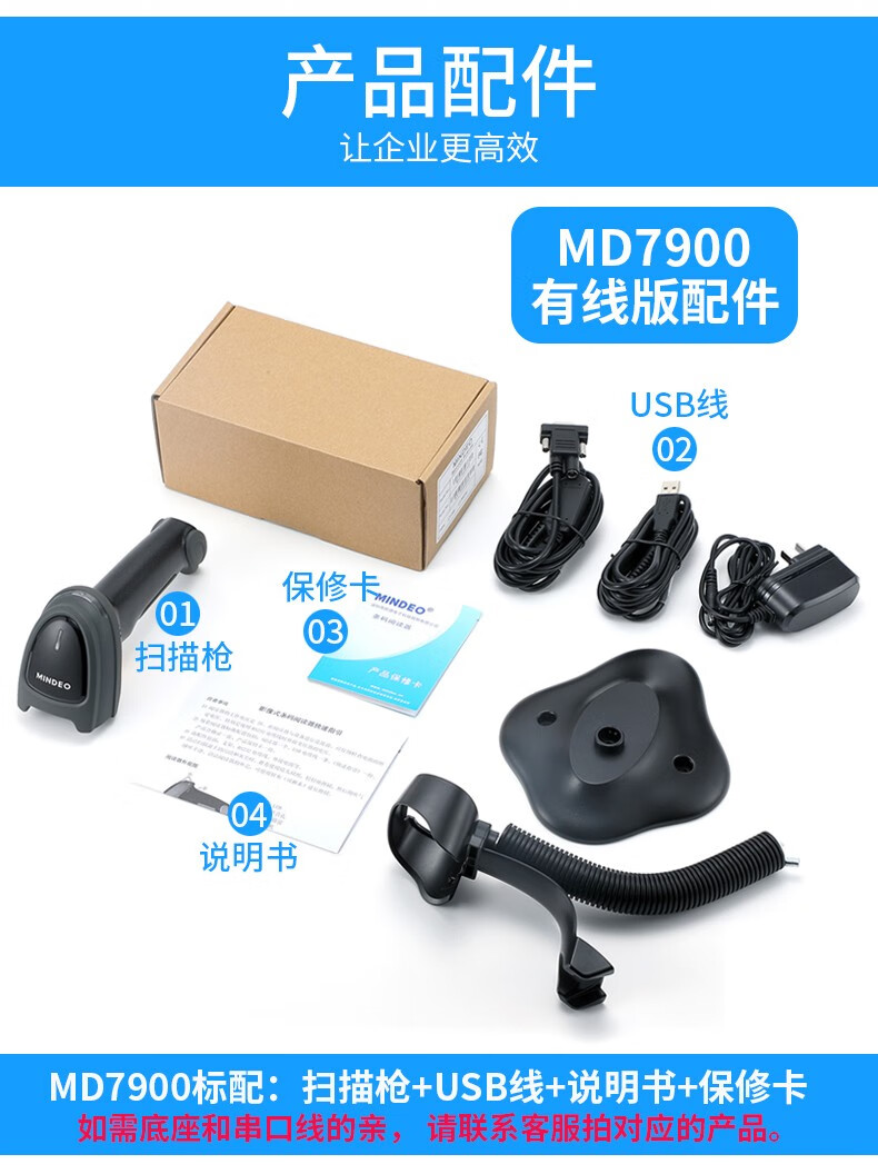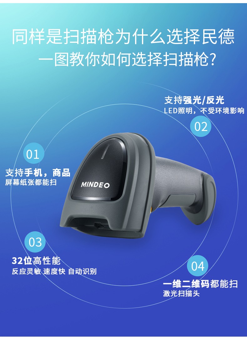 MINDEO 2D Scanner Industrial DPM Metal Parts Laser Engraving Code Plastic Parts Inkjet Printing CPU Electronic Components Mobile Phone Accessories MD7908 Black MD7908HD+USB Interface