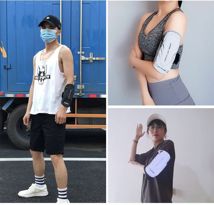 Arm mobile phone bag, running mobile phone arm bag, men's and women's armband, sports fitness arm bag, mobile phone bag, universal wrist arm sleeve arm bag, reflective black