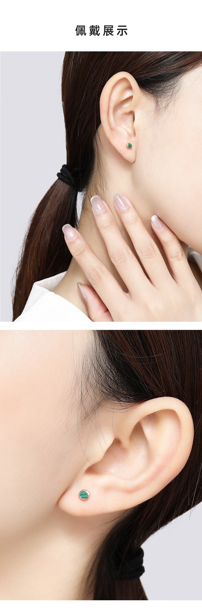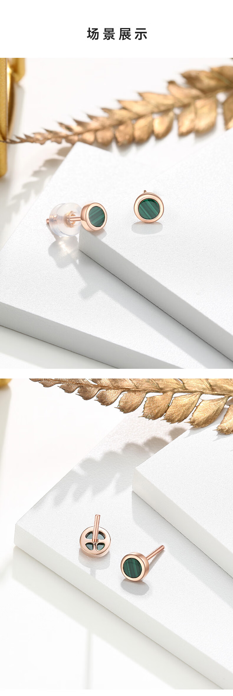 Trendy Acer Dot Malachite 18K Gold Stud Earrings for Women Gold Earrings for Girlfriend Birthday Gift TK Single Style (Including Silicone Ear Plugs)